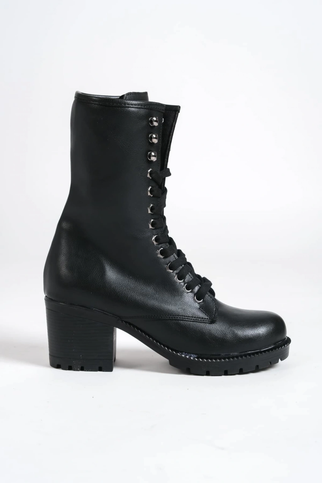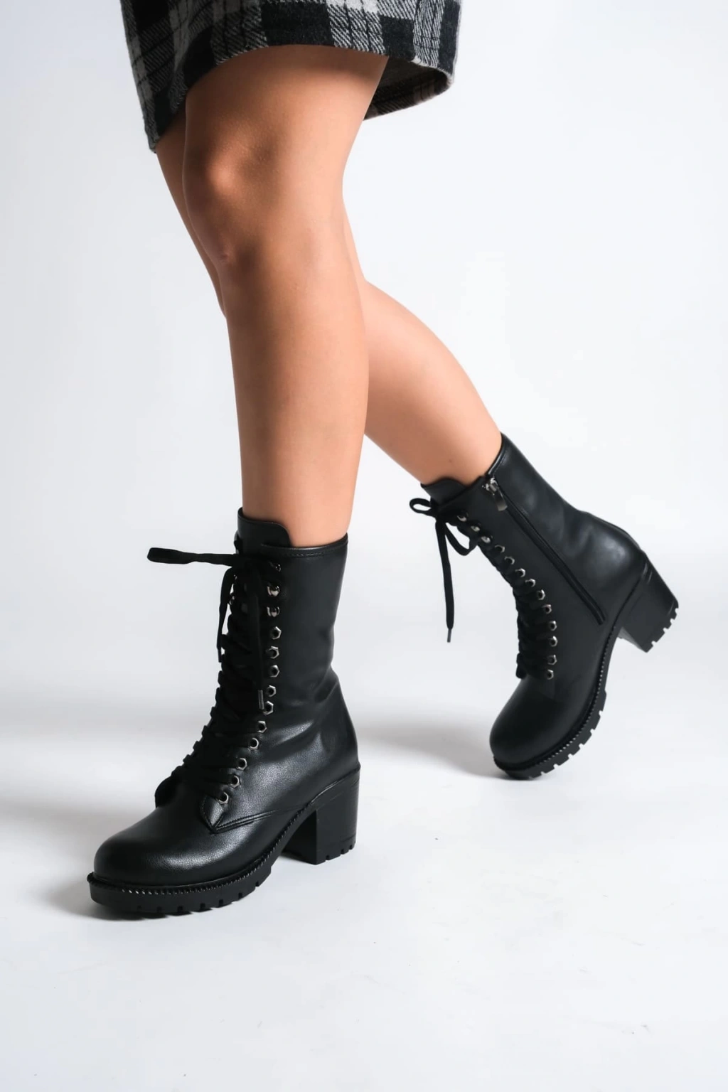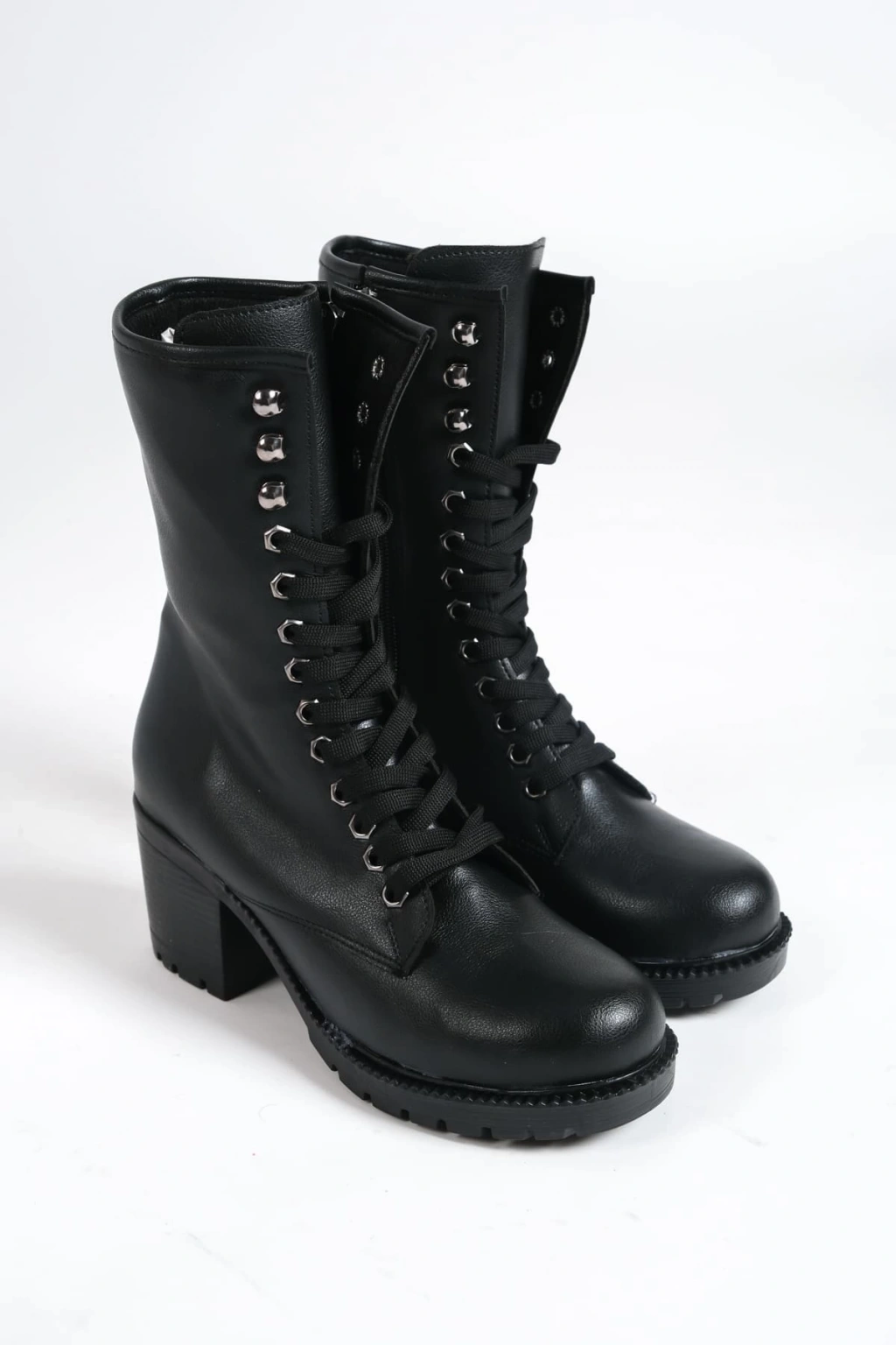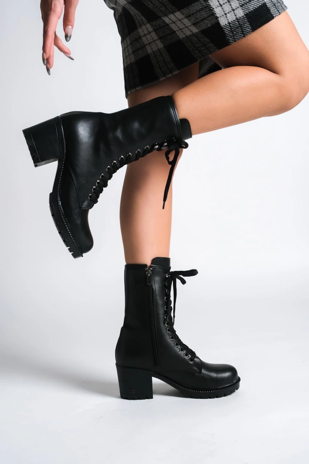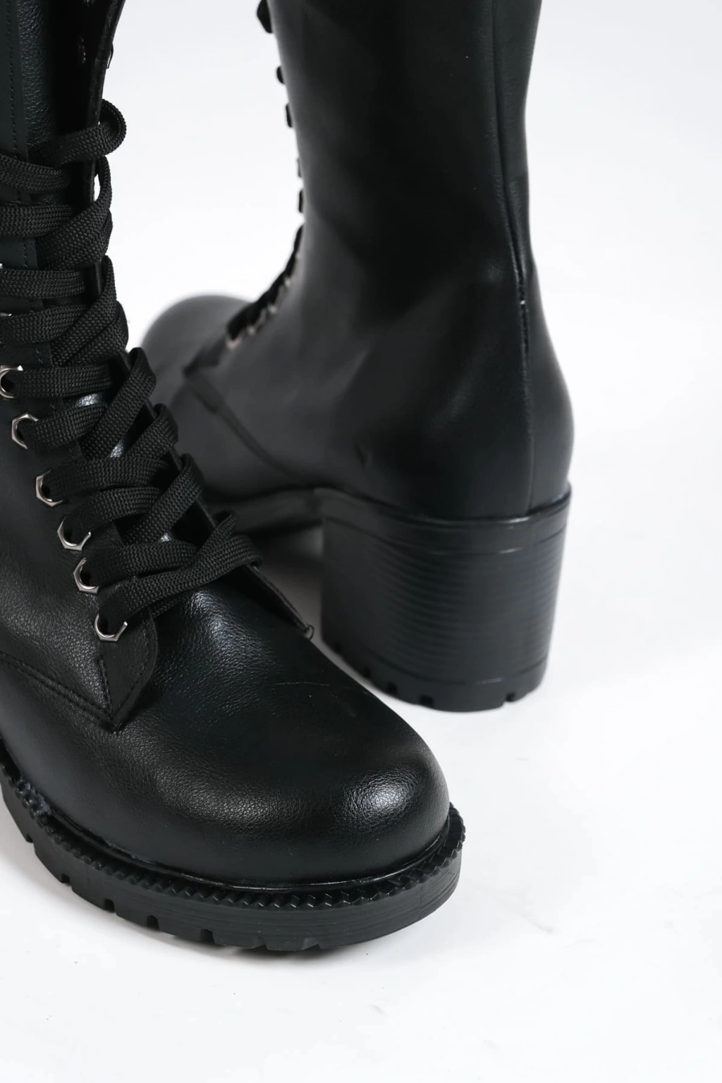 ALDA Bağcıklı Ortopedik Taban Kadın Çizme CST - Siyah
