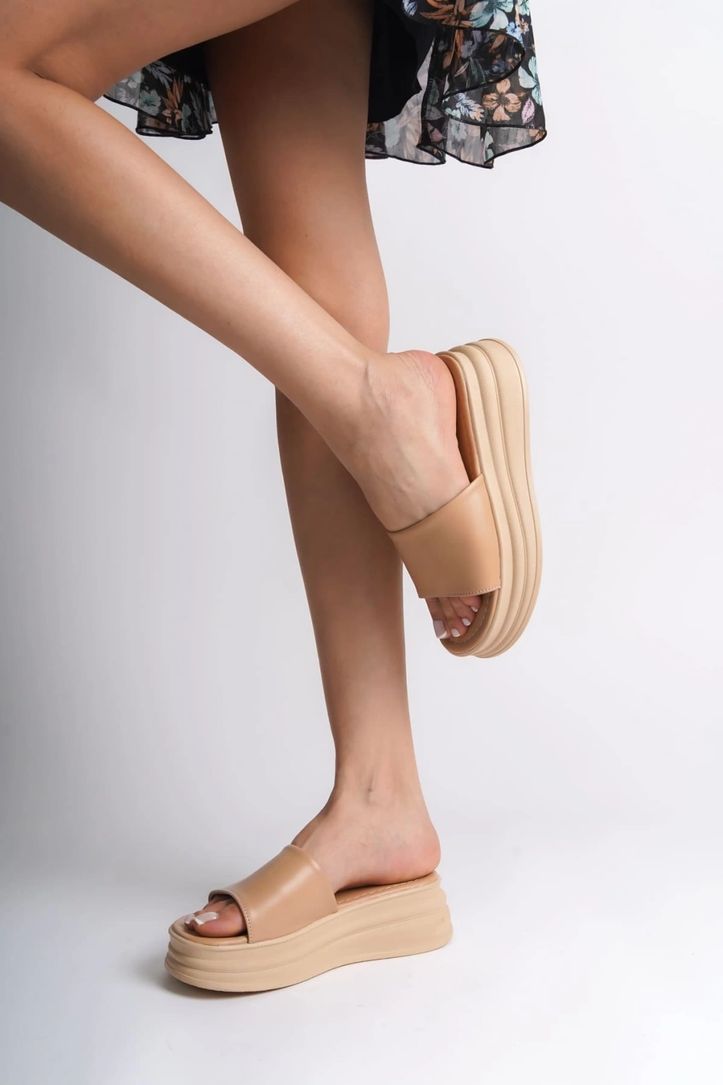 ALICE Düz Topuklu Kalın ve Ortopedik Taban Kadın Terlik CTT - Ten