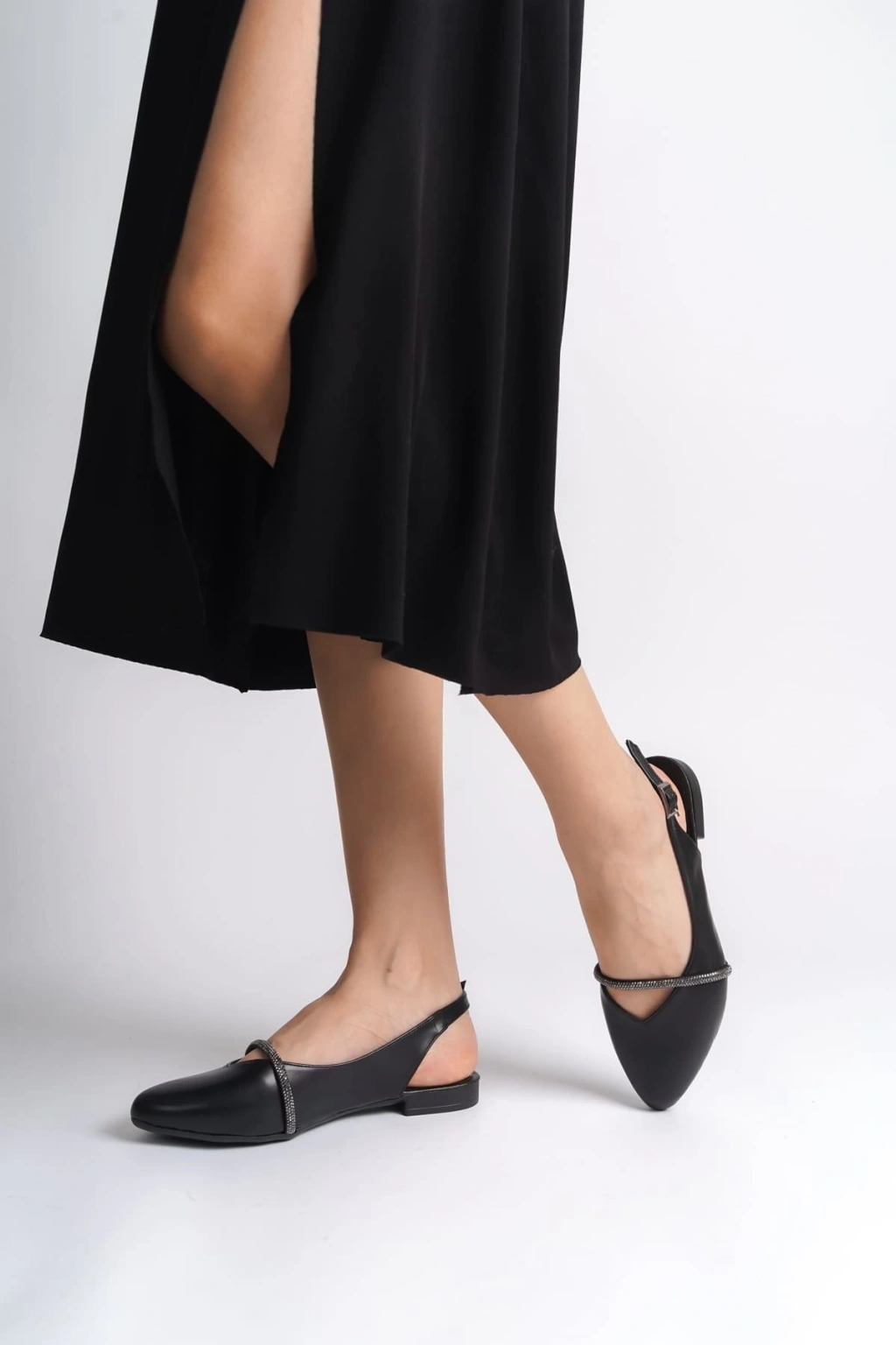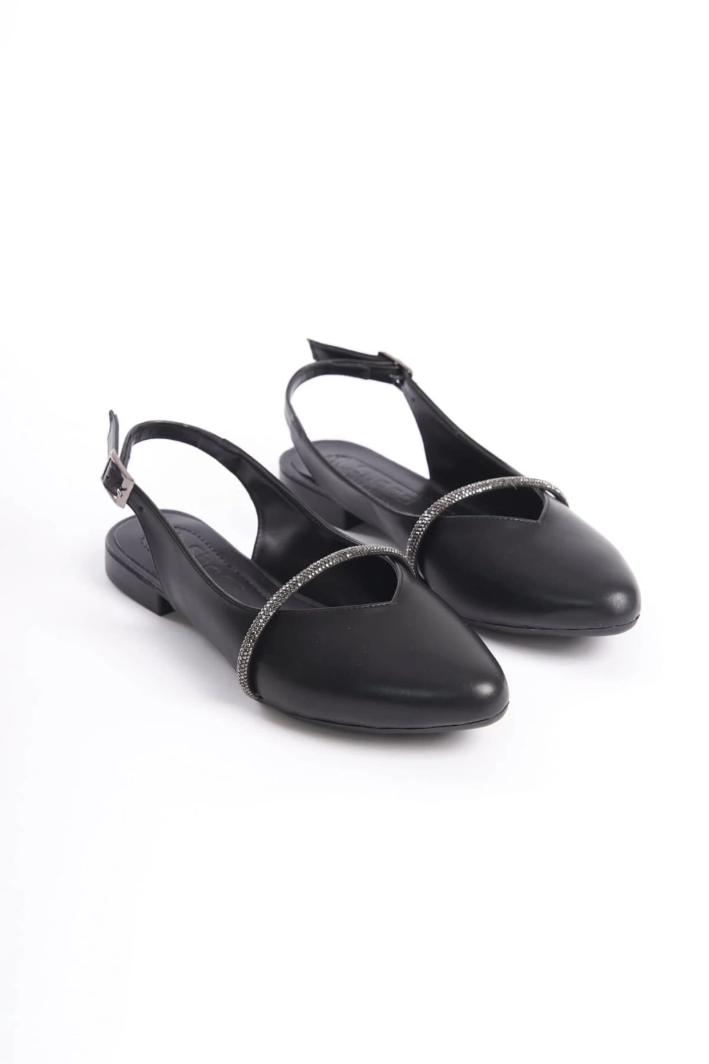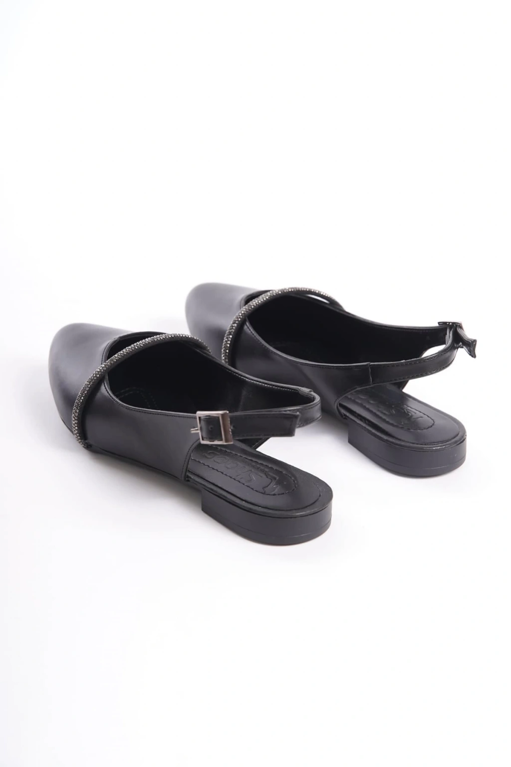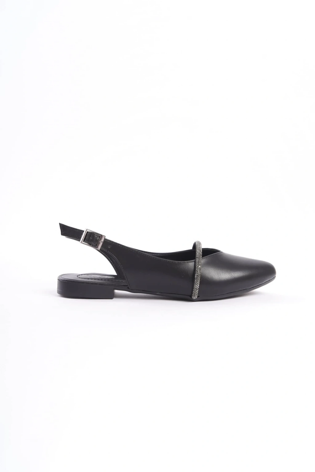 ALLISON Tokalı Ortopedik Rahat Taban Taş Detaylı Kadın Babet Ayakkabı CST - Siyah