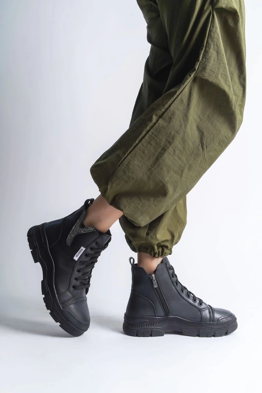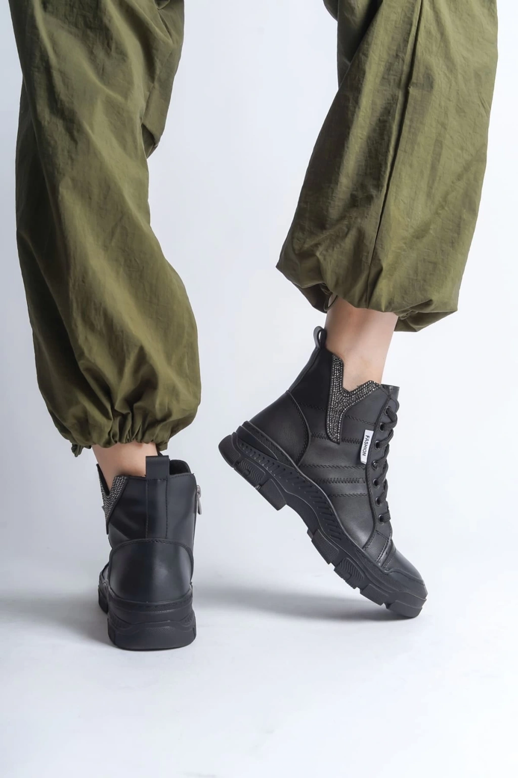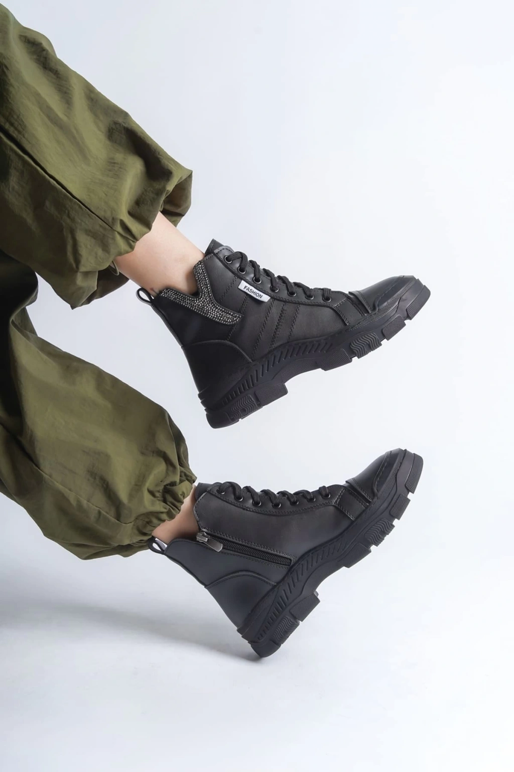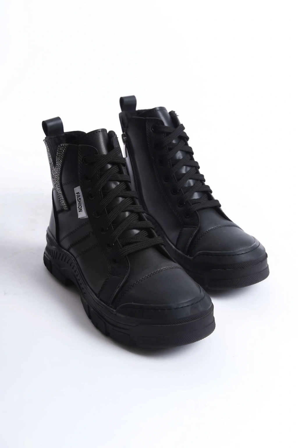 AMBER Bağcıklı Fermuarlı Ortopedik Taban Kadın Bot CST - Siyah