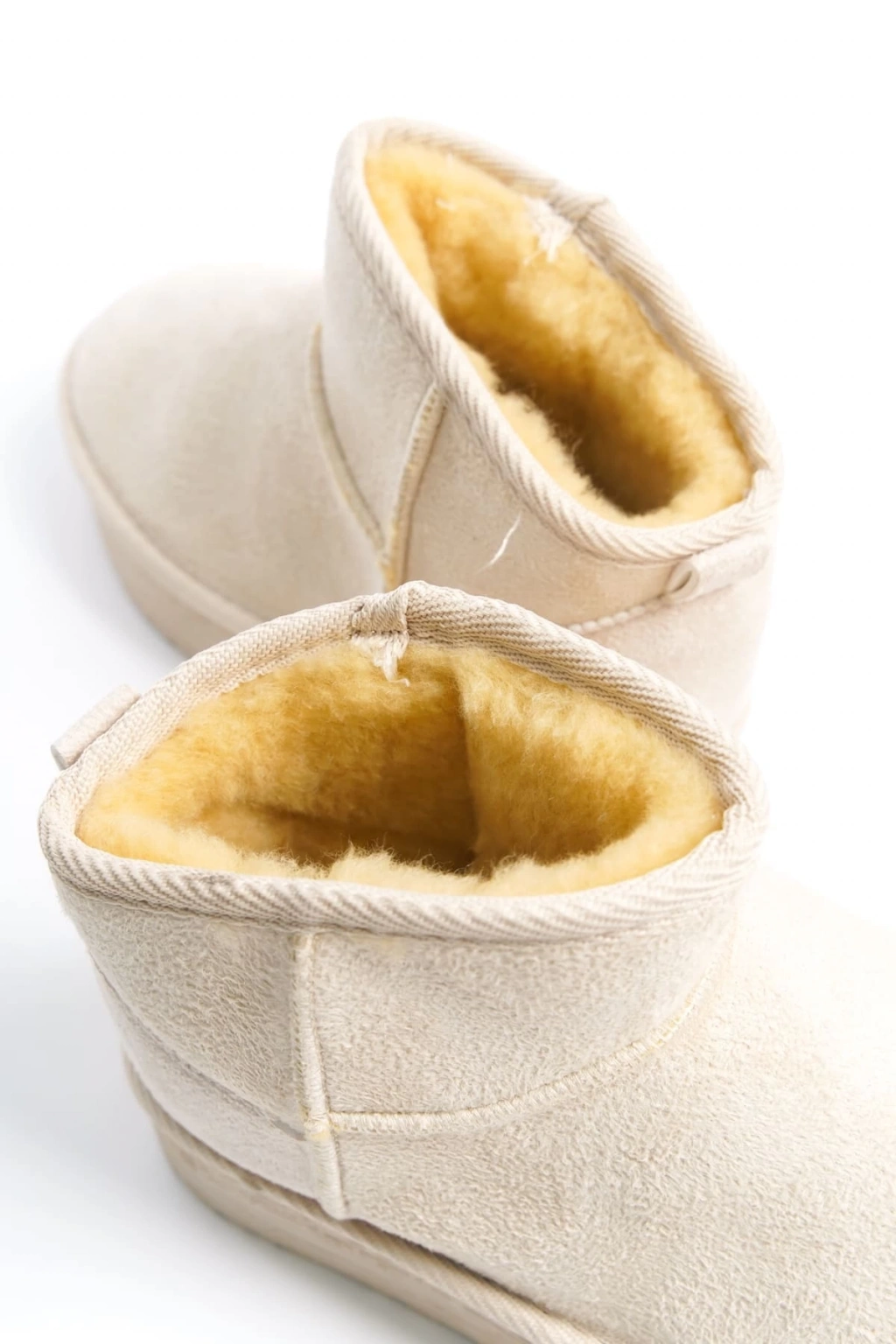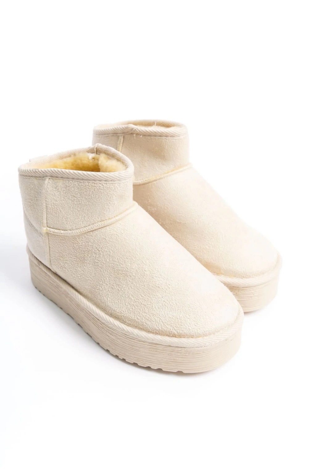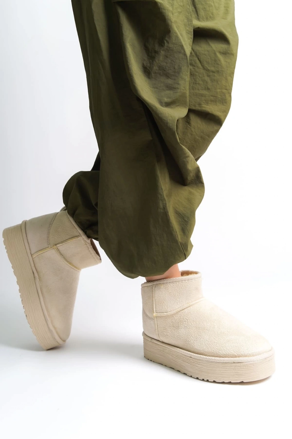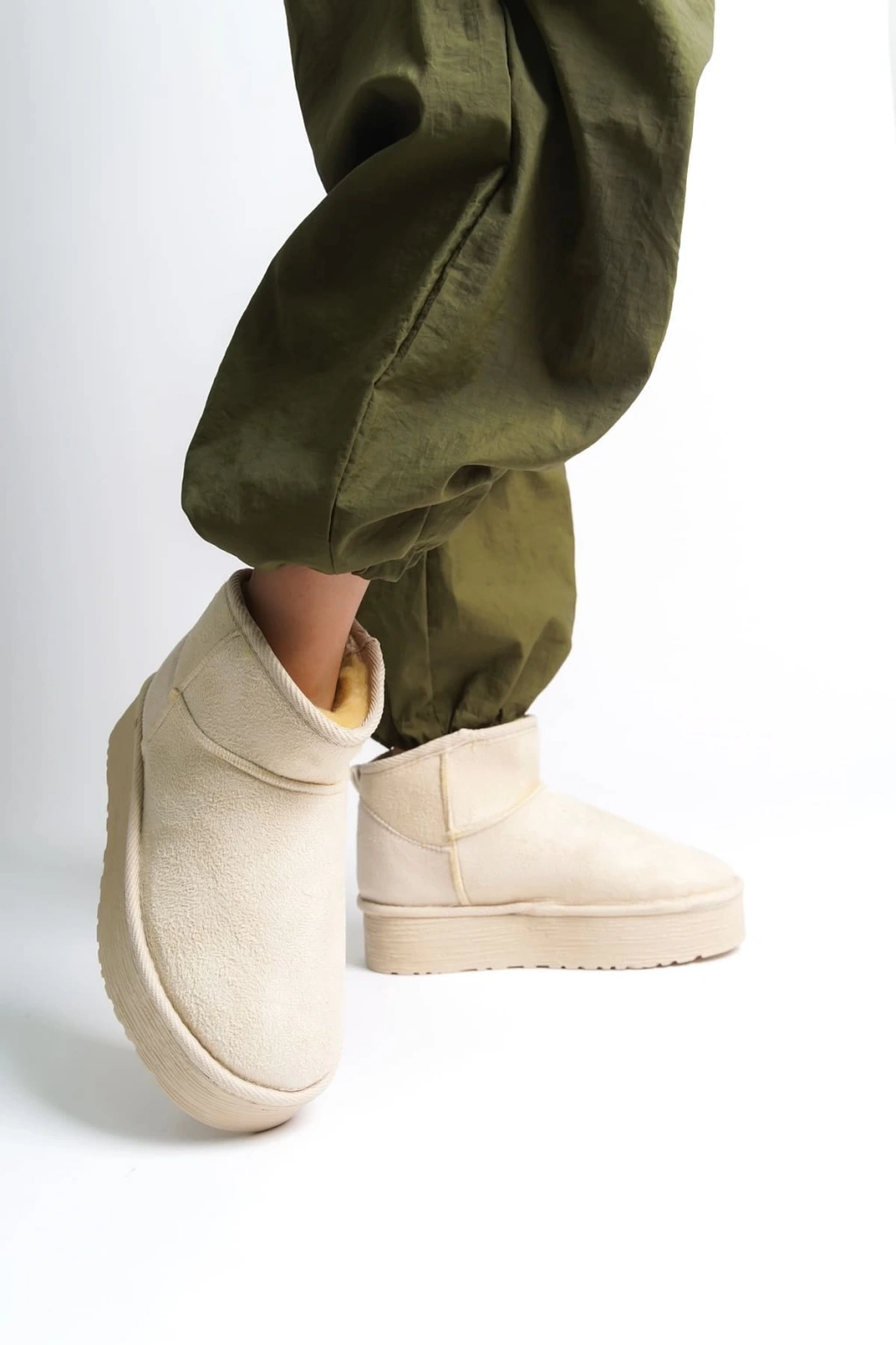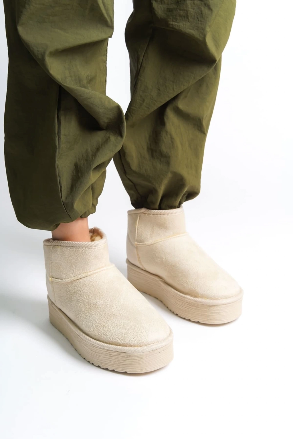 AMELIA Bağcıksız Düz ve Kalın Taban İçi Kürklü Kısa Süet Kadın Bot SKT - Krem