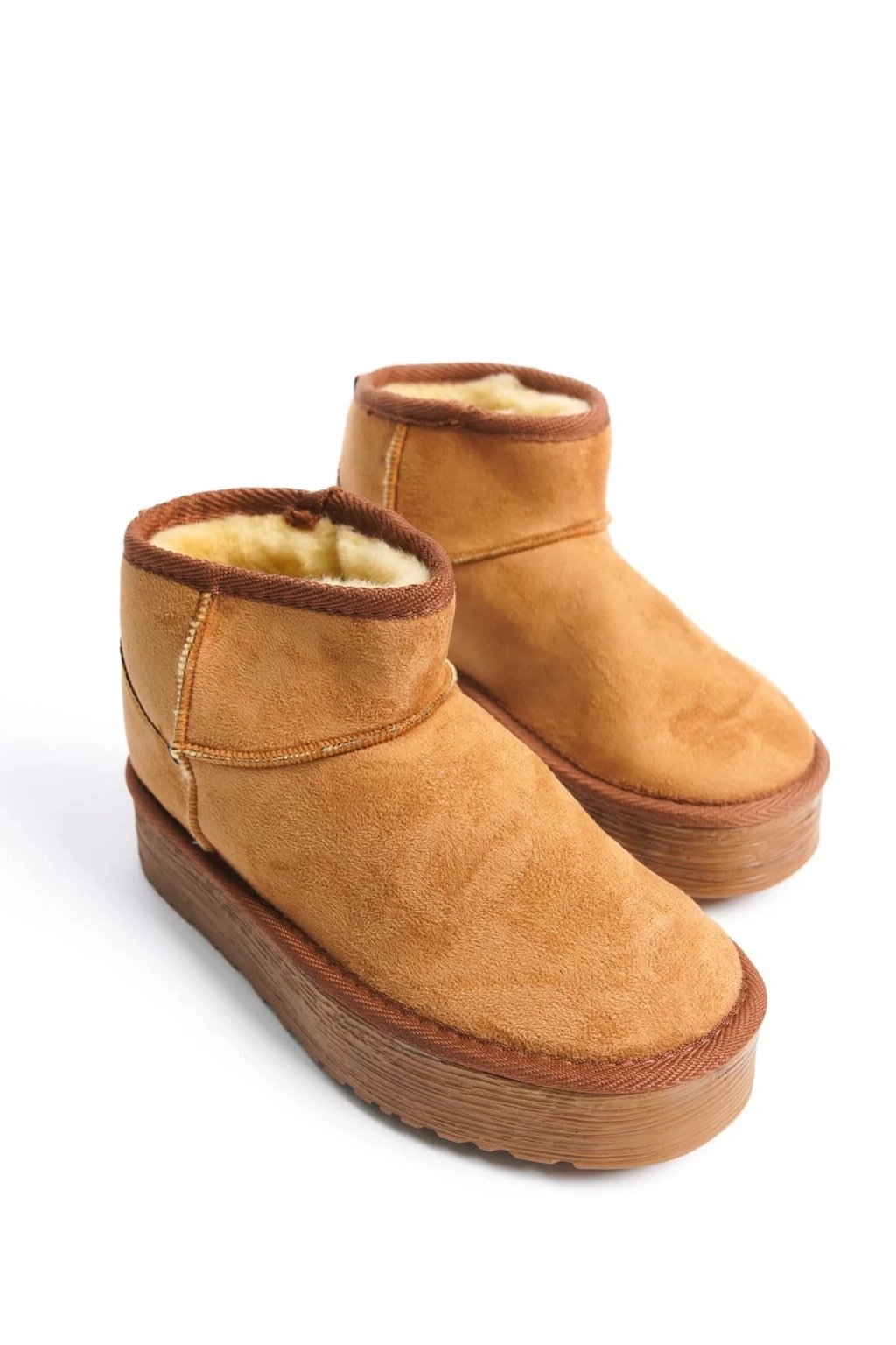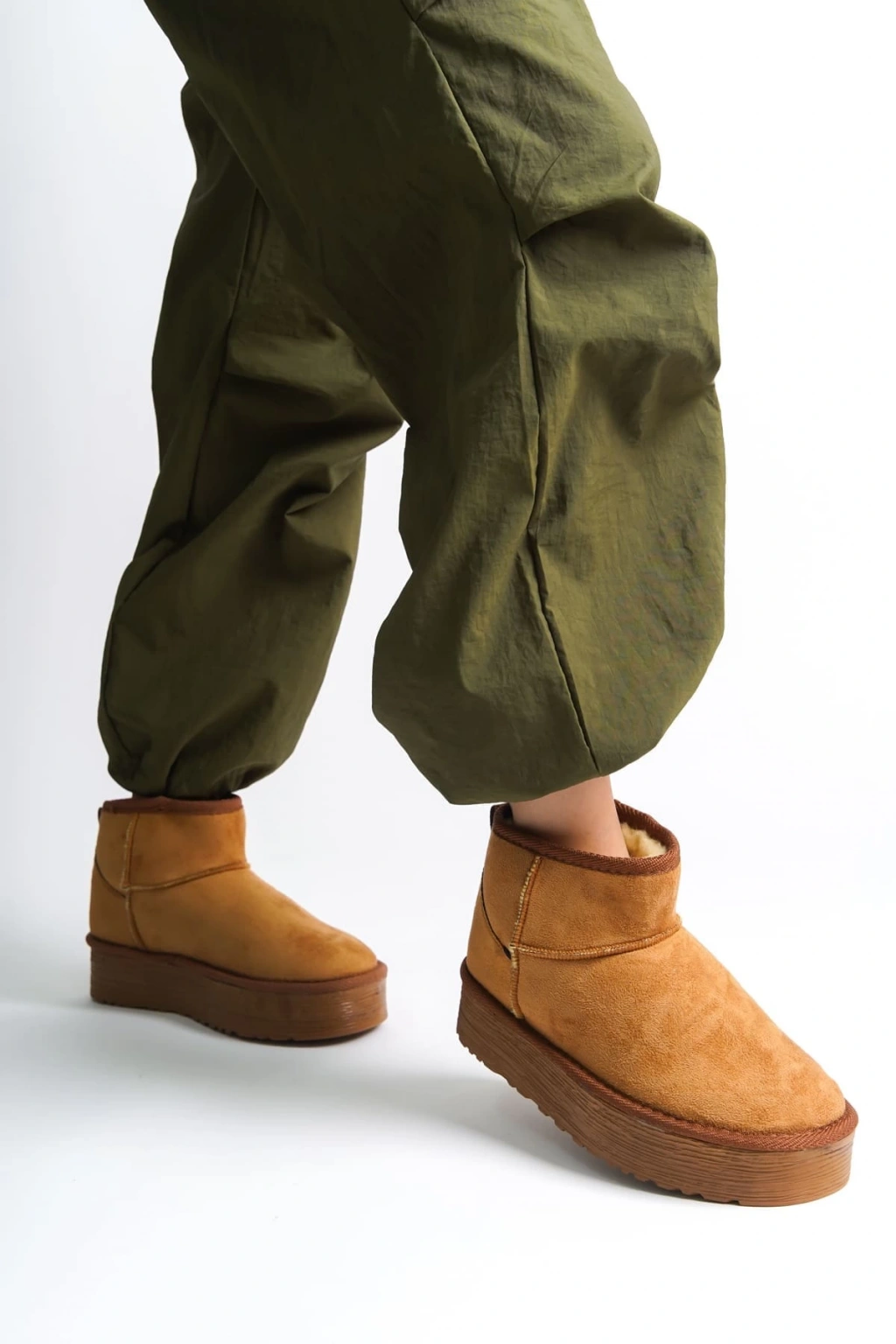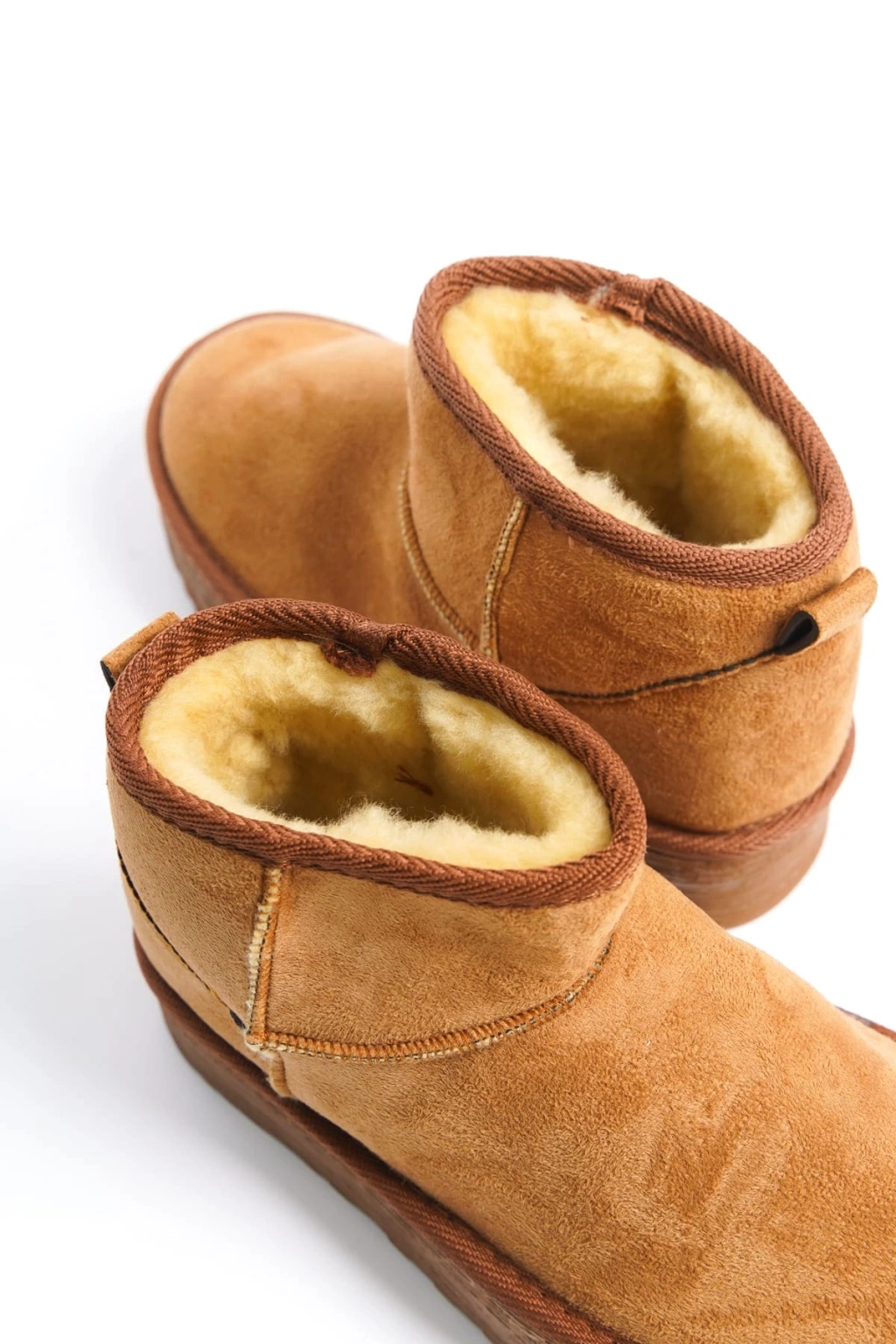 AMELIA Bağcıksız Düz ve Kalın Taban İçi Kürklü Kısa Süet Kadın Bot STT - Taba