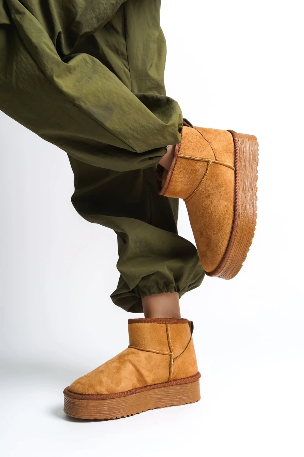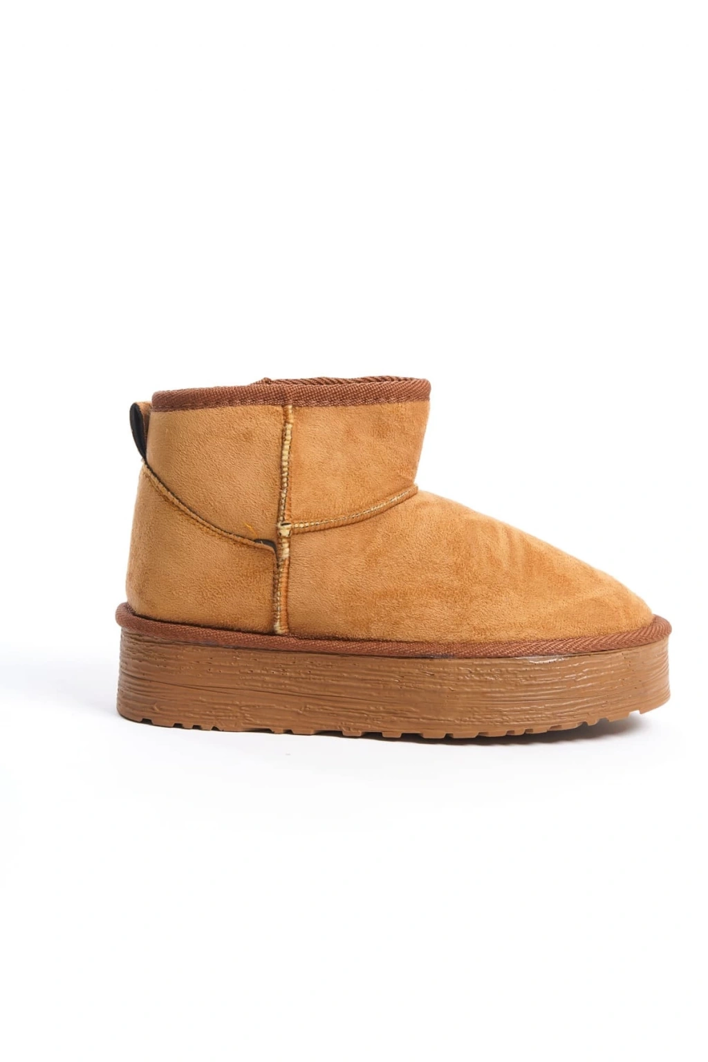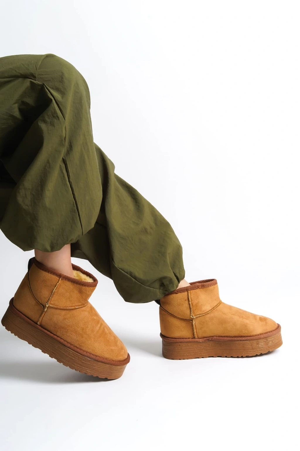 AMELIA Bağcıksız Düz ve Kalın Taban İçi Kürklü Kısa Süet Kadın Bot STT - Taba
