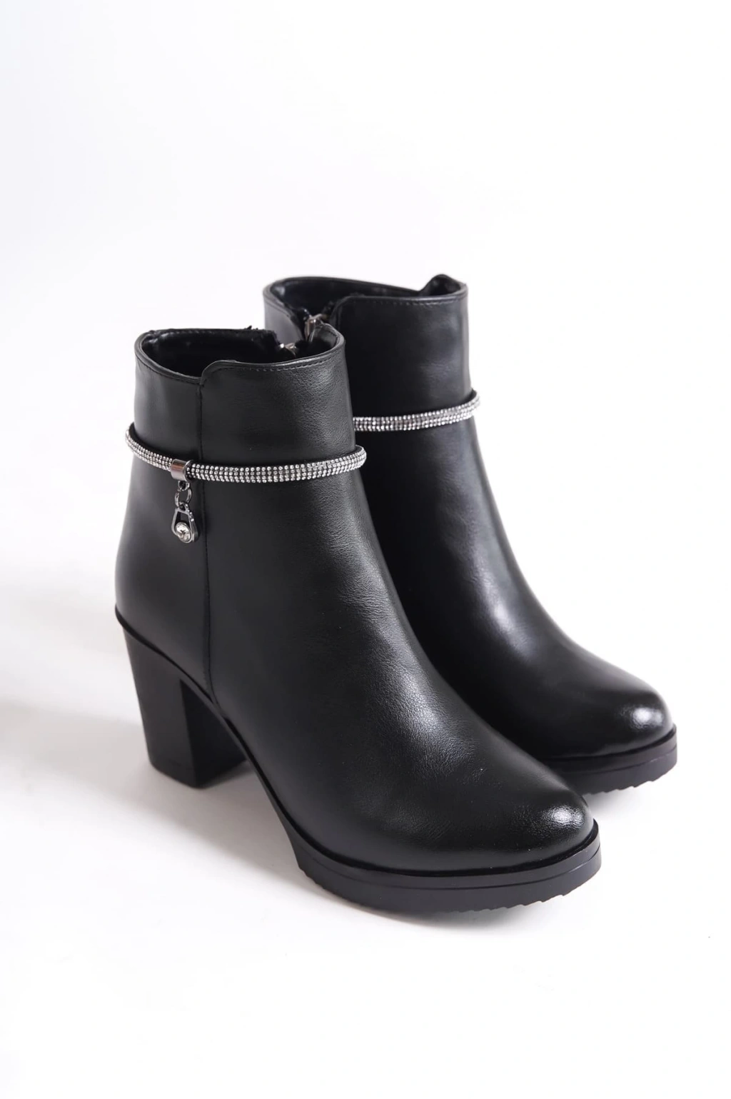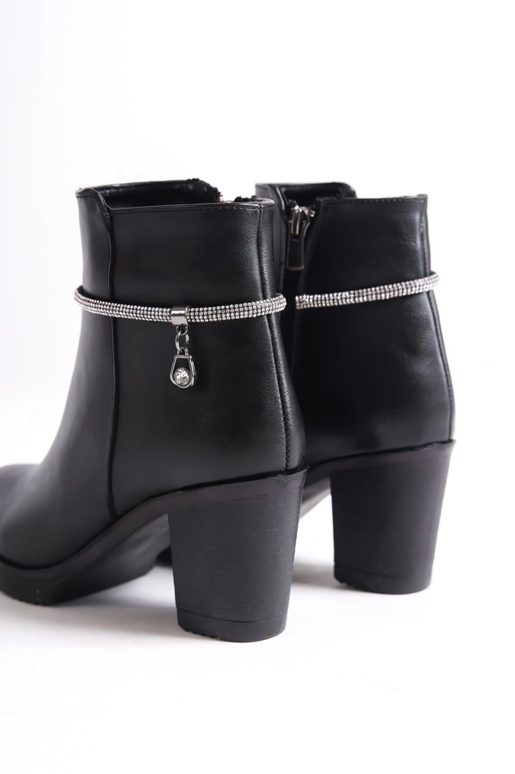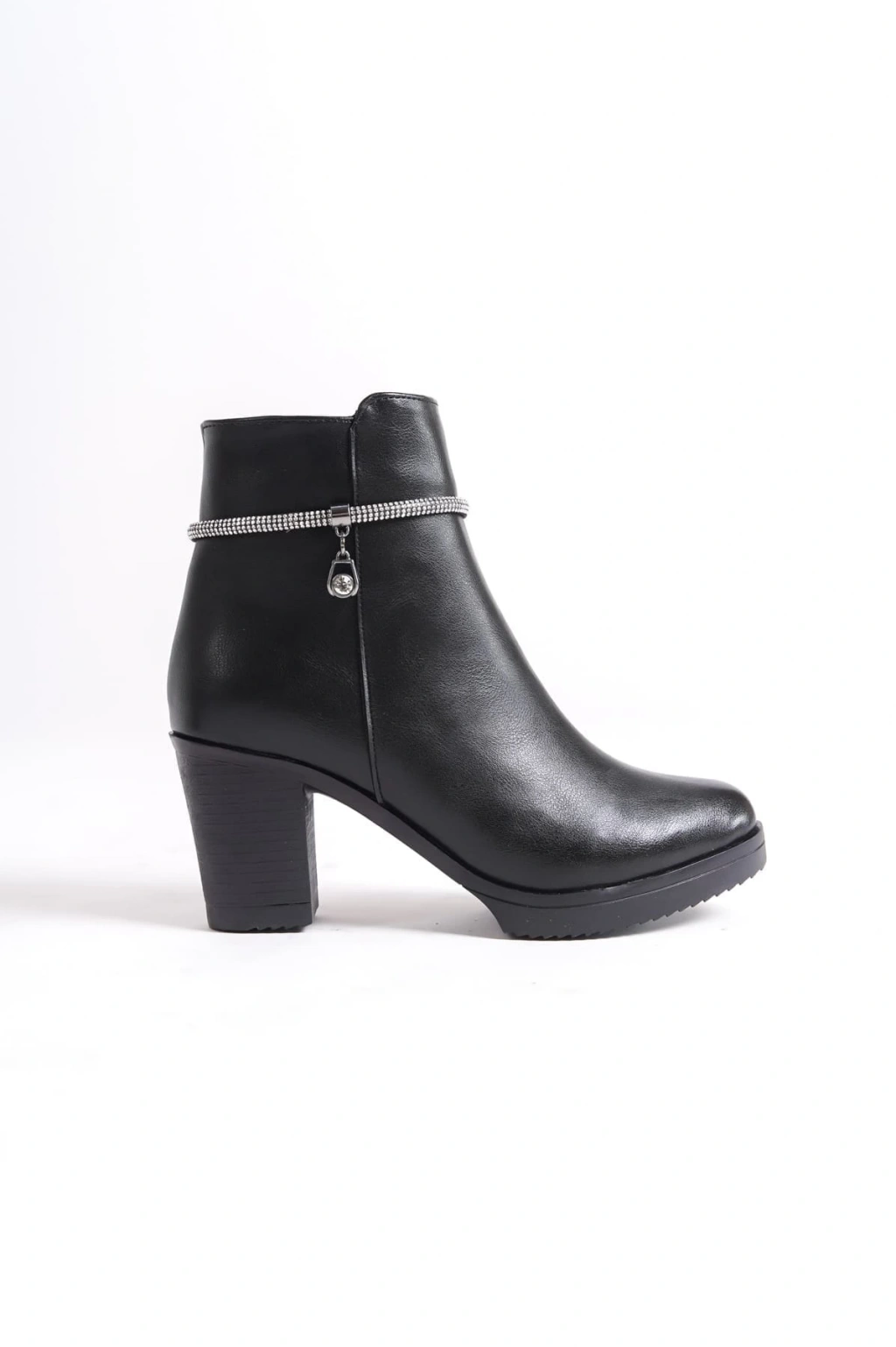 ARIA Fermuarlı Ortopedik Taban Taşlı Topuklu Kadın Bot CST - Siyah