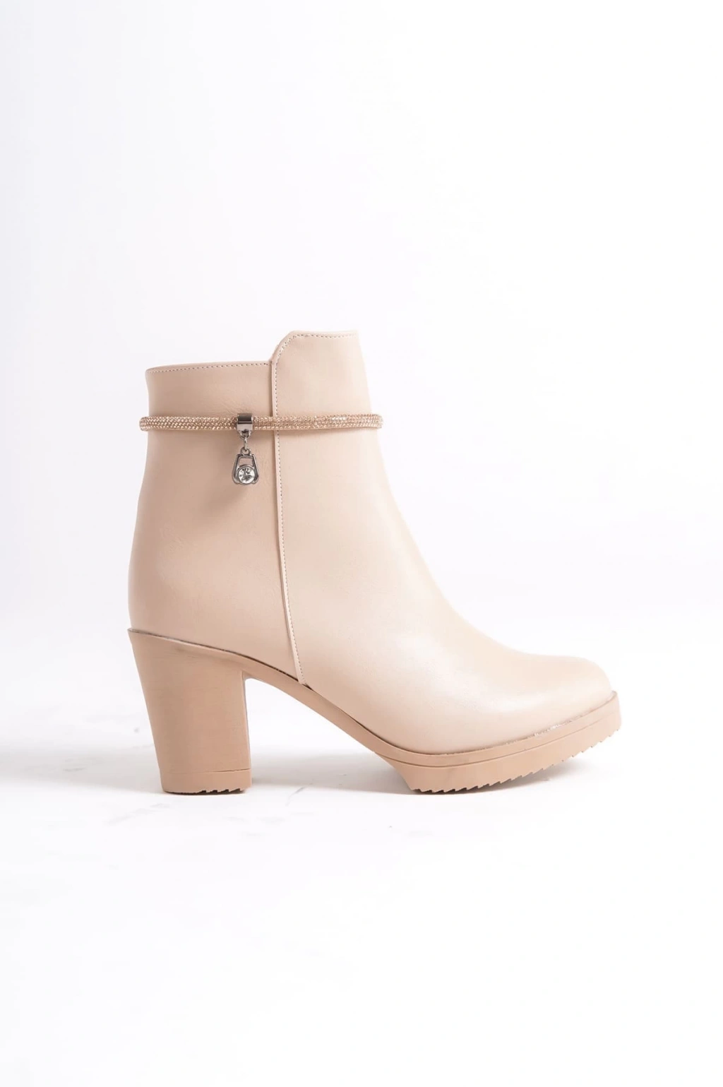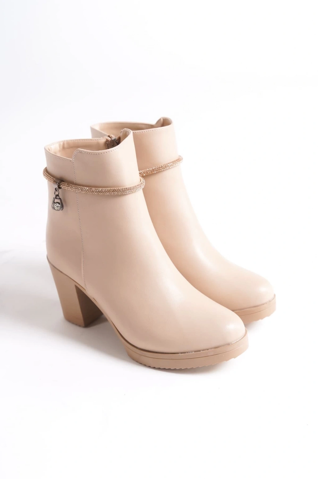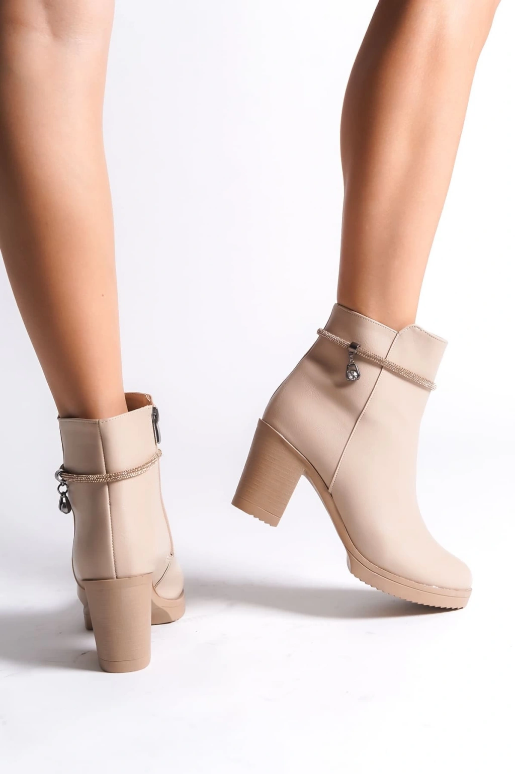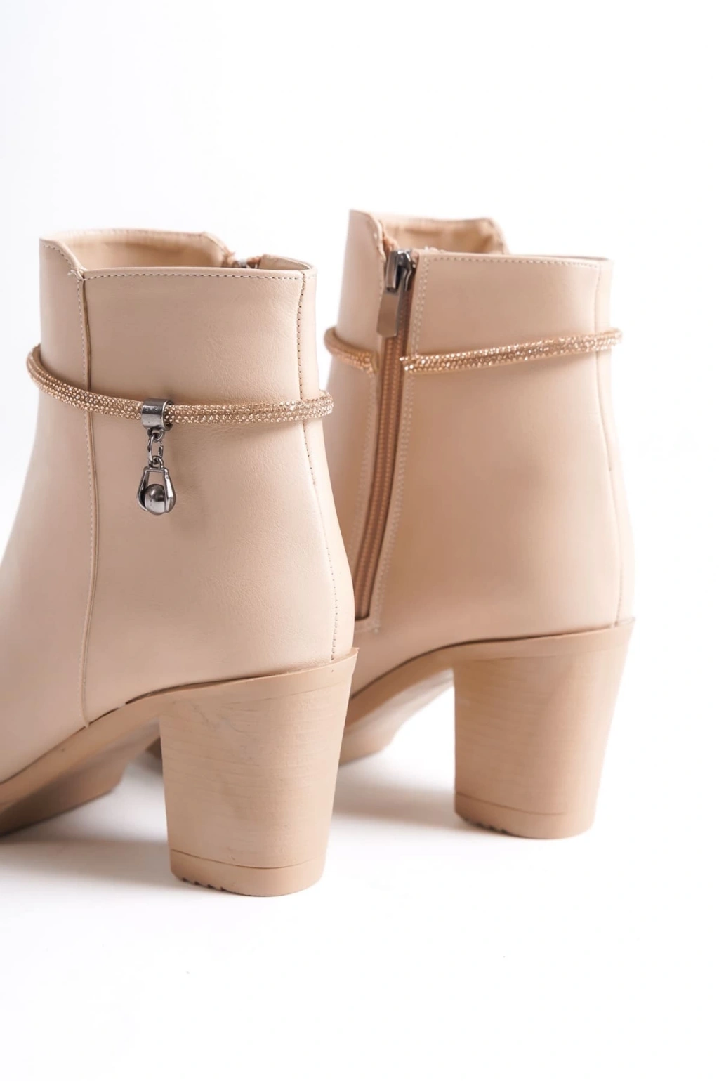 ARIA Fermuarlı Ortopedik Taban Taşlı Topuklu Kadın Bot CTT - Ten
