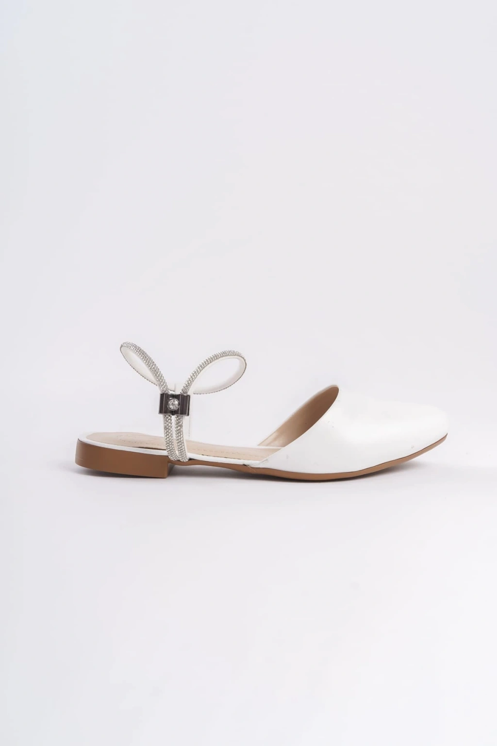 ARIANA Lastikli Ortopedik Rahat Taban Bilekten Taş Detaylı Kadın Babet Ayakkabı CKT - Beyaz
