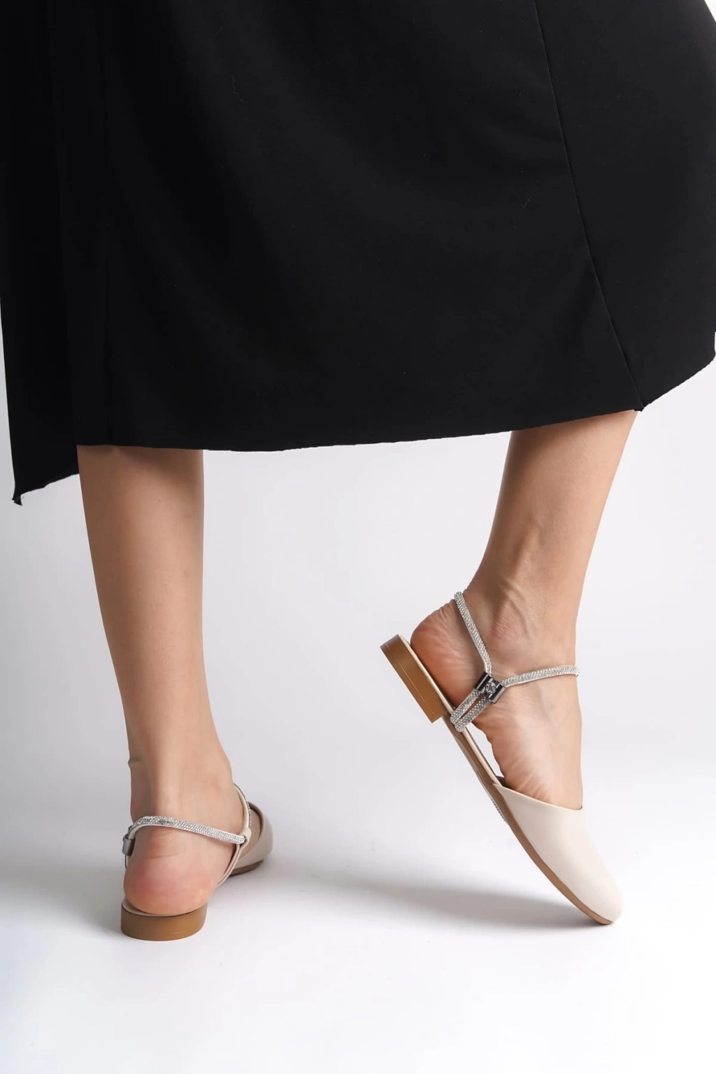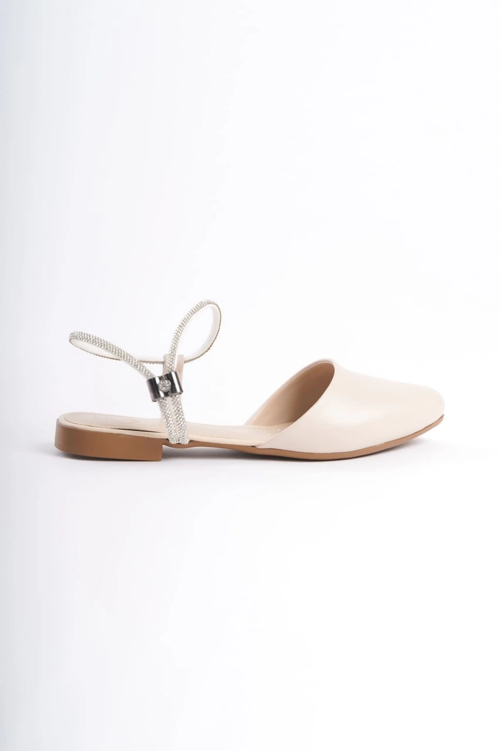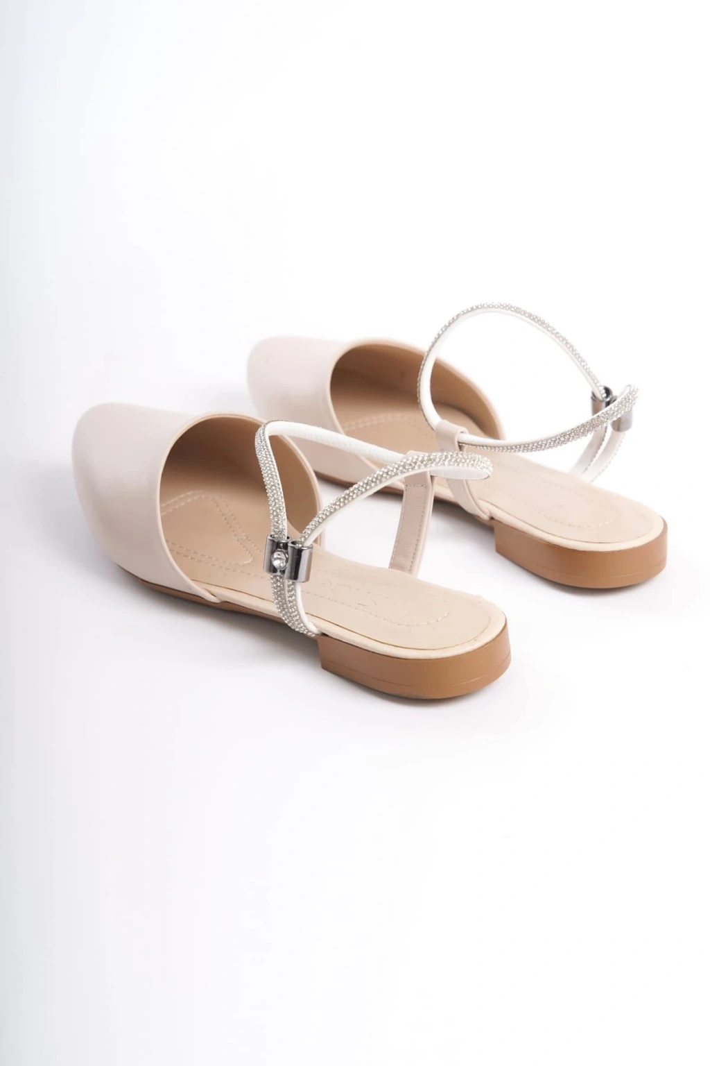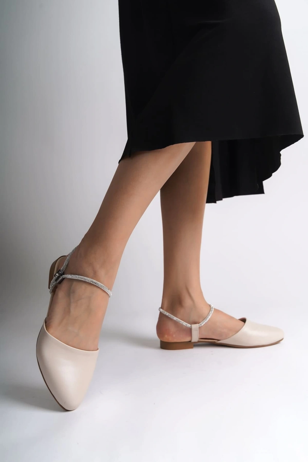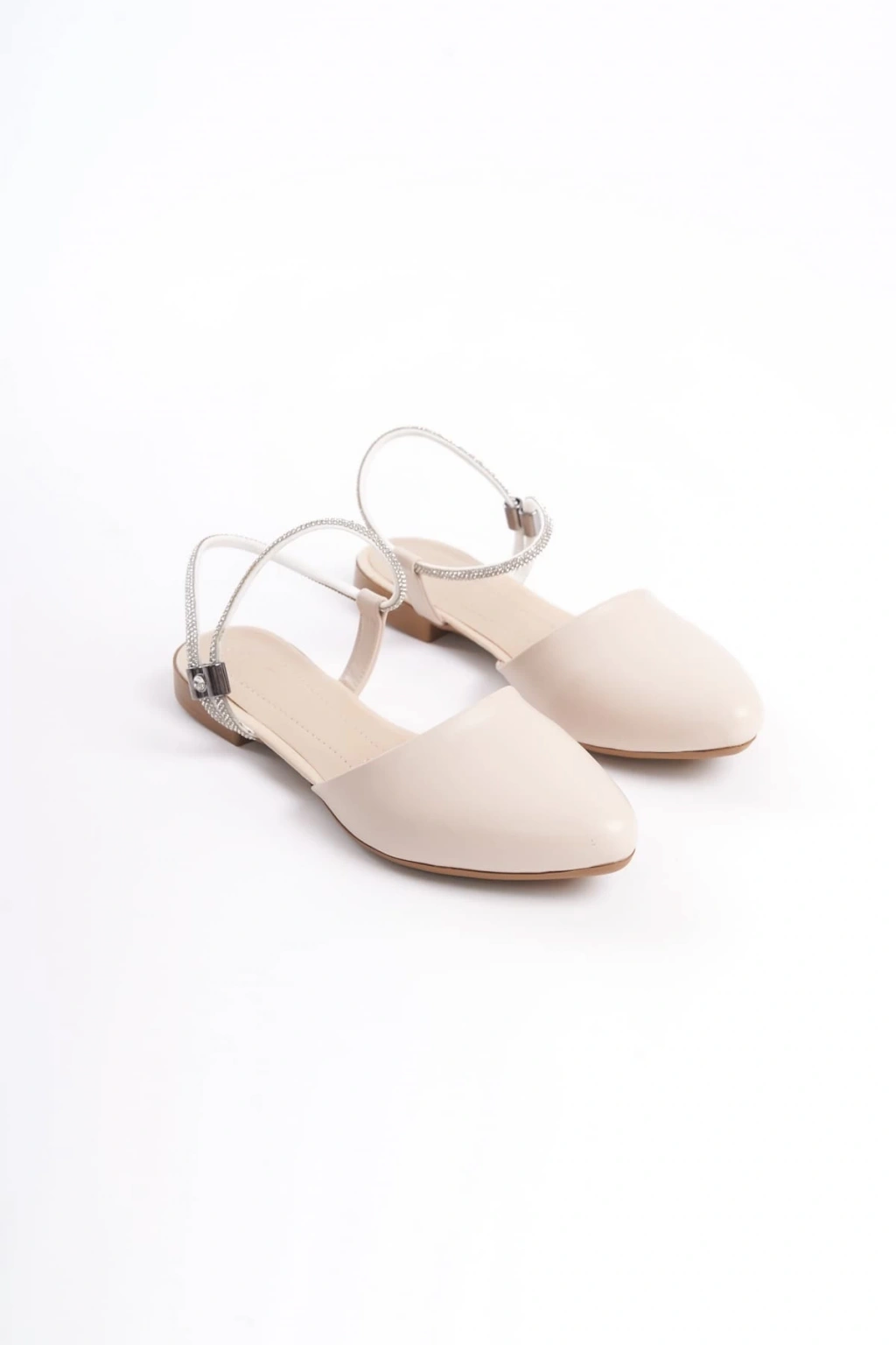 ARIANA Lastikli Ortopedik Rahat Taban Bilekten Taş Detaylı Kadın Babet Ayakkabı CKT - Krem