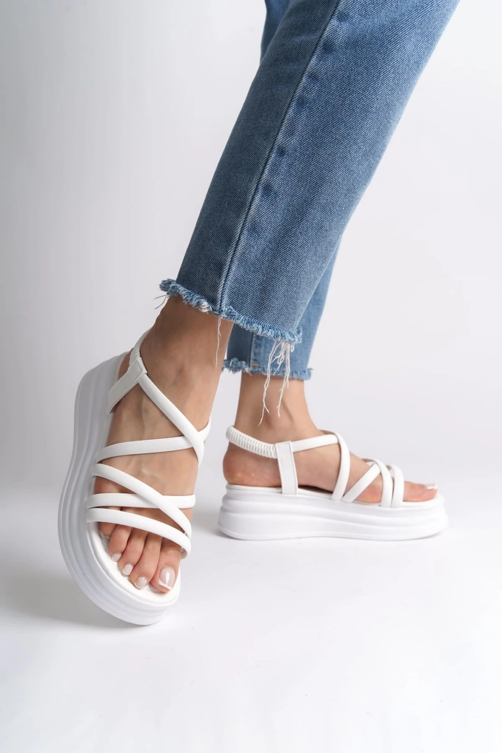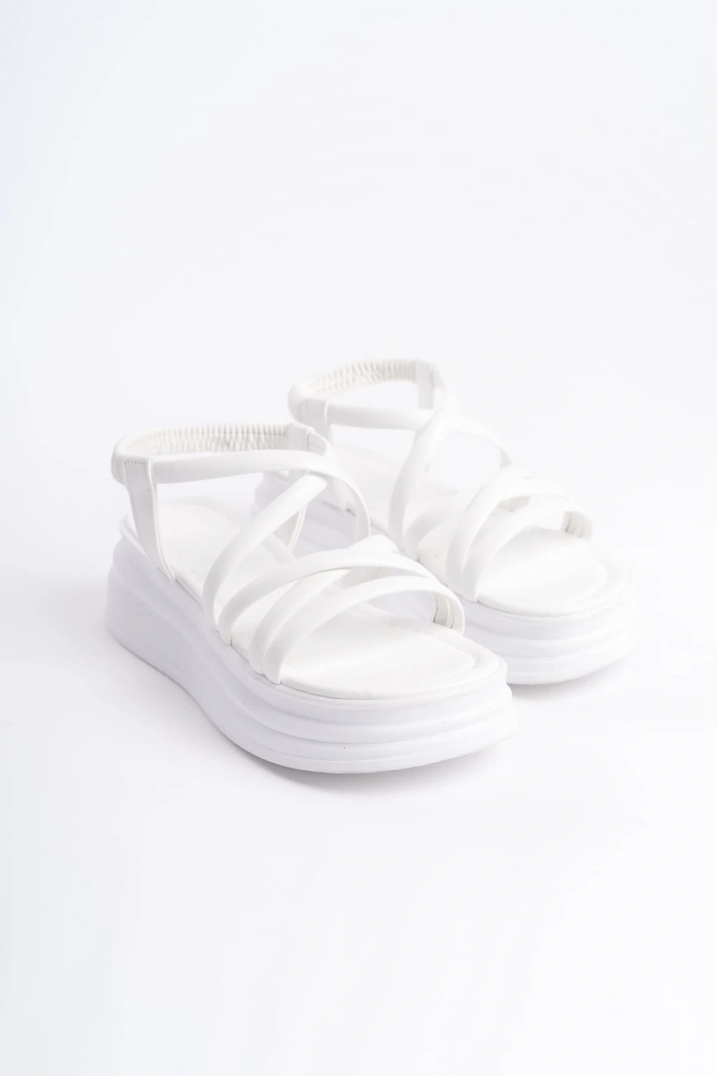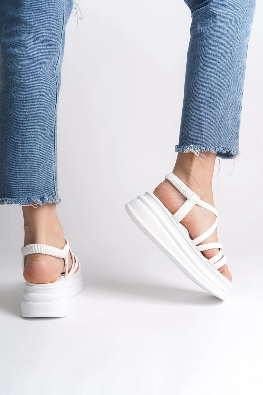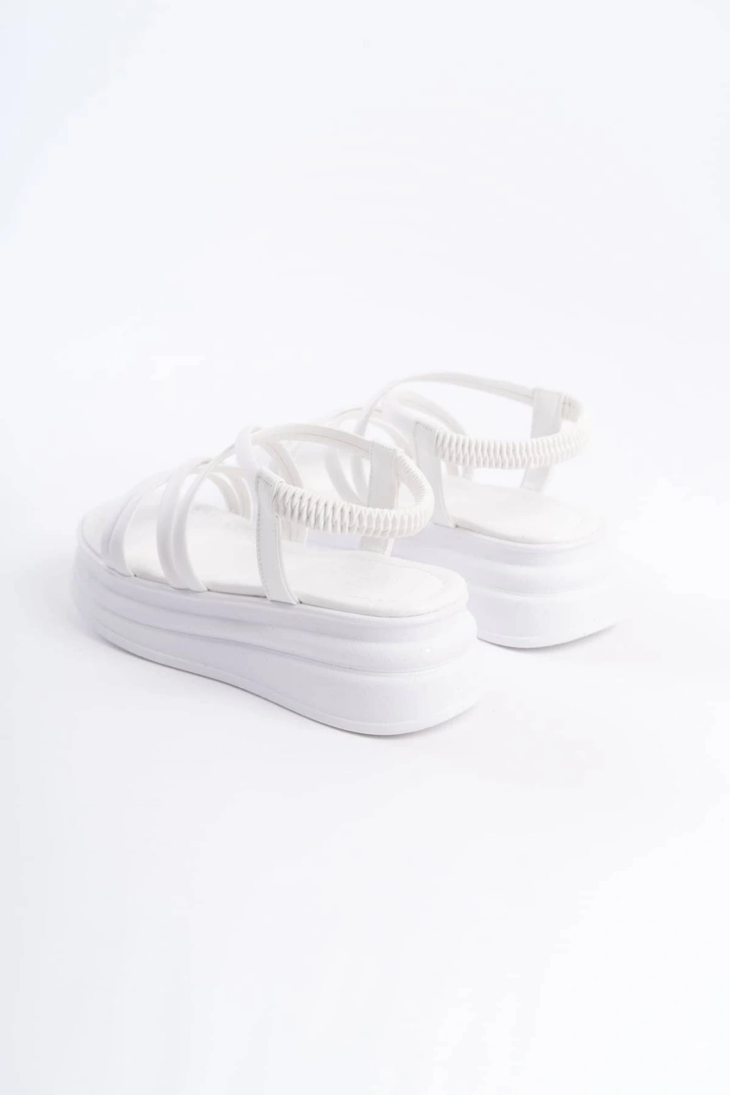 BELLA Lastikli Şerit Detaylı Ortopedik Taban Kadın Sandalet CBT - Beyaz