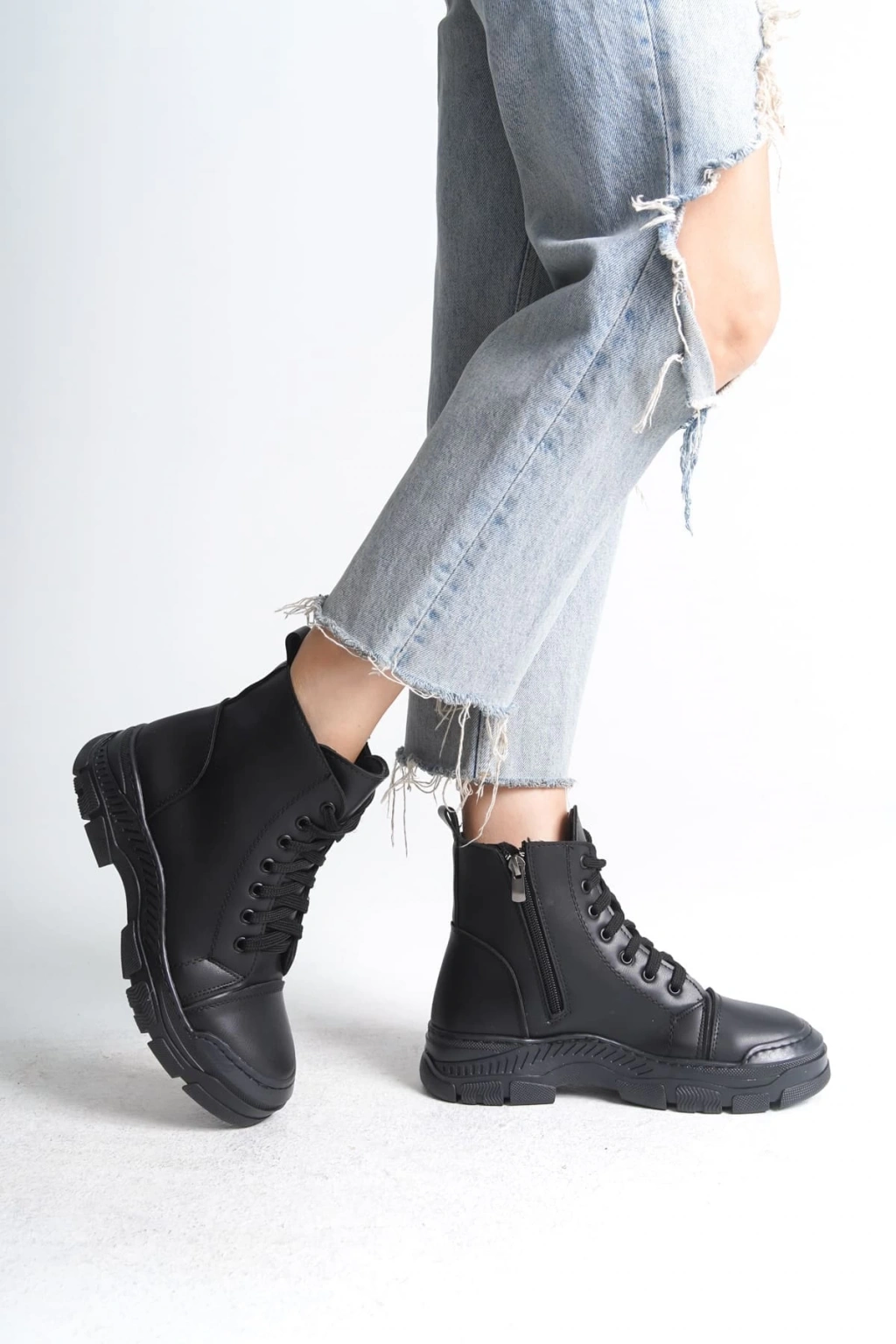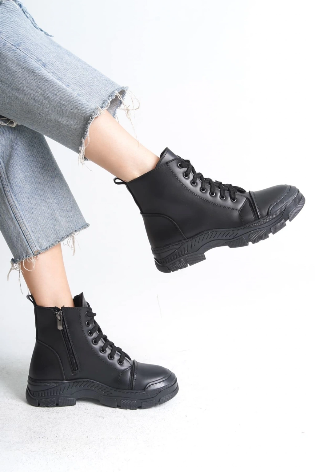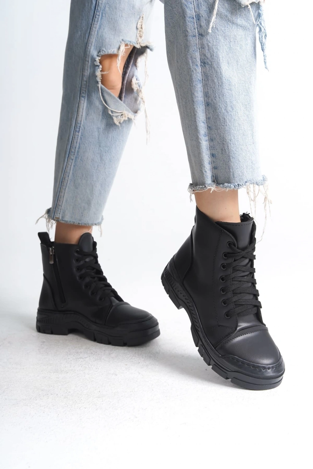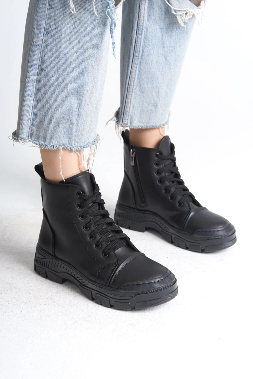 BLOOM Bağcıklı Fermuarlı Ortopedik Taban Kadın Bot CST - Siyah