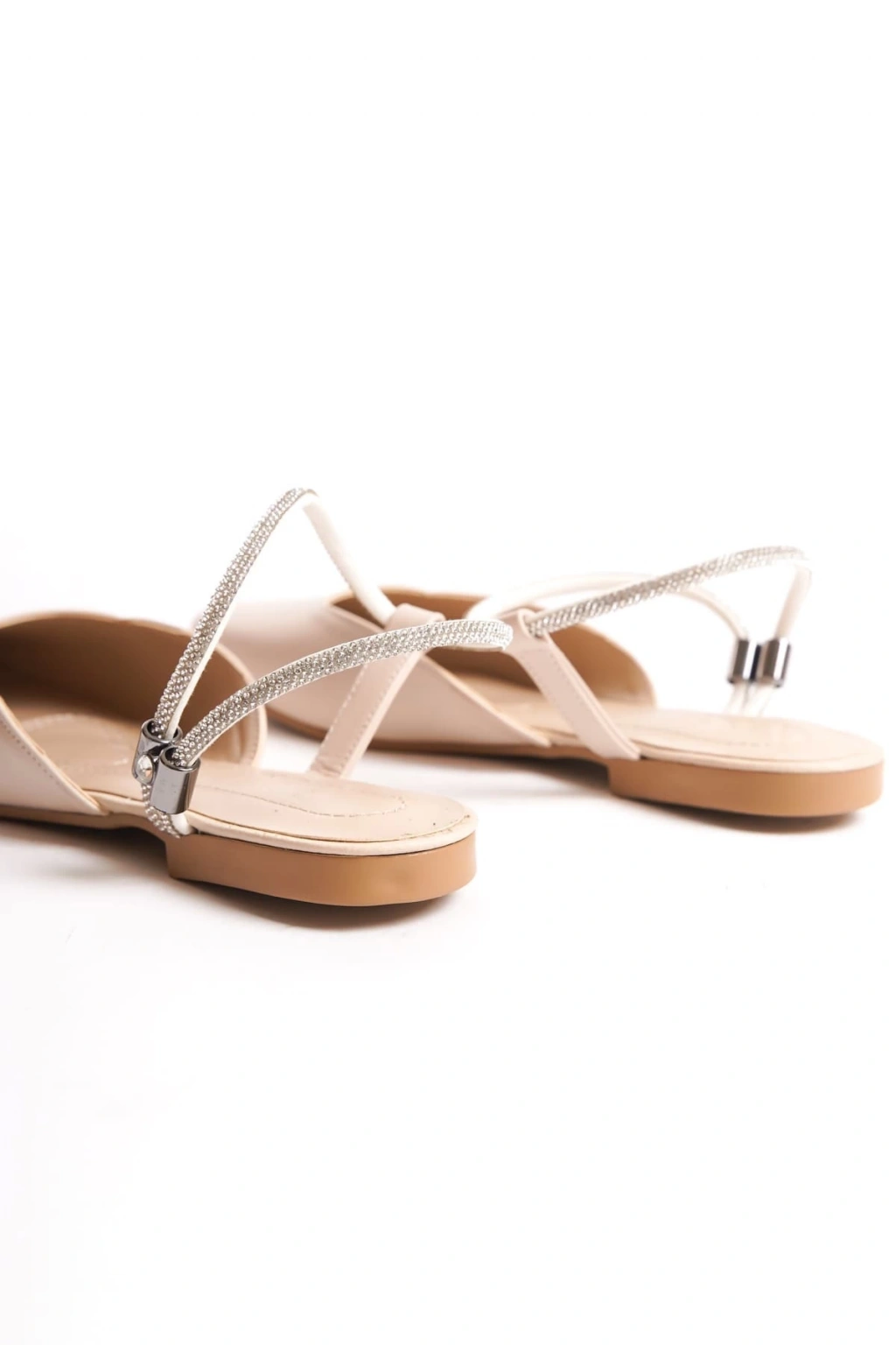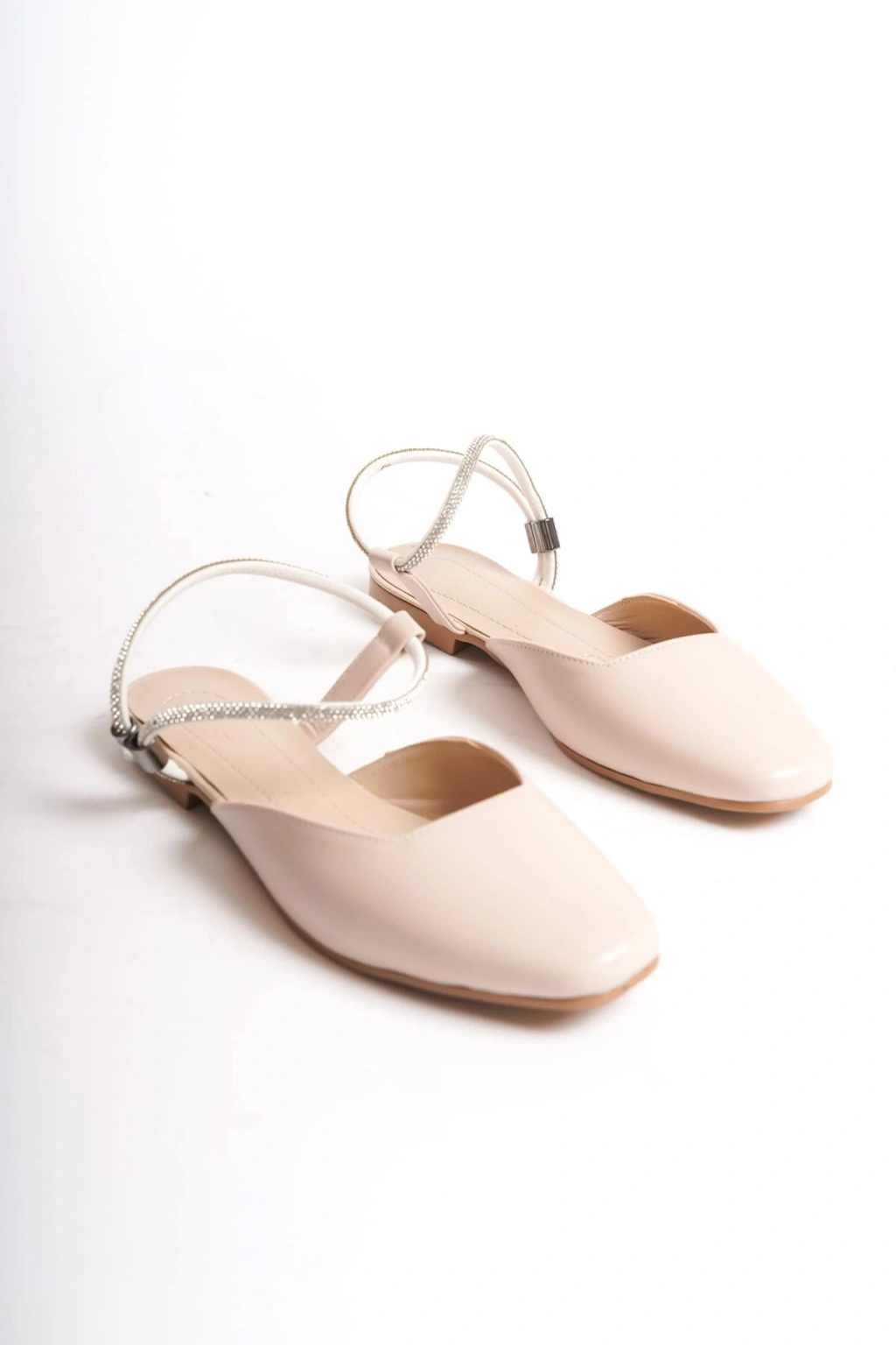 CAROLINE Lastikli Ortopedik Rahat Taban Bilekten Taş Detaylı Kadın Babet Ayakkabı CKT - Krem