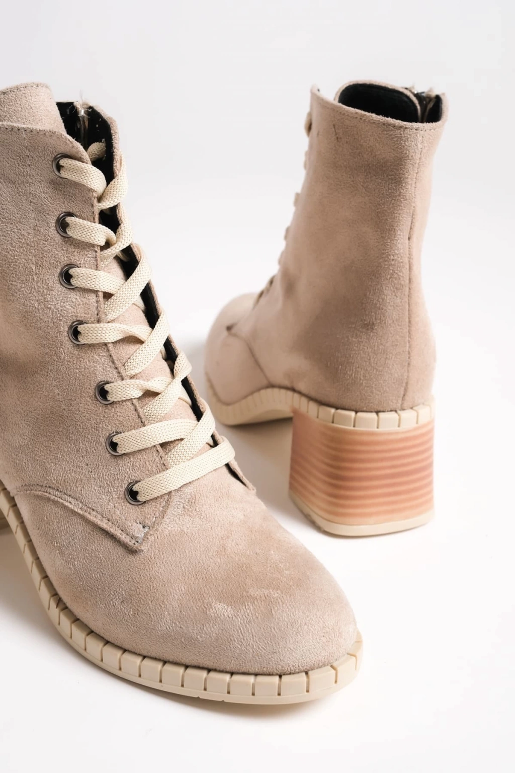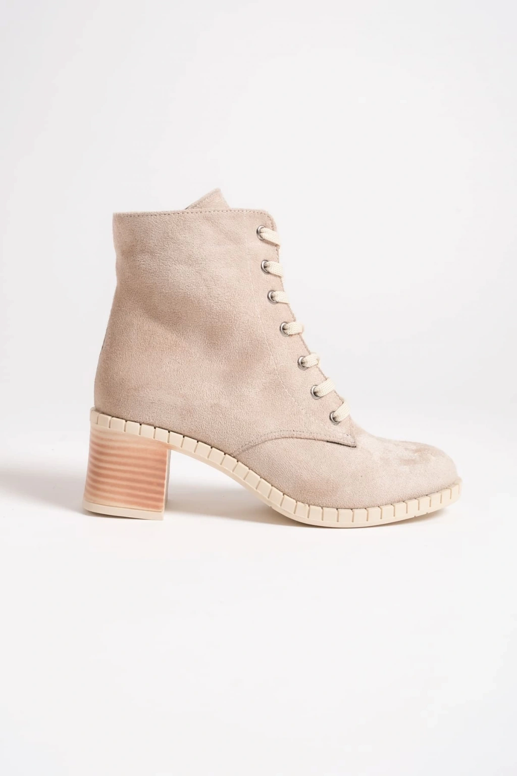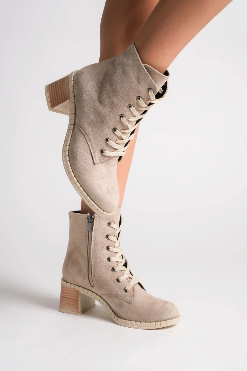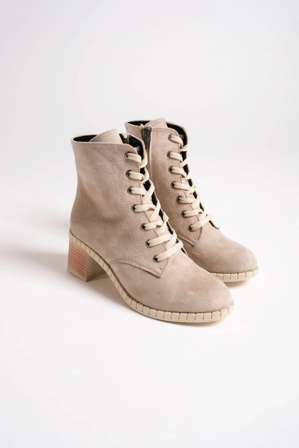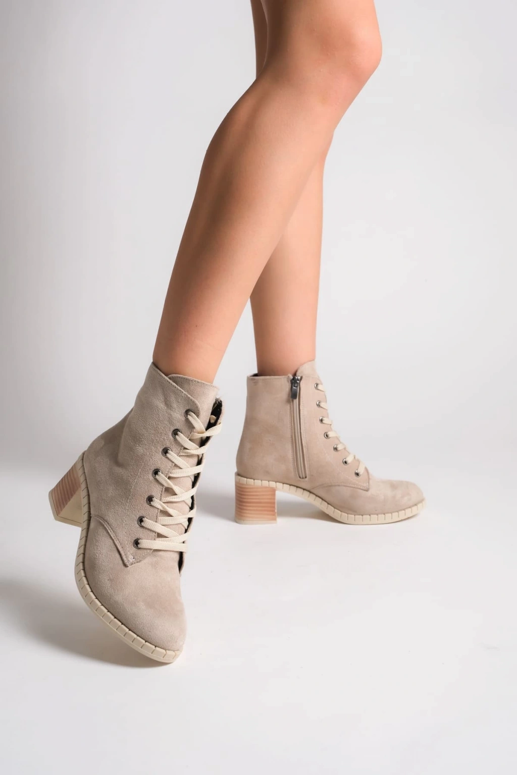 DIANA Bağcıklı Fermuarlı Ortopedik Taban Topuklu Süet Kadın Bot STT - Ten