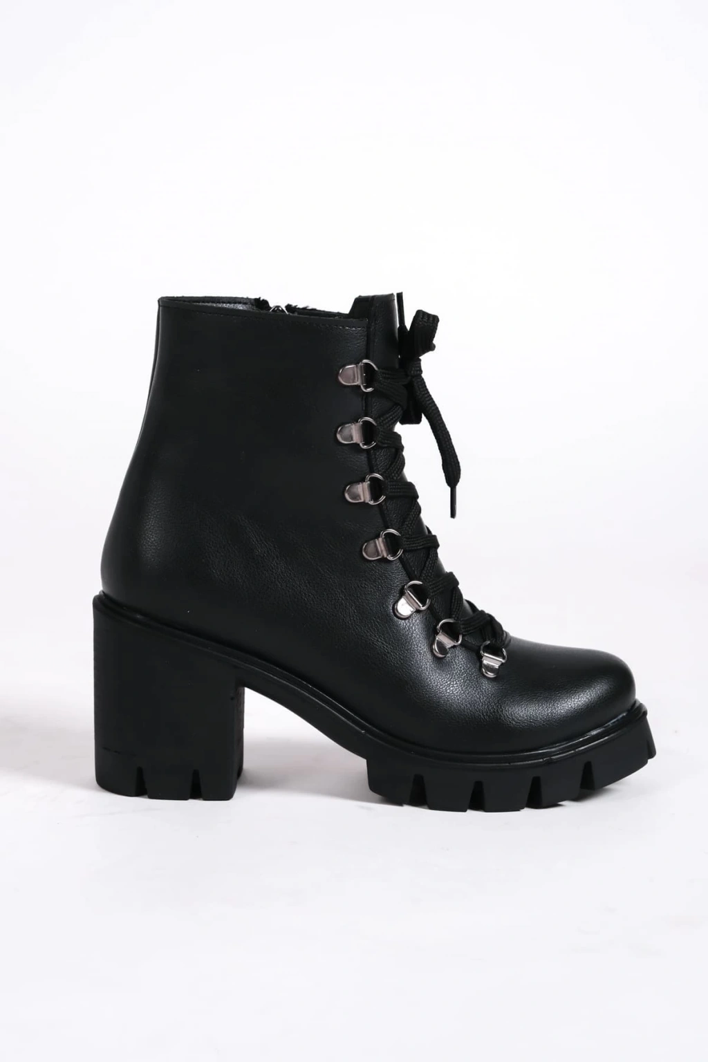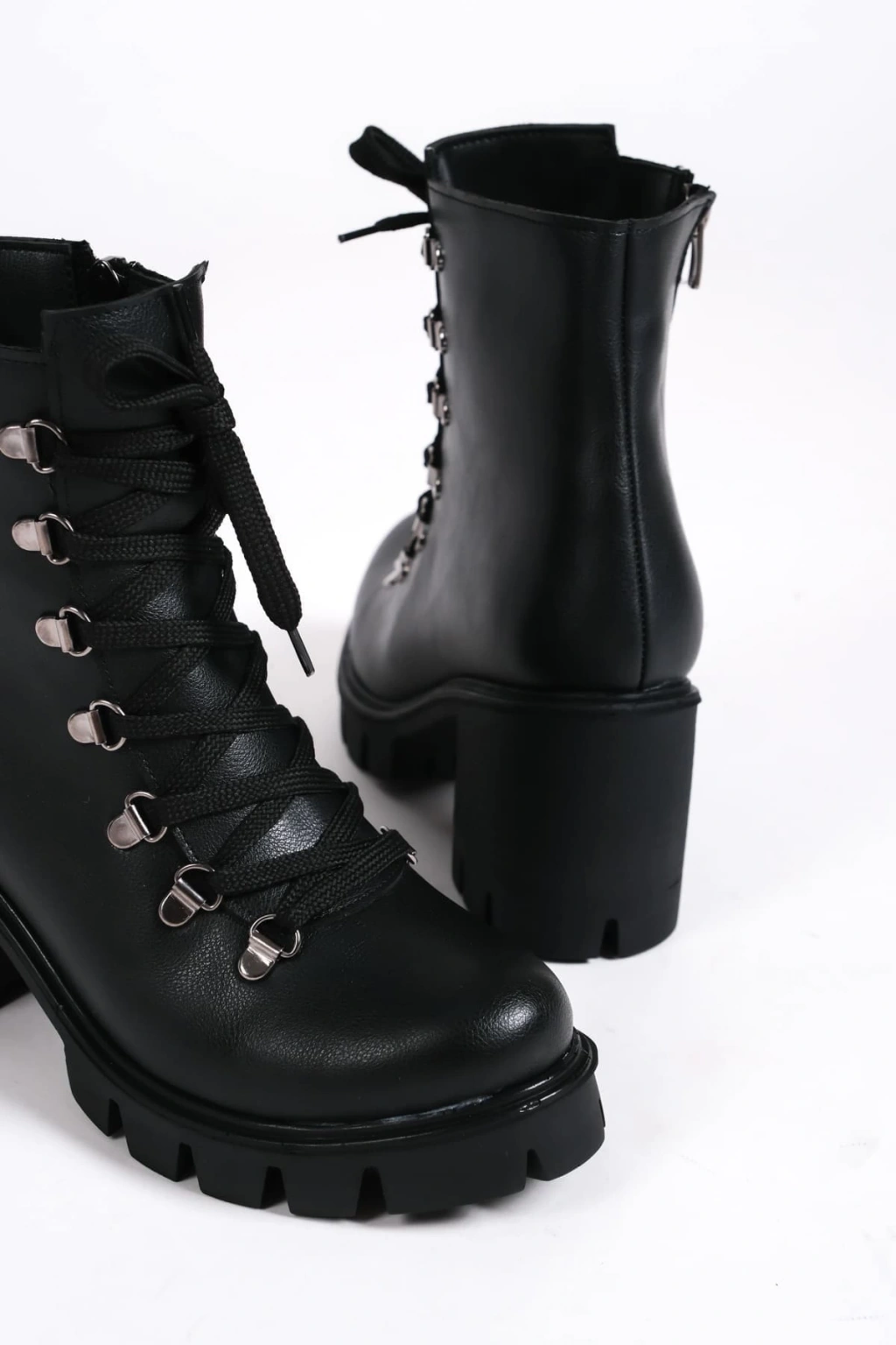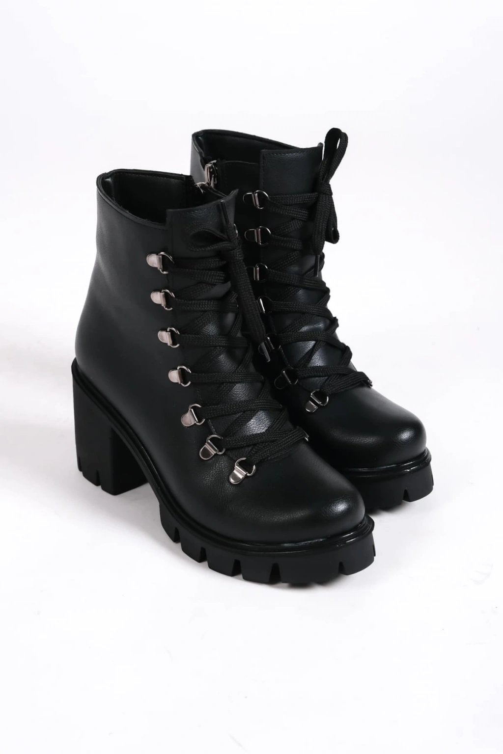 EMMA Bağcıklı Fermuarlı Ortopedik Taban Topuklu Kadın Bot CST - Siyah