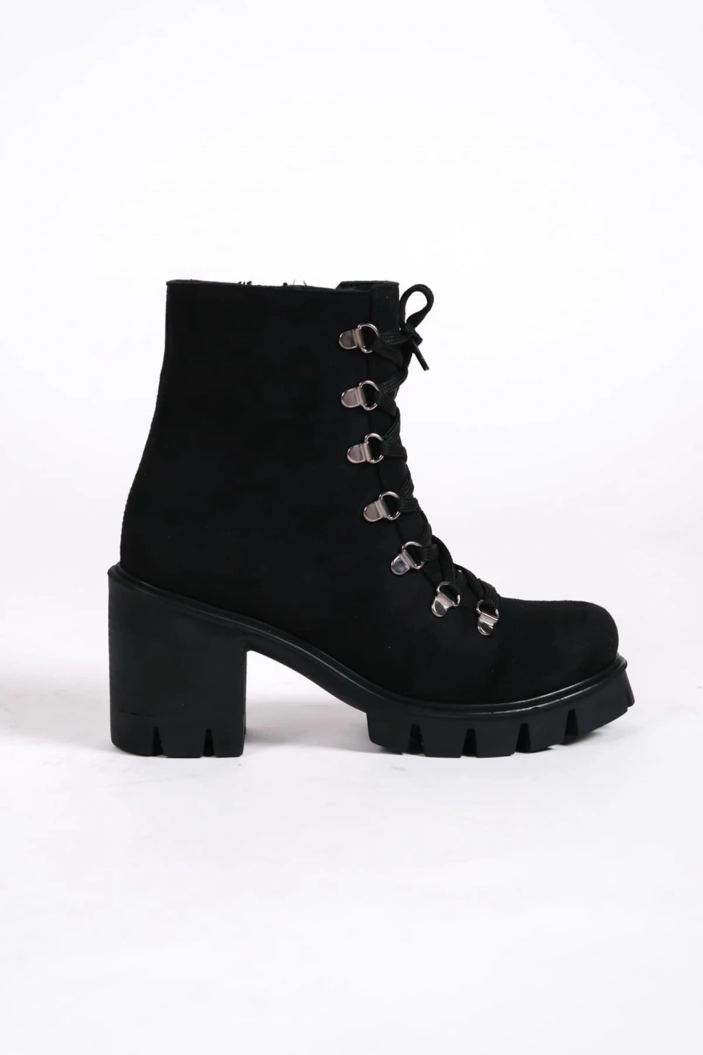 EMMA Bağcıklı Fermuarlı Ortopedik Taban Topuklu Süet Kadın Bot SST - Siyah