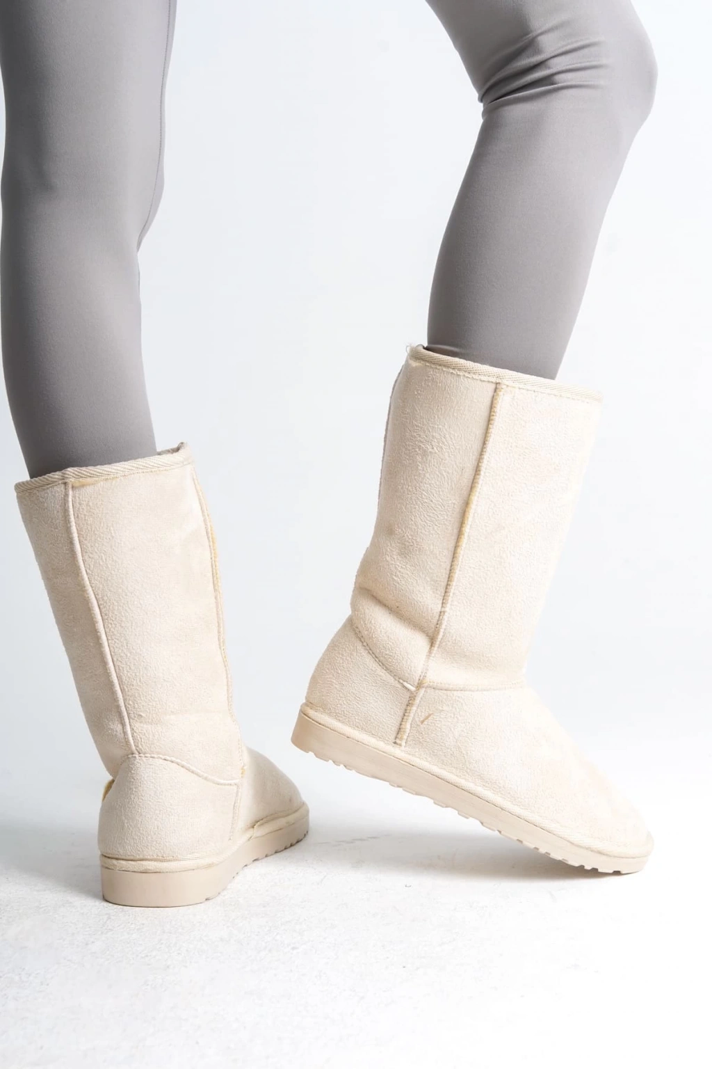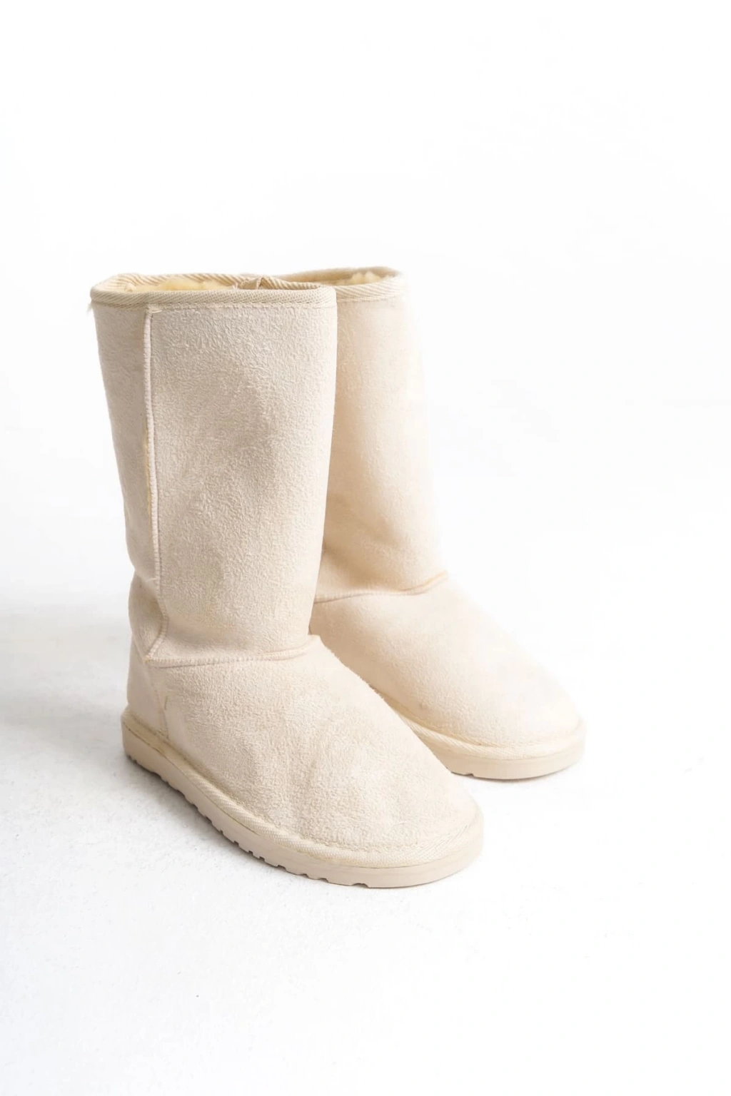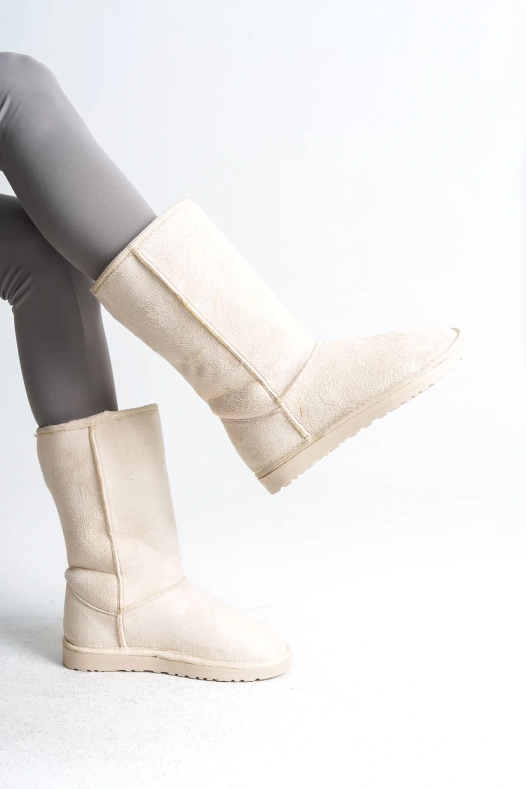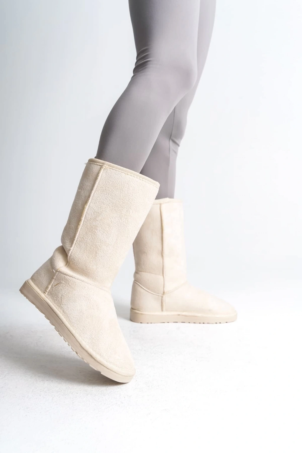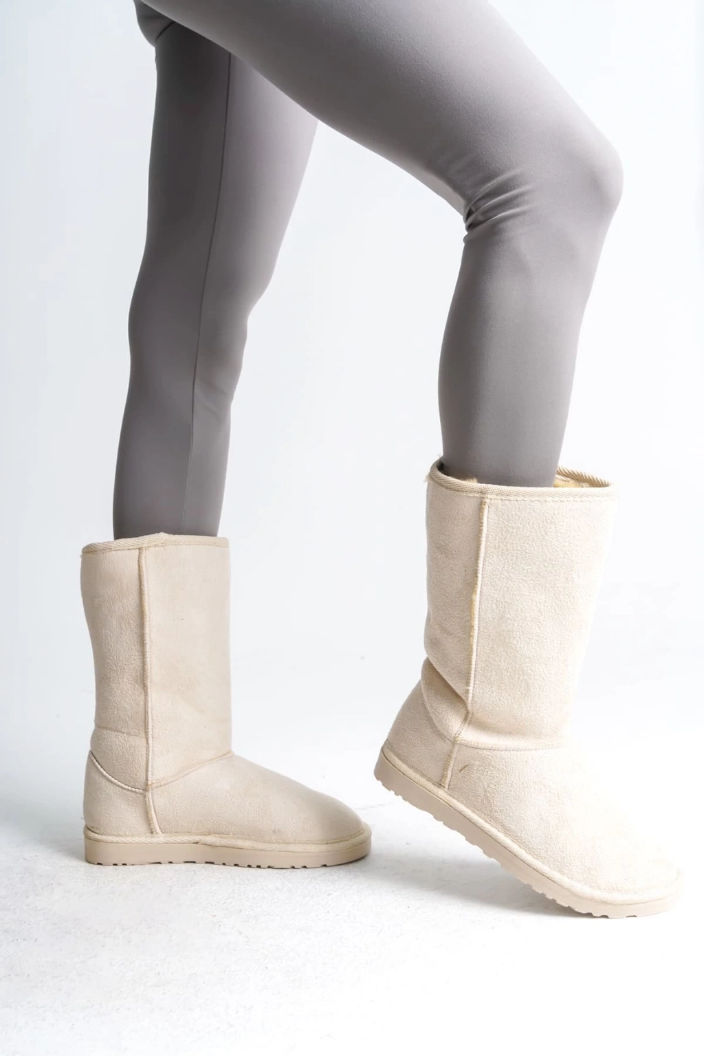 FREYA Bağcıksız Düz Taban İçi Kürklü Süet Kadın Bot SKT - Krem