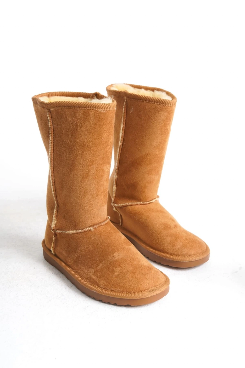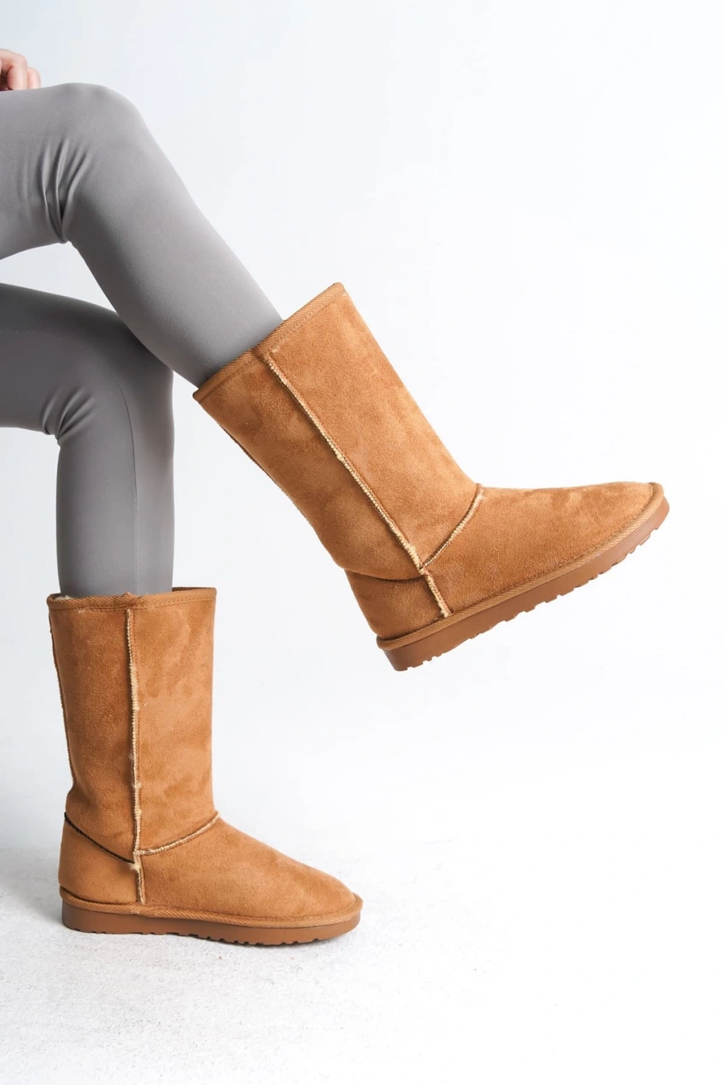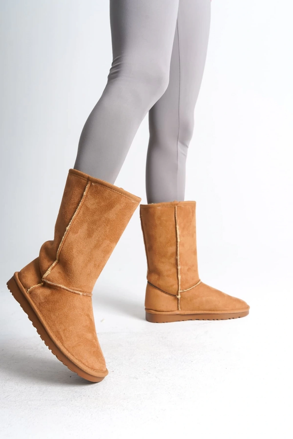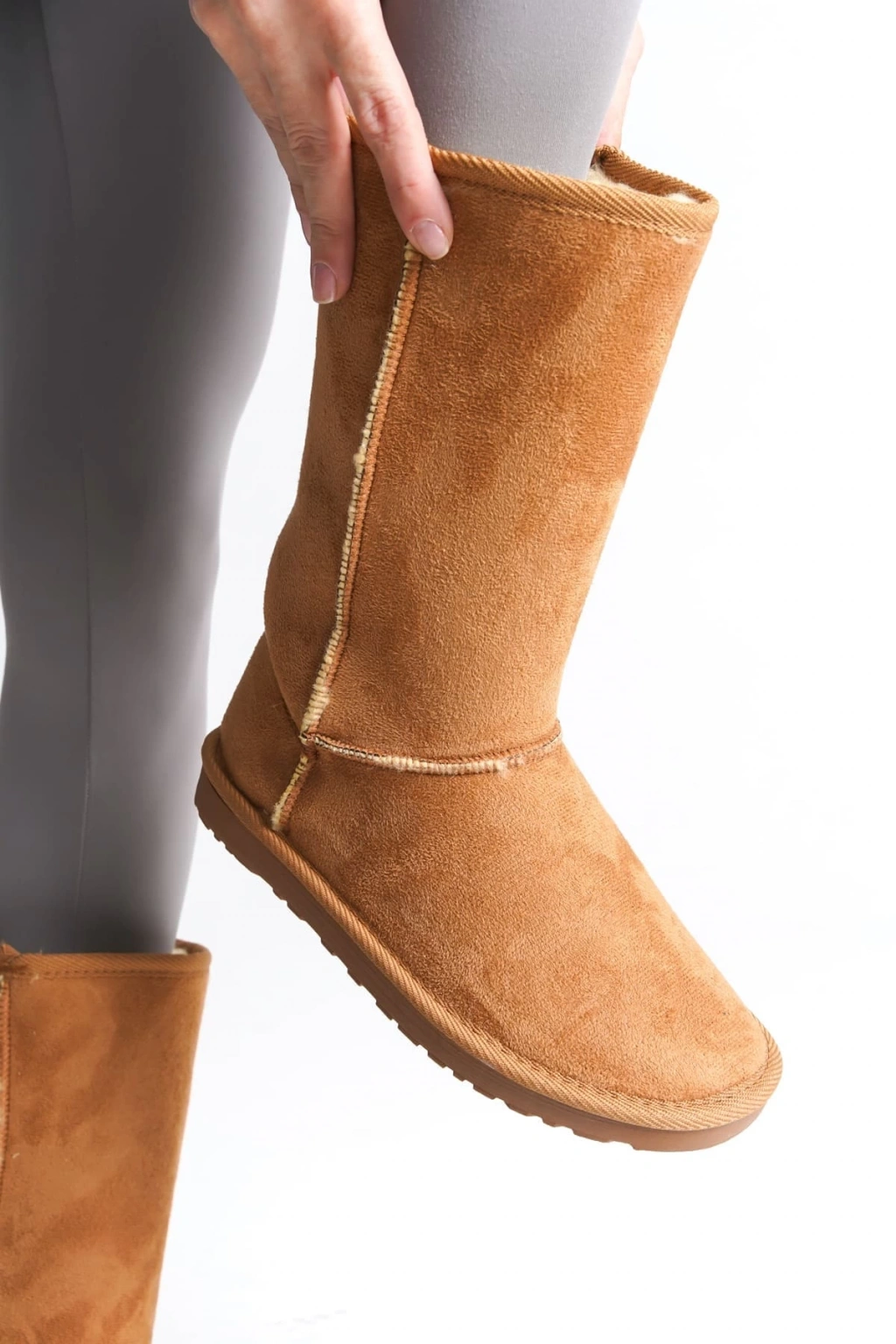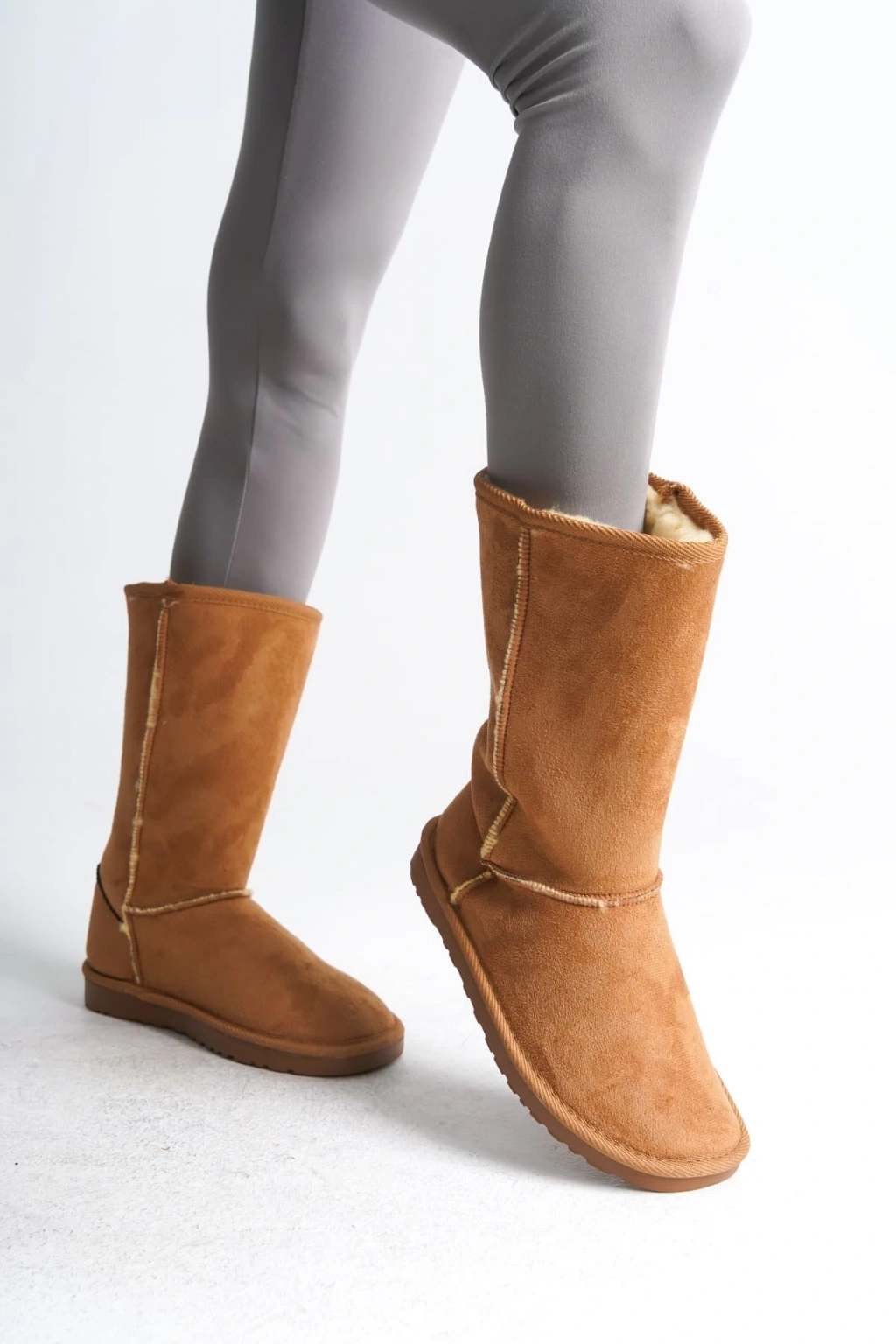 FREYA Bağcıksız Düz Taban İçi Kürklü Süet Kadın Bot STT - Taba