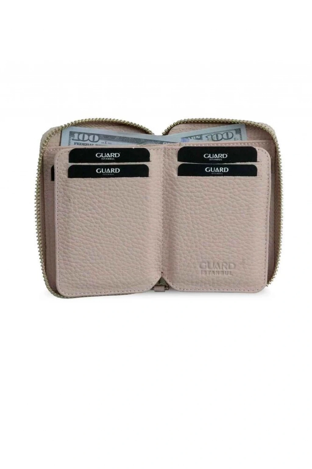 Guard Fermuarlı Pudra Deri Mini Cüzdan