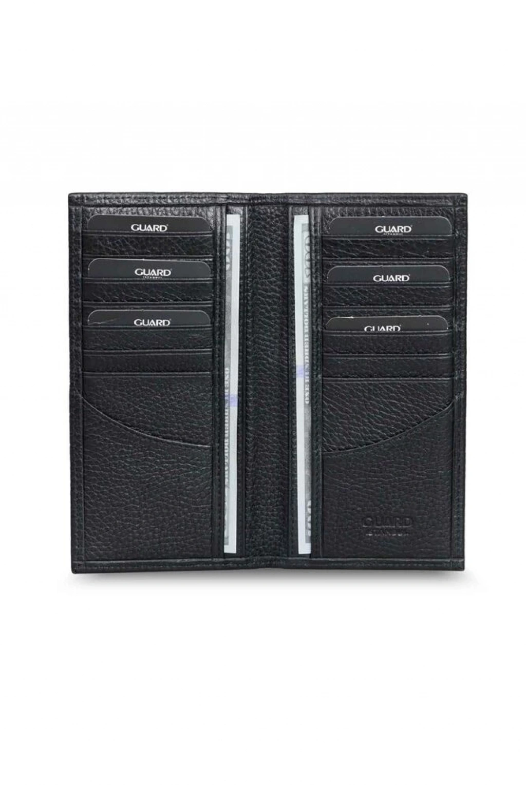 Ana bölme; 4 adet kağıt para bölmesi, 16 adet kartlık ve 2 adet küçük cepten oluşmaktadır.