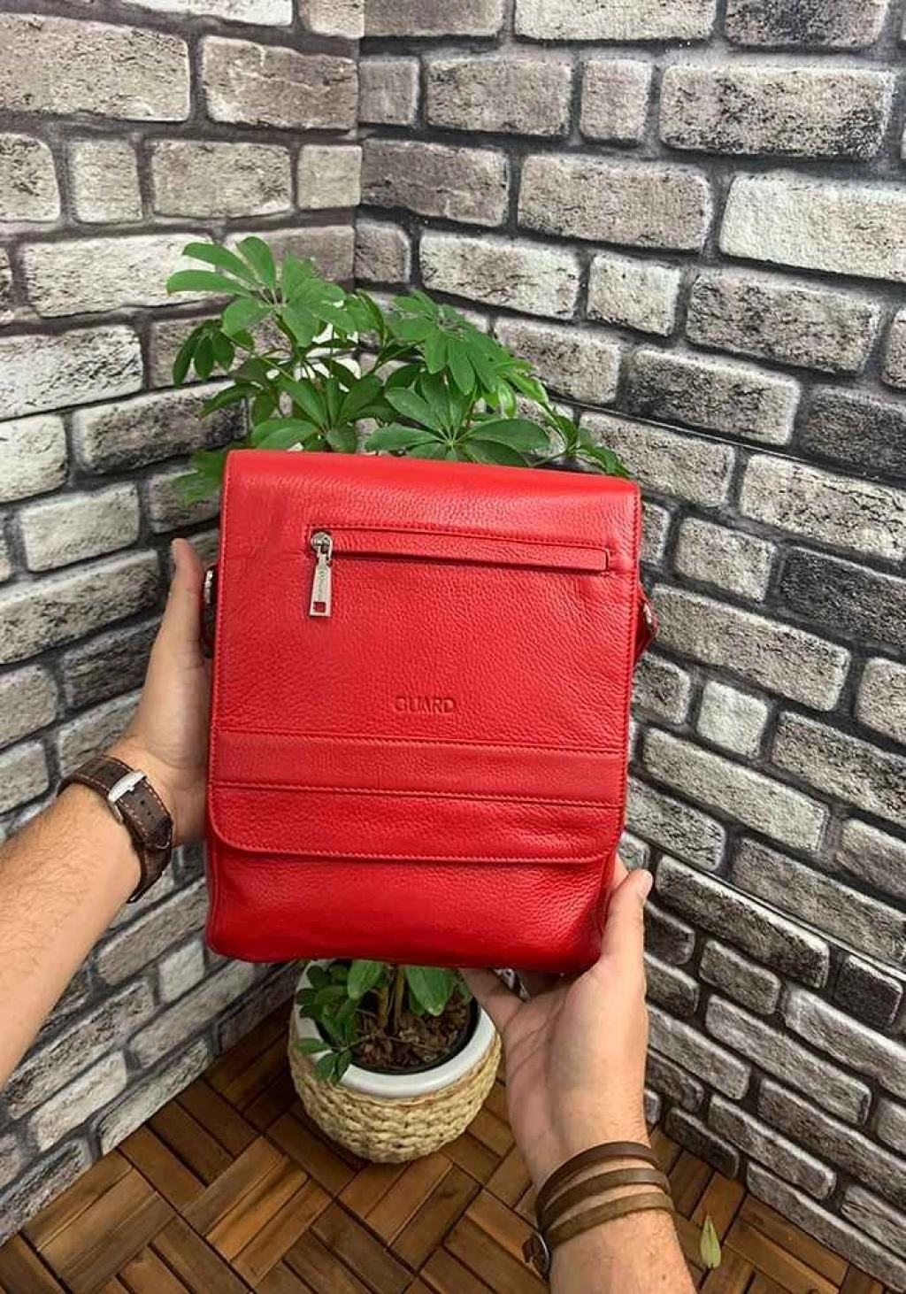 Guard Kırmızı Deri Postacı Çantası, canlı renk seçeneği ve dayanıklı deri malzemesiyle günlük kullanımınızda stilinizi tamamlar. Şık detaylarıyla dikkat çekerken, fonksiyonel iç düzenlemesiyle de pratik bir seçenek sunar.
