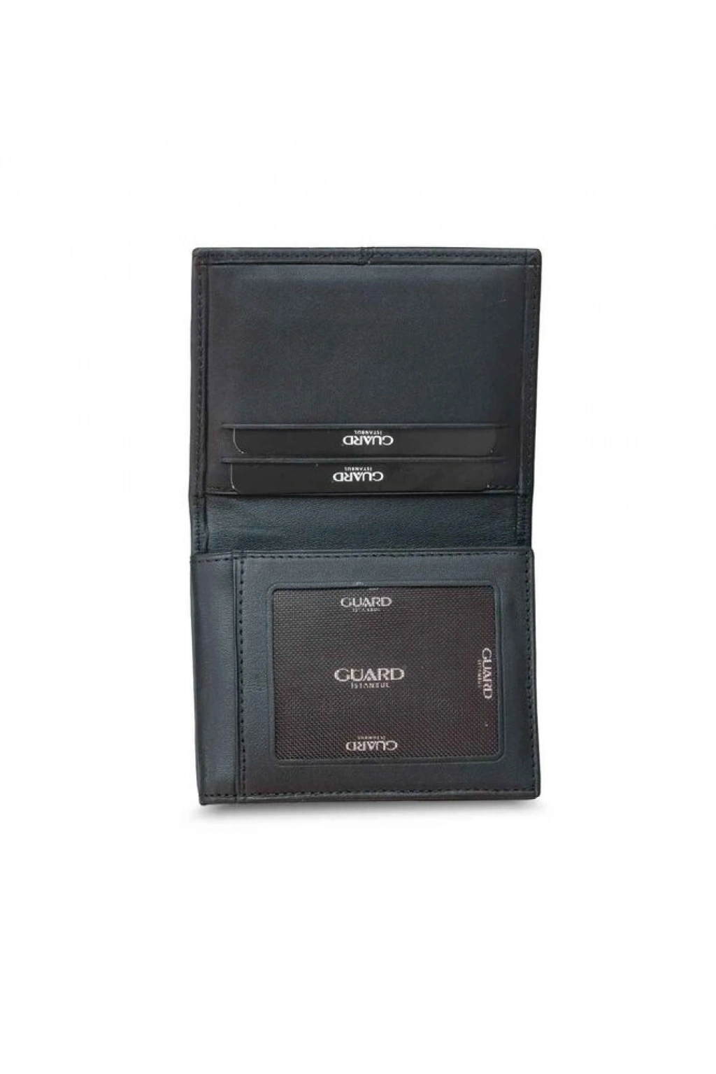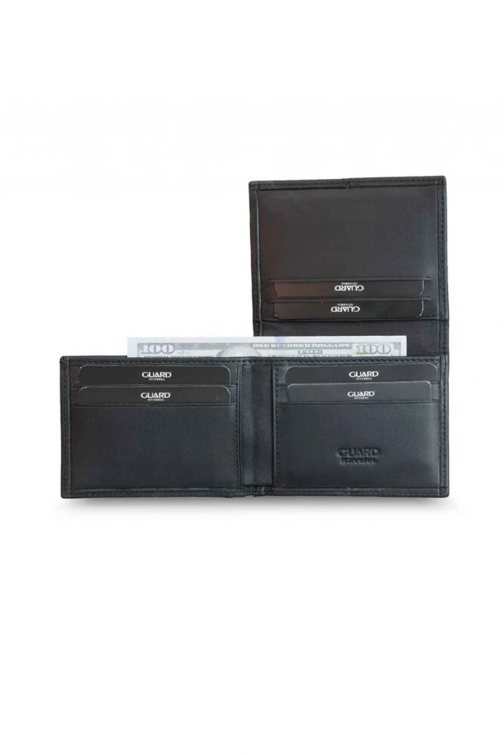 Mat siyah deri erkek cüzdan minimal spor tasarıma sahiptir. Toplamda 6 adet kart, 1 adet şeffaf kimlik/ehliyet, 3 adet gizli cep bulunmaktadır, ayrıca 1 adet de kağıt para bölümü var.