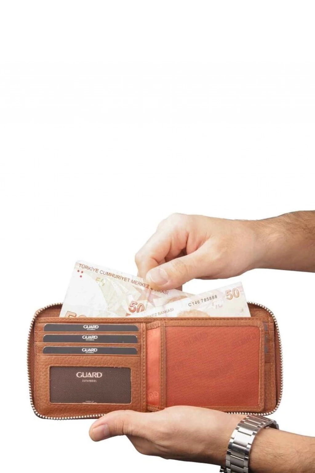 Retro modelimiz 10x12cm ölçülerinde fermuarlı bir cüzdandır. Fermuarı açtığımızda karşımıza çıkan klasik cüzdan görüntüsü, adını hak ettiğini kanıtlar nitelikle. Kullanım alışkanlıklarından vazgeçemeyenler için sol tarafında 2 adet kart ve 1 adet şeffaf kimlik/ehliyet bölmesi bulunmaktadır. Orta tarafta bulanan 1 adet pisot içerisine 1 adet eski kimlik bölümü (fotoğraflık olarak da kullanabilirsiniz) ve 1 adet yeni kimlik/ehliyet bölmesi de koyduk. Fakat daha fazla karta sahip olduğunuzu biliyoruz ve bu sebeple sağ tarafında 4 adet kart ve 1 adet gizli cep bulunmaktadır. Ebatları sayesinde ceket, mont ve arka cepte kola