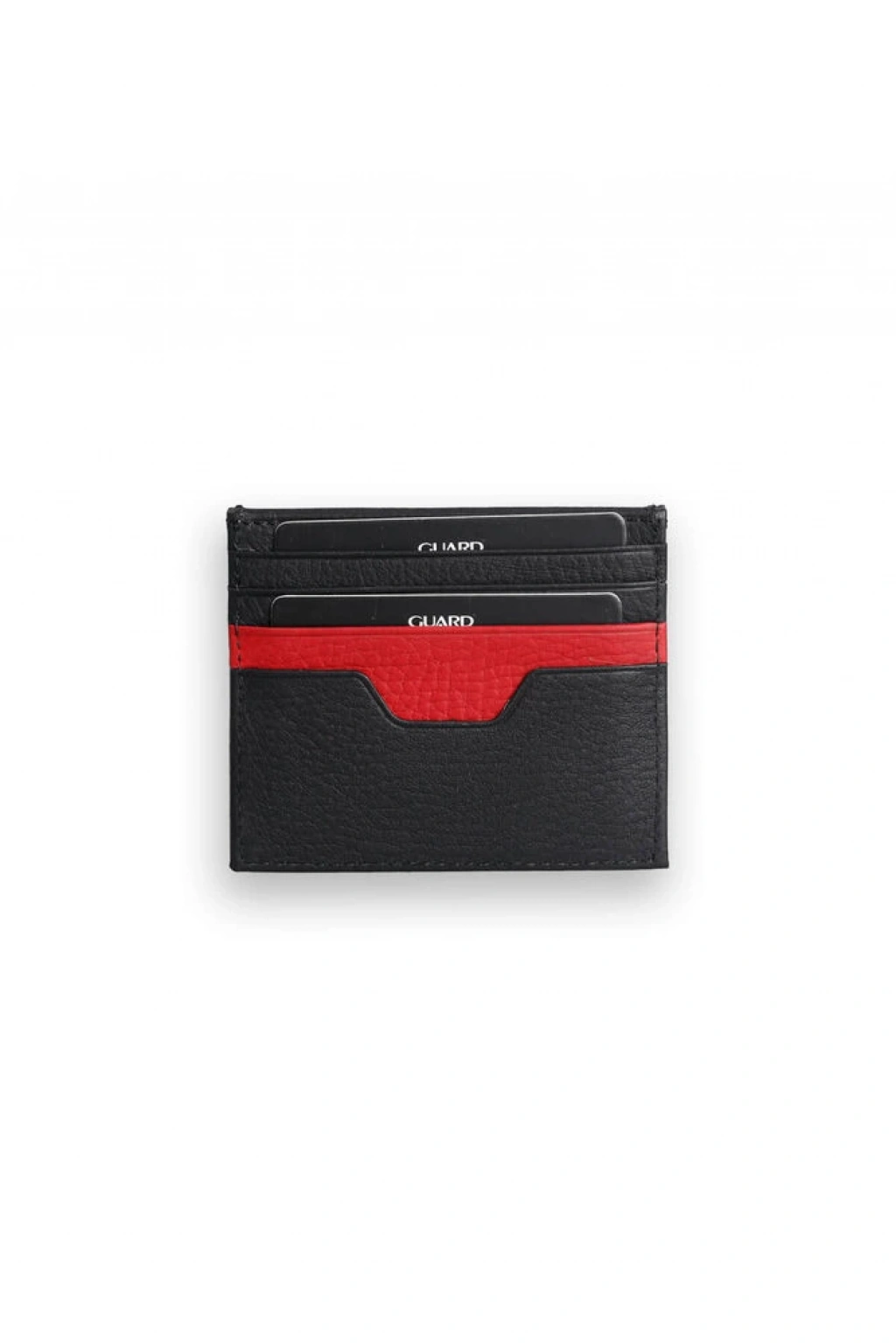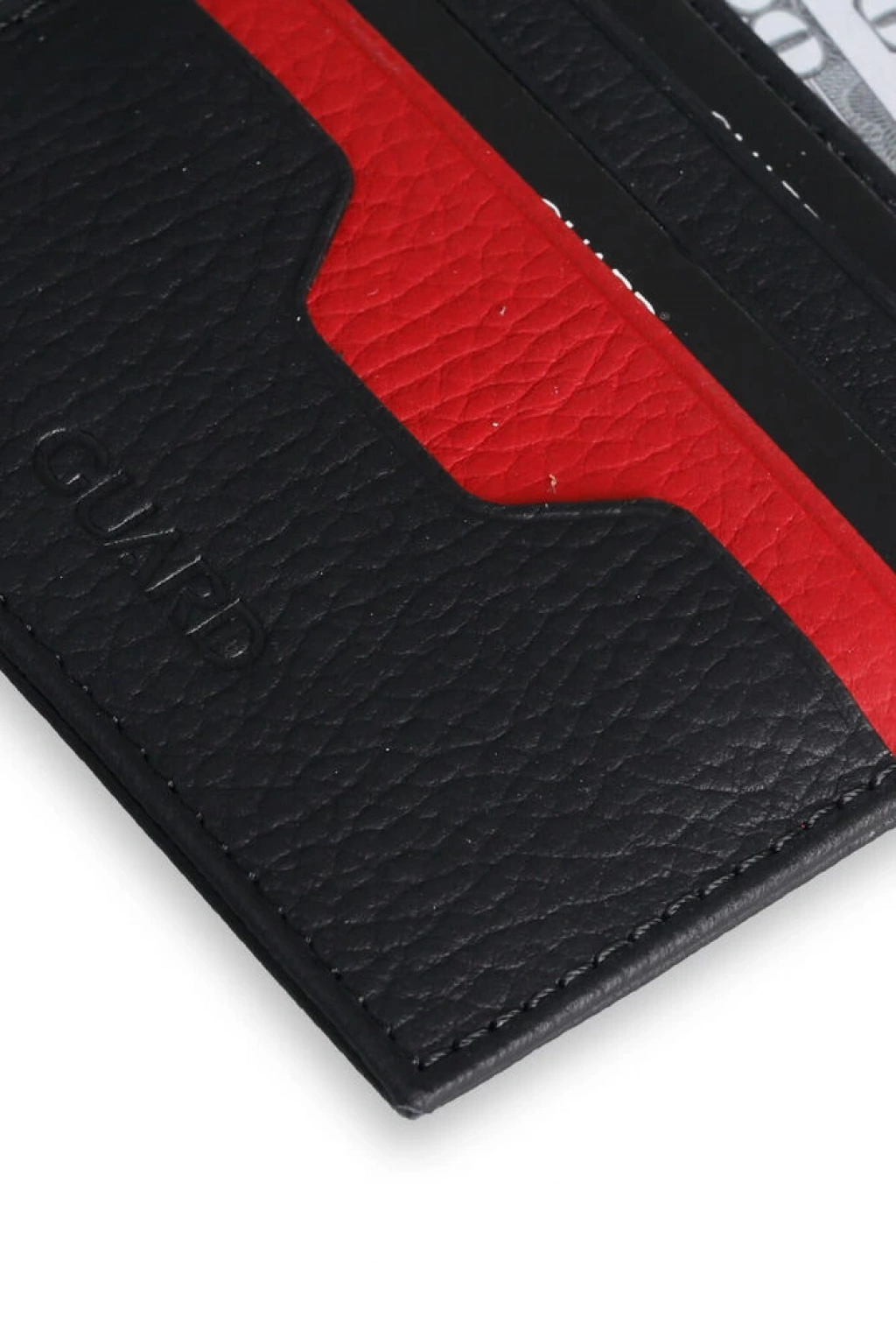 Guard Siyah - Kırmızı Çift Renk Hakiki Deri Kartlık