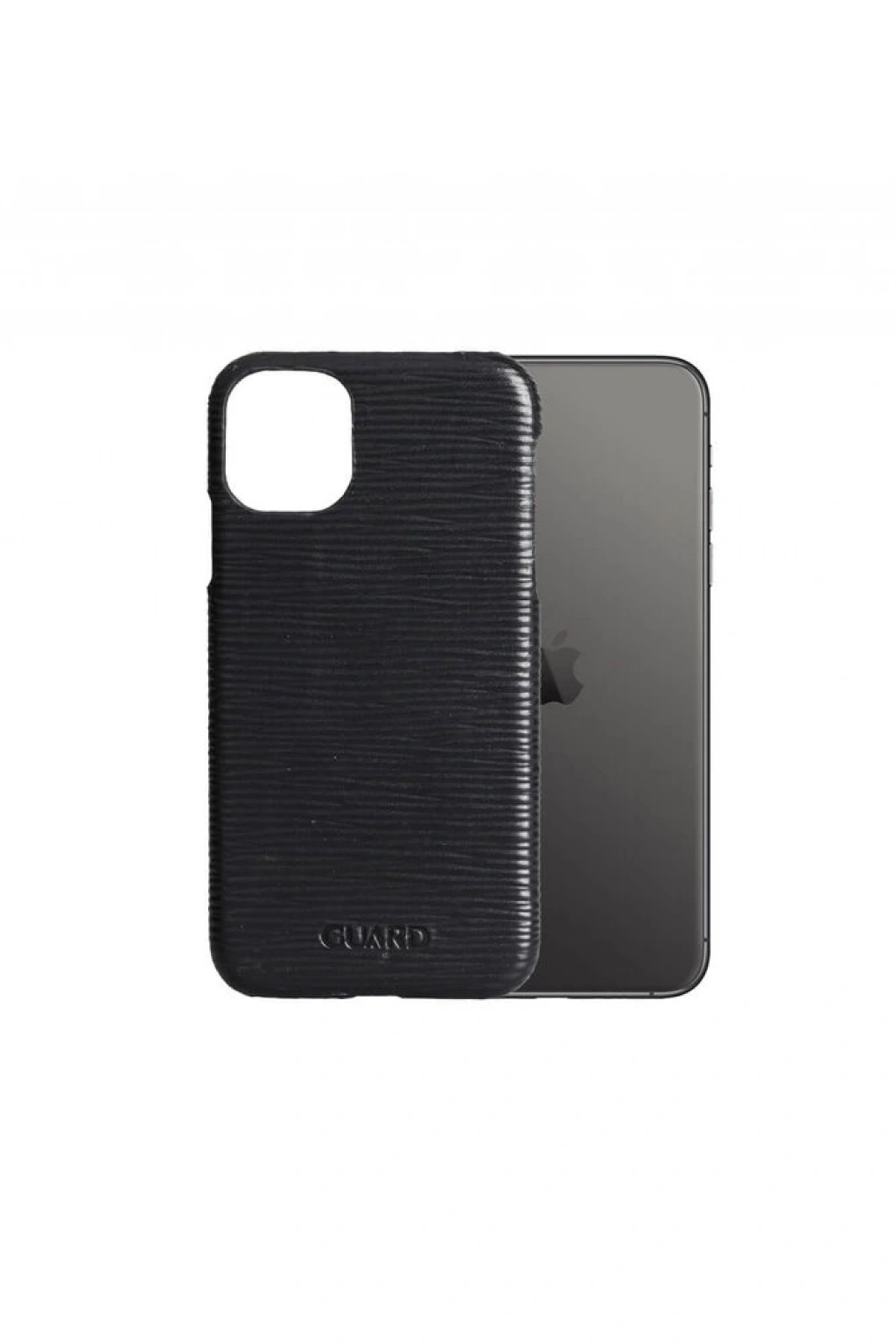 Guard Siyah Yol Deseni iPhone 11 Hakiki Deri Telefon Kılıfı, telefonunuzu güvenli bir şekilde korurken şık bir görünüm sunar. Zarafet ve dayanıklılık arayan kullanıcılar için ideal bir tercihtir.