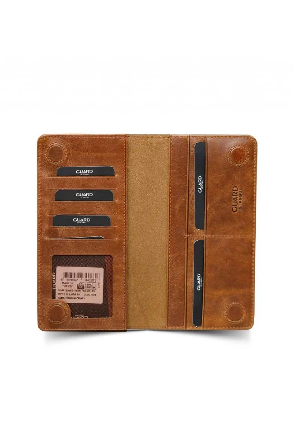 Guard Telefon Girişli Deri Erkek/Kadın Portföy Cüzdan - Tiguan Taba