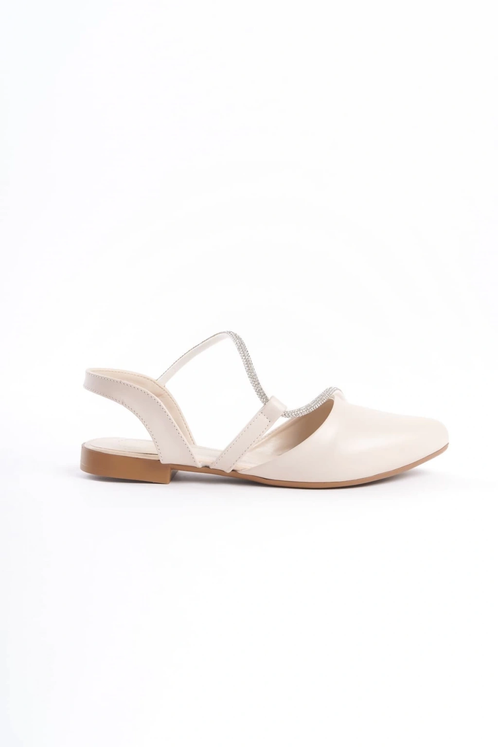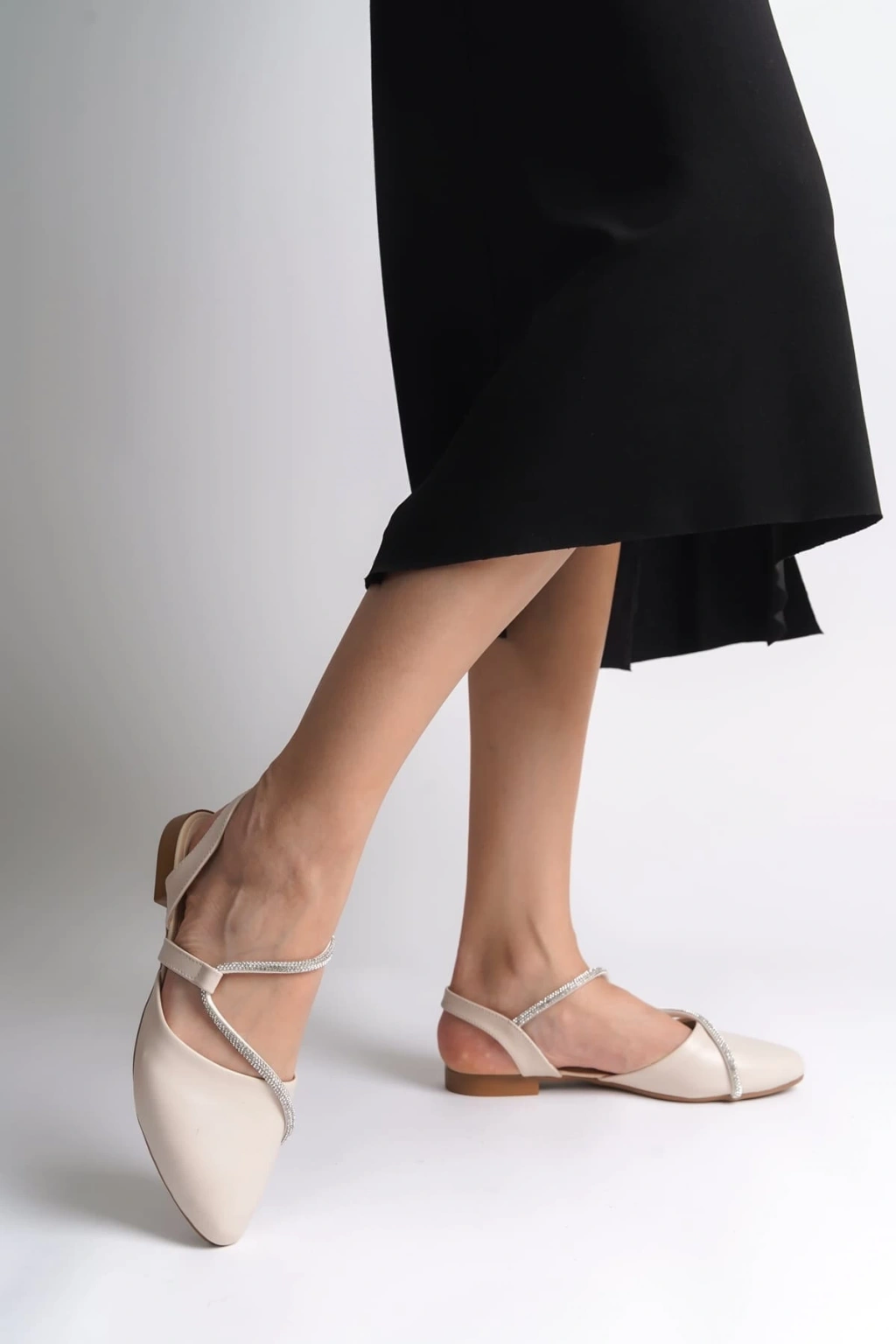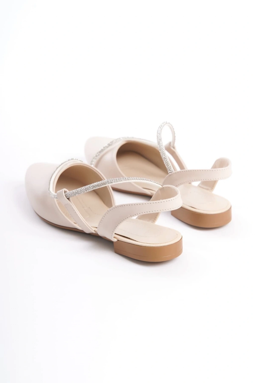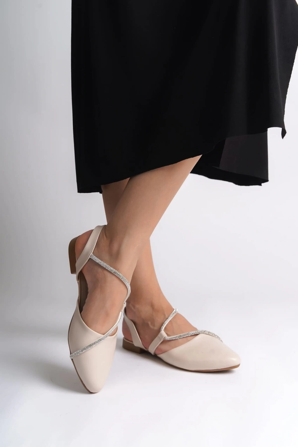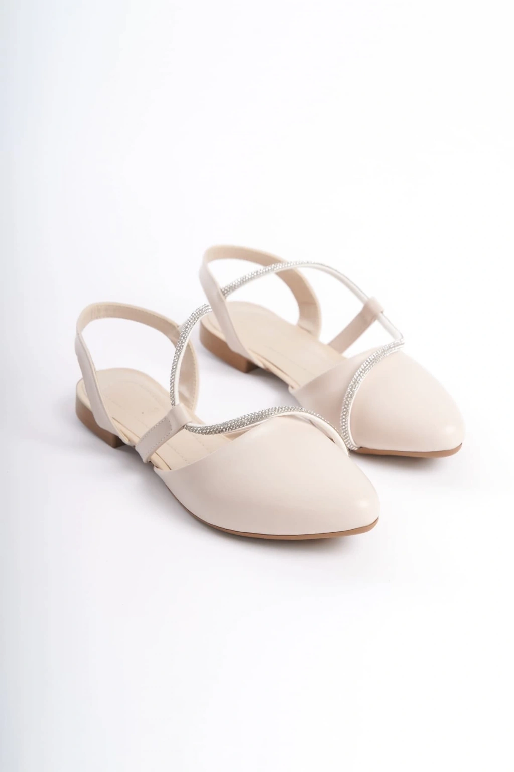 HANNAH Lastikli Ortopedik Rahat Taban Taş Detaylı Kadın Babet Ayakkabı CKT - Krem