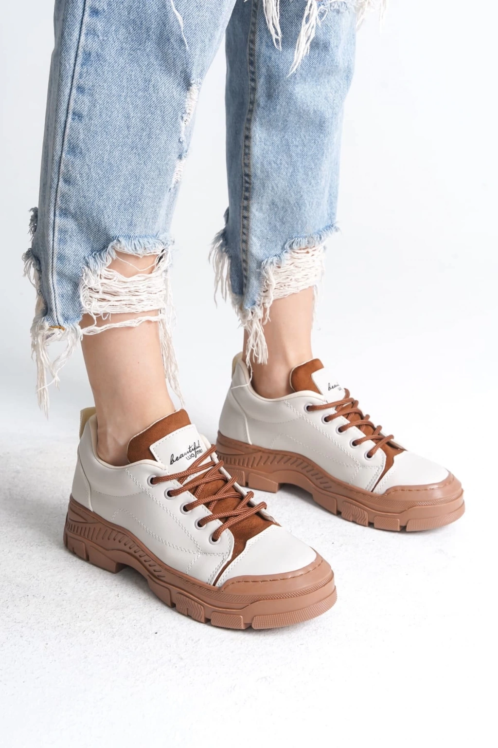 JANE Bağcıklı Ortopedik Taban Kadın Sneaker Spor Ayakkabı CTT - Krem