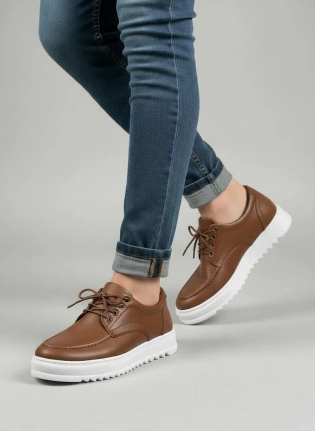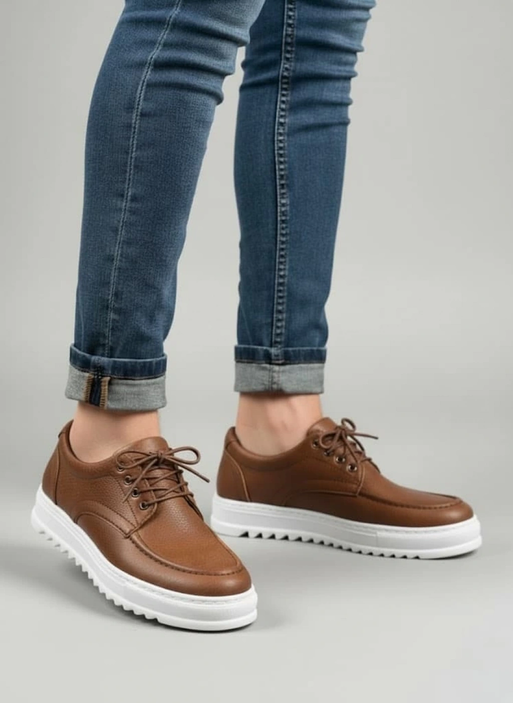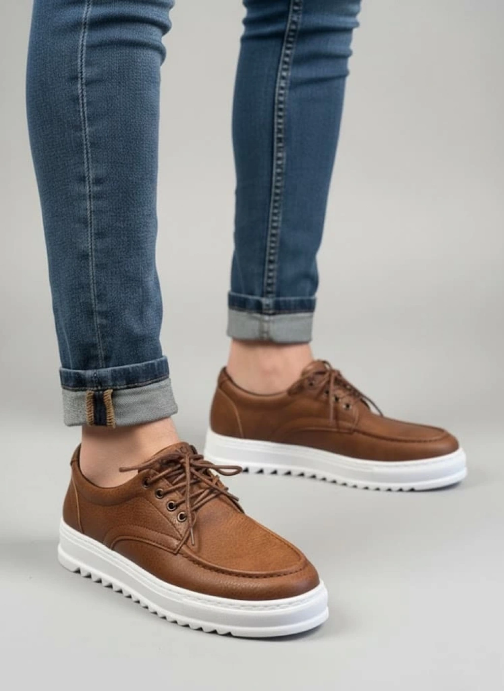 JY-T12x Arts Bağcıklı Cilt Erkek Günlük Spor Klasik Ayakkabı CBT - Taba