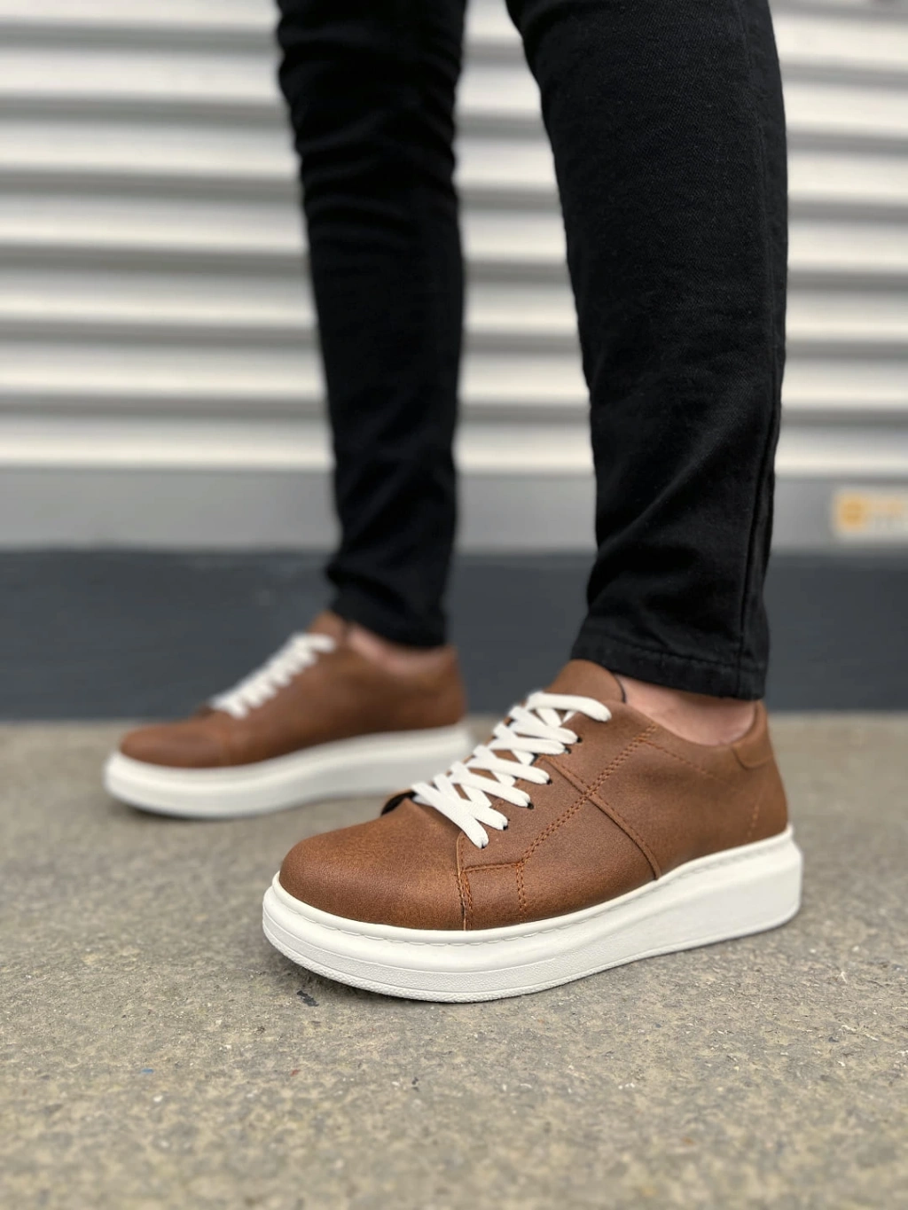 JY151 Boost Bağcıklı Cilt Erkek Günlük Sneaker Ayakkabı CBT - Taba