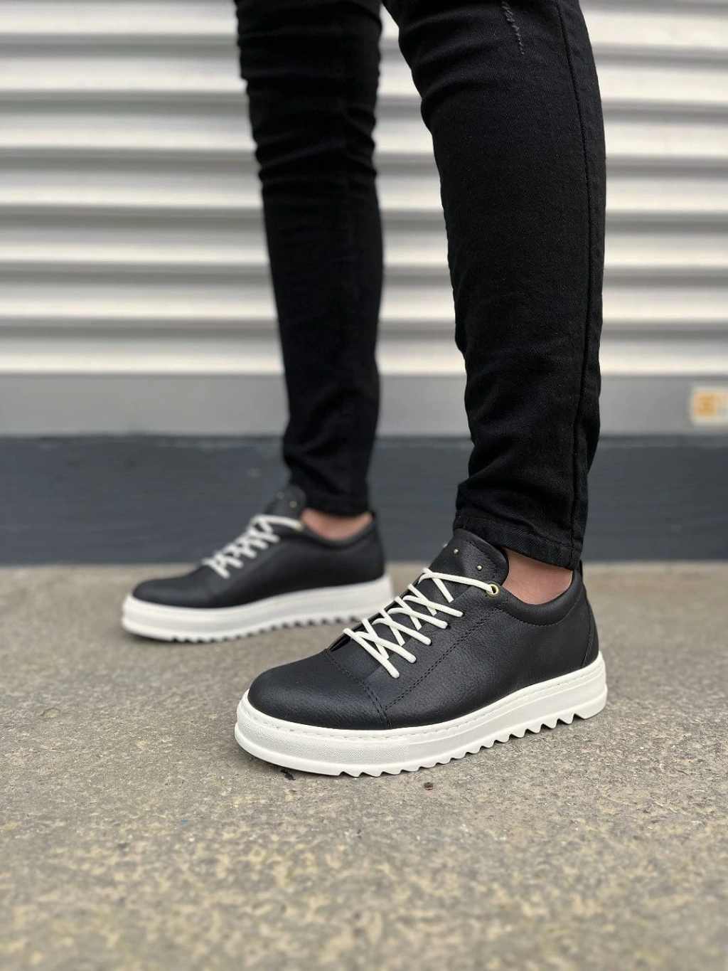 JY152 Cool Bağcıklı Cilt Erkek Günlük Spor Klasik Ayakkabı CBT - Siyah