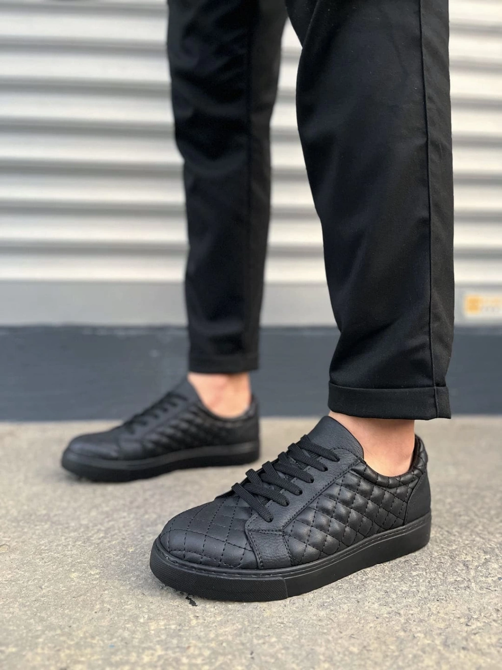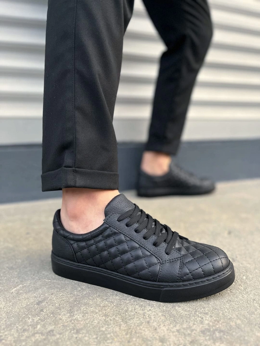 JY166 Prestige Bağcıklı Cilt Kapitone Desenli Erkek Günlük Sneaker Ayakkabı CST - Siyah