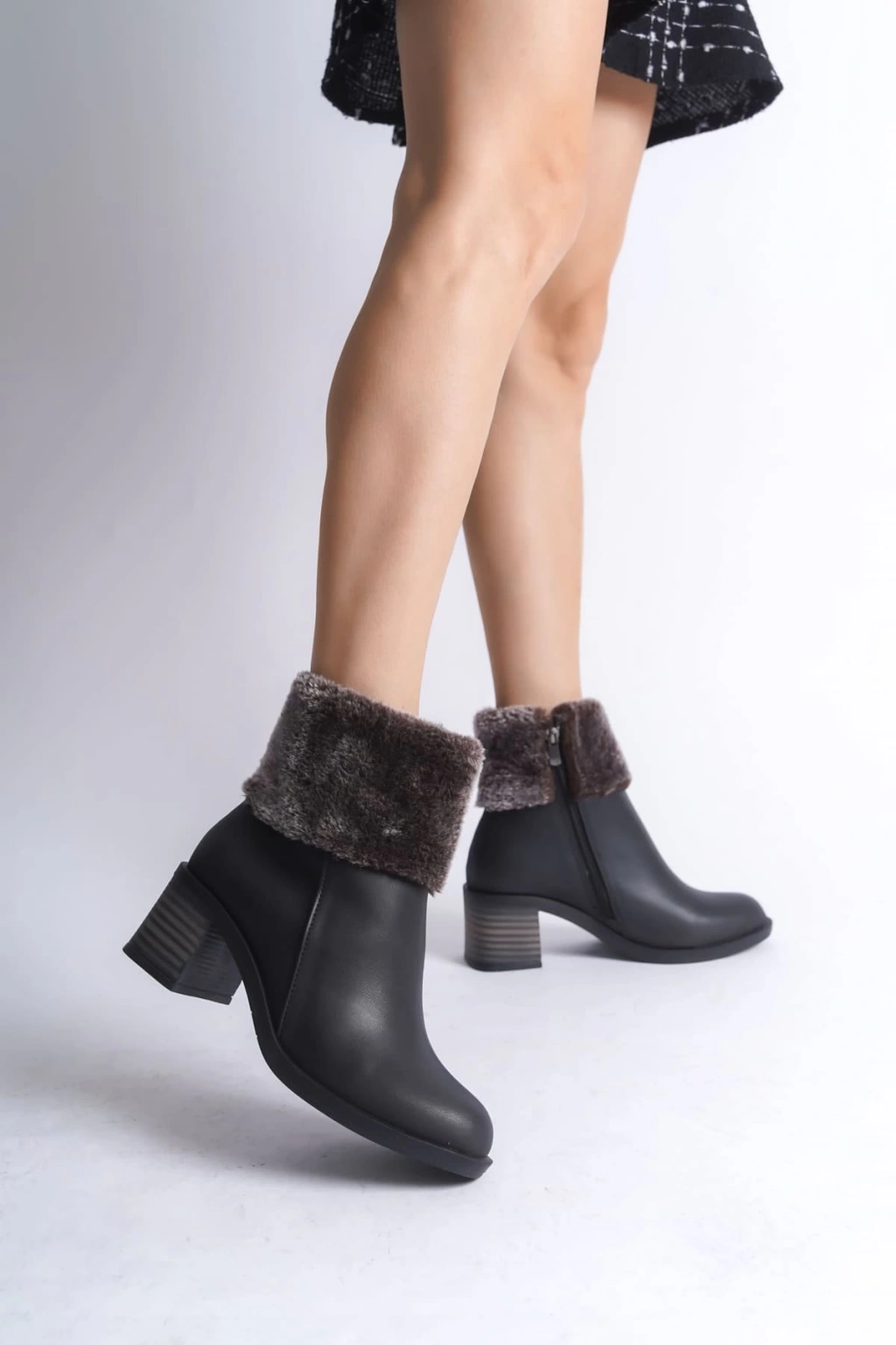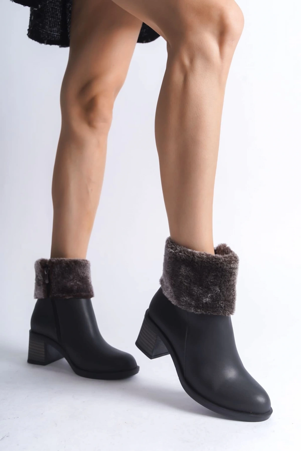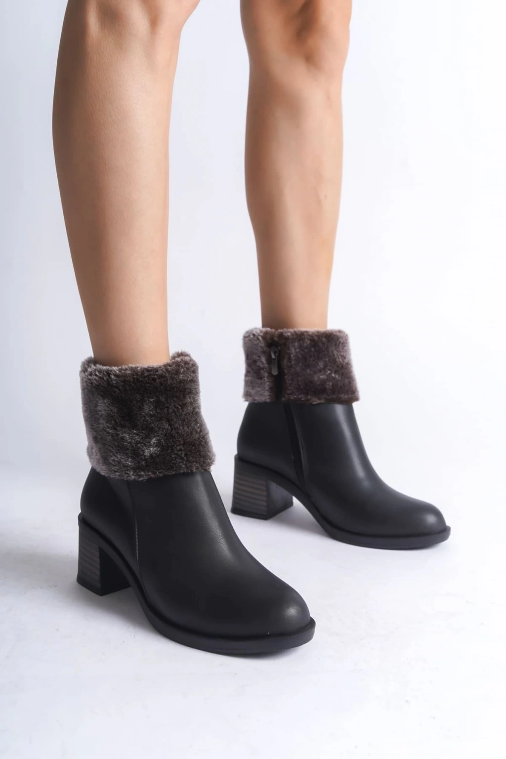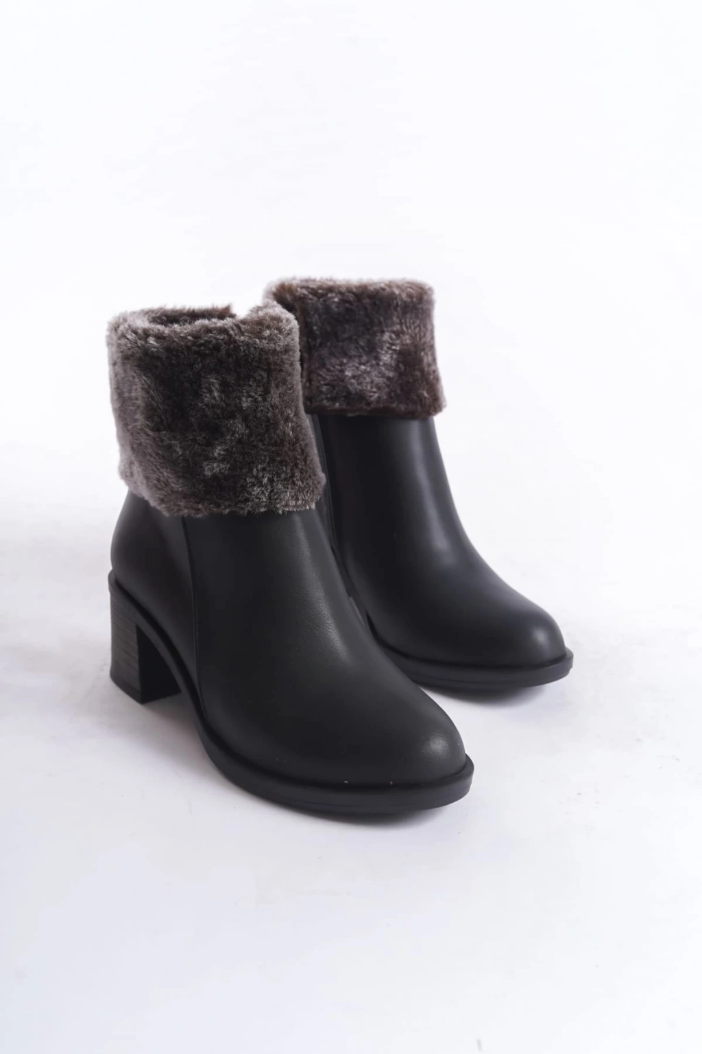 KATYA Fermuarlı Ortopedik Taban Topuklu Kürk DetaylıKadın Bot CST - Siyah