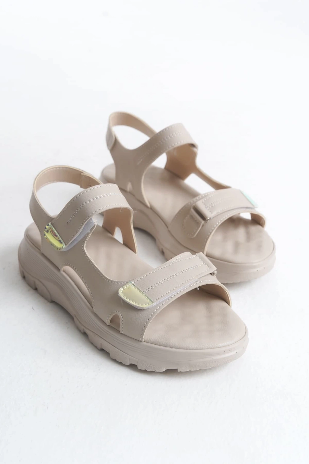 LAMIA Cırt Cırtlı Ortopedik Taban Kadın Sandalet CKT - Krem