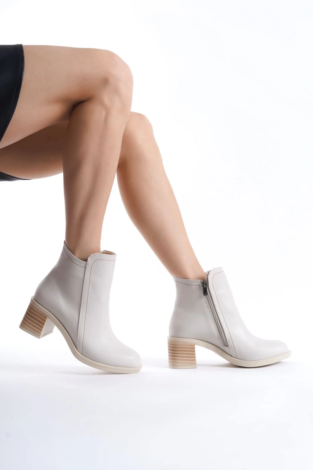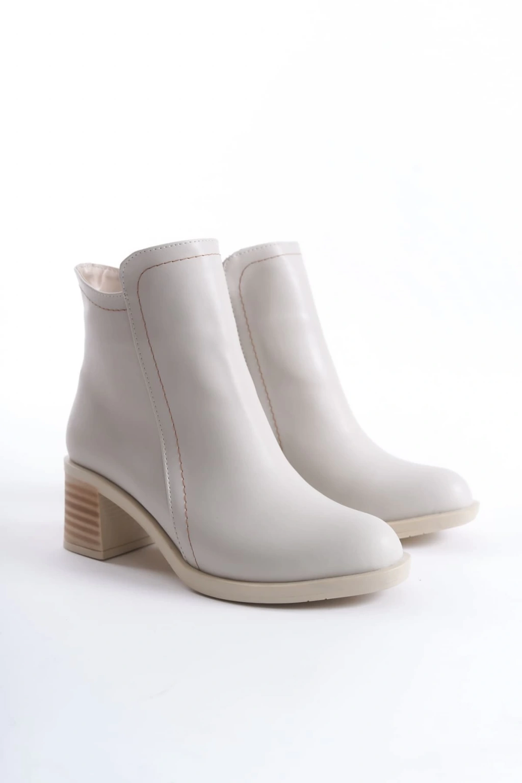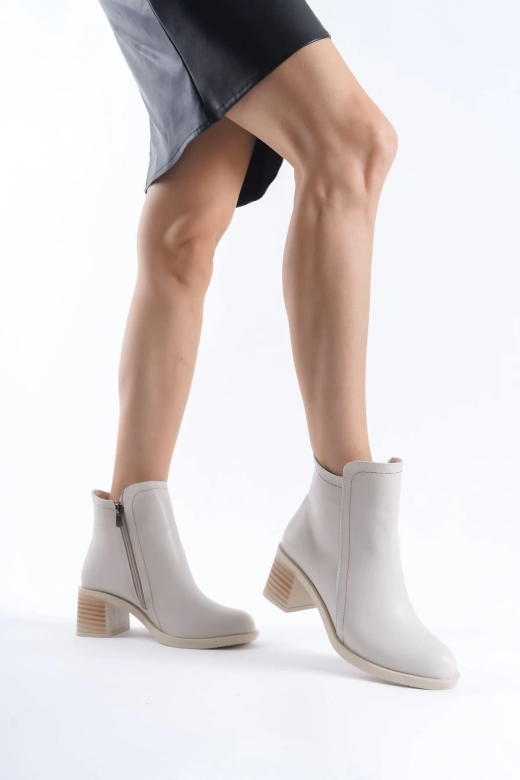 LARISSA Fermuarlı Ortopedik Taban Topuklu Kadın Bot CKT - Krem