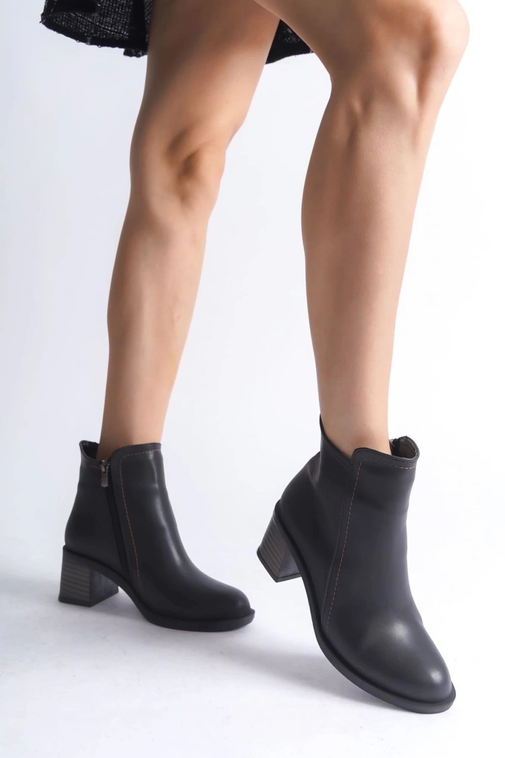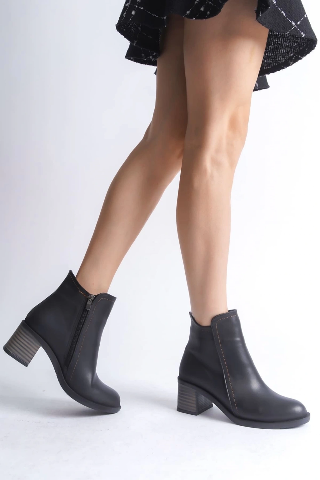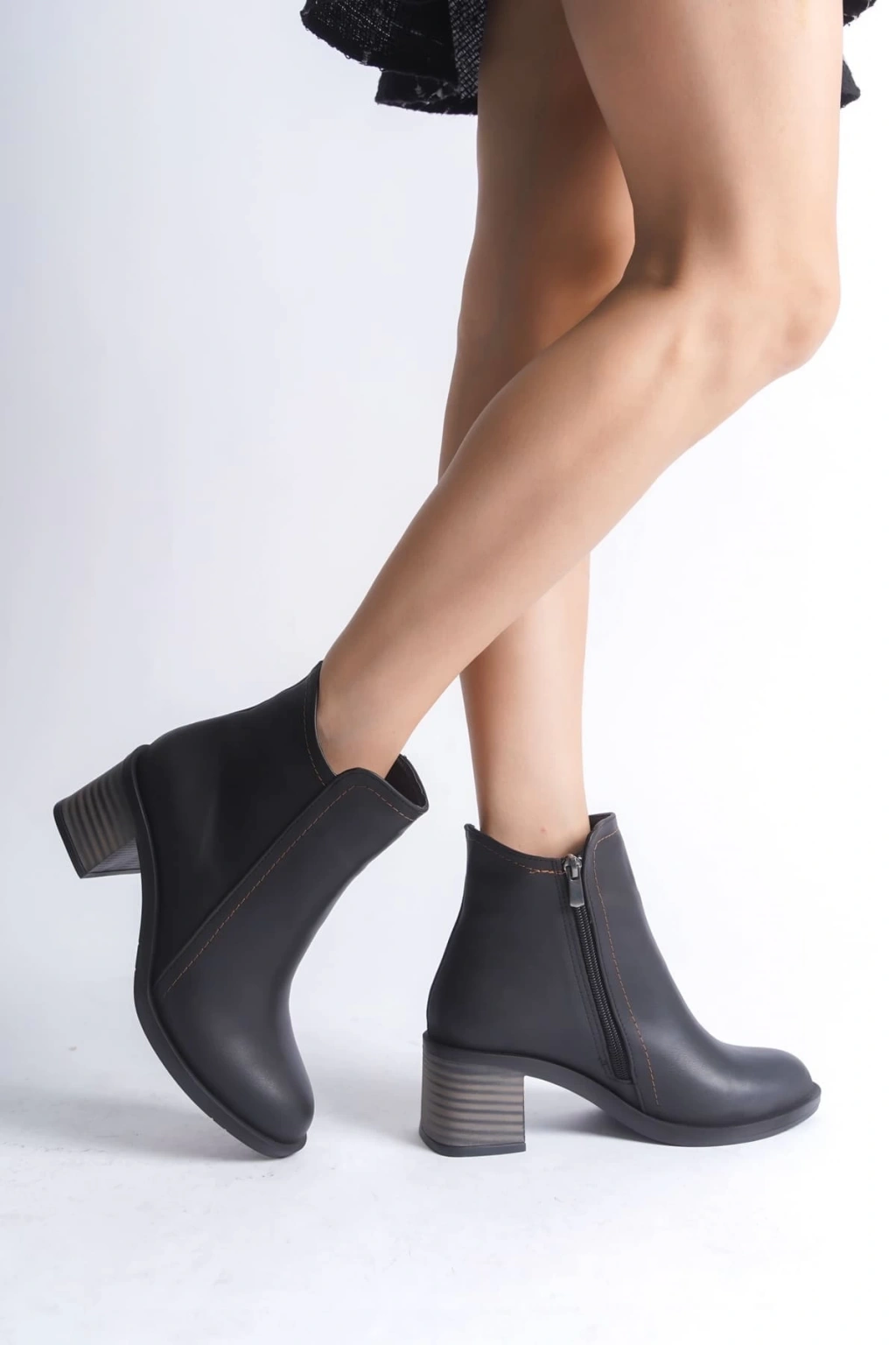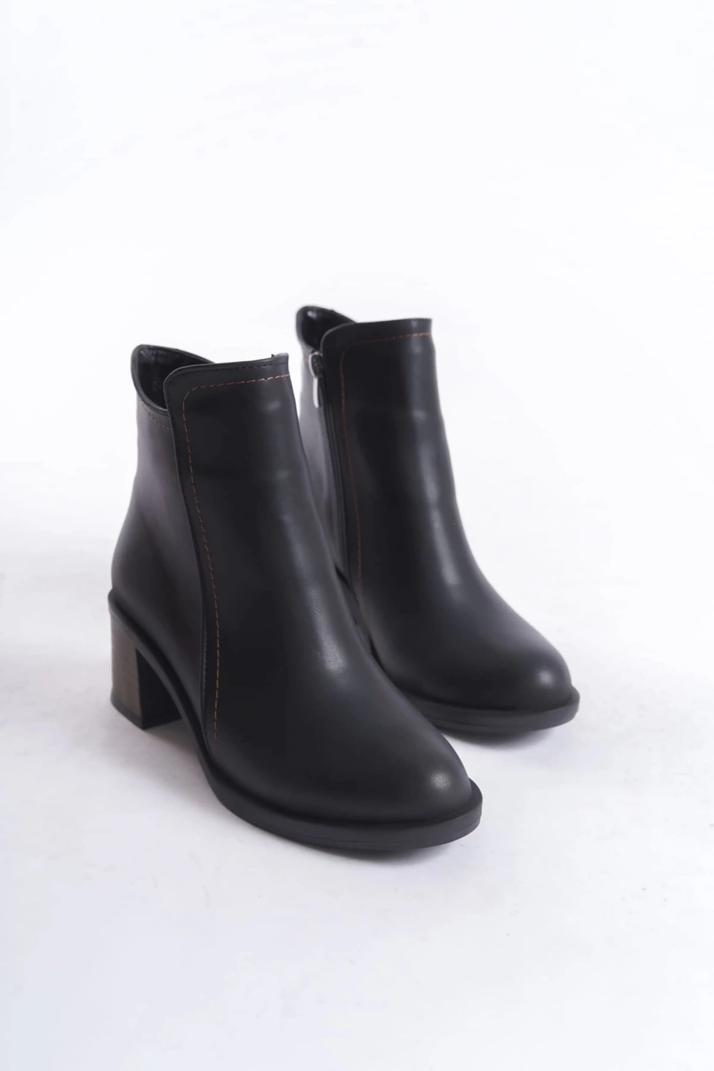 LARISSA Fermuarlı Ortopedik Taban Topuklu Kadın Bot CST - Siyah
