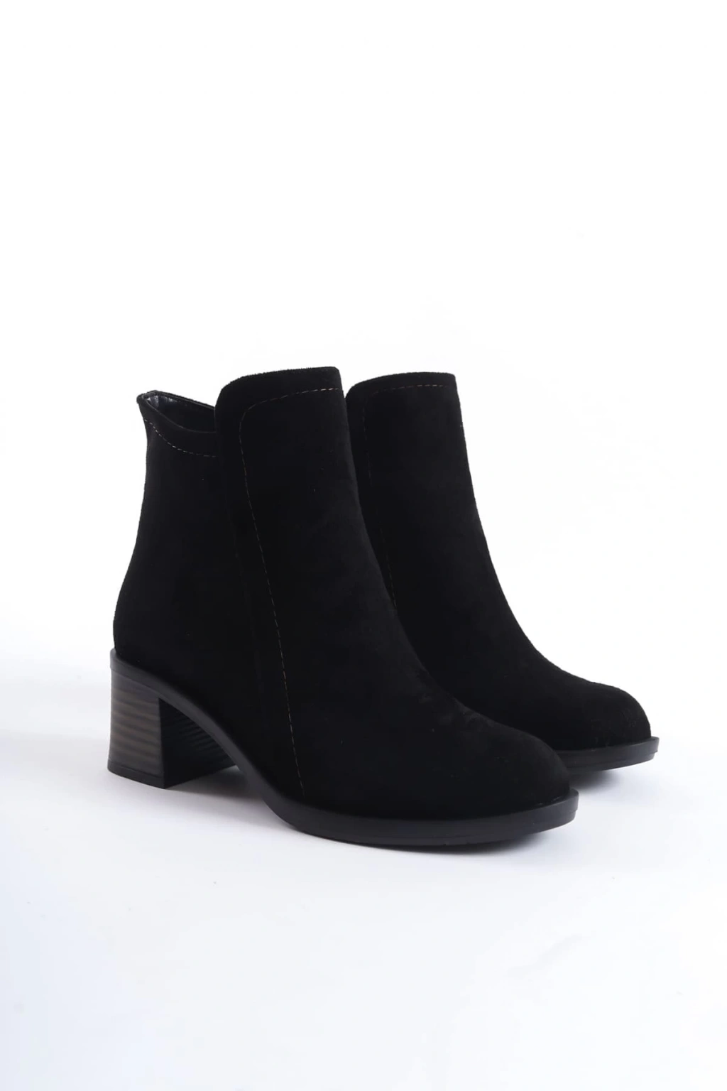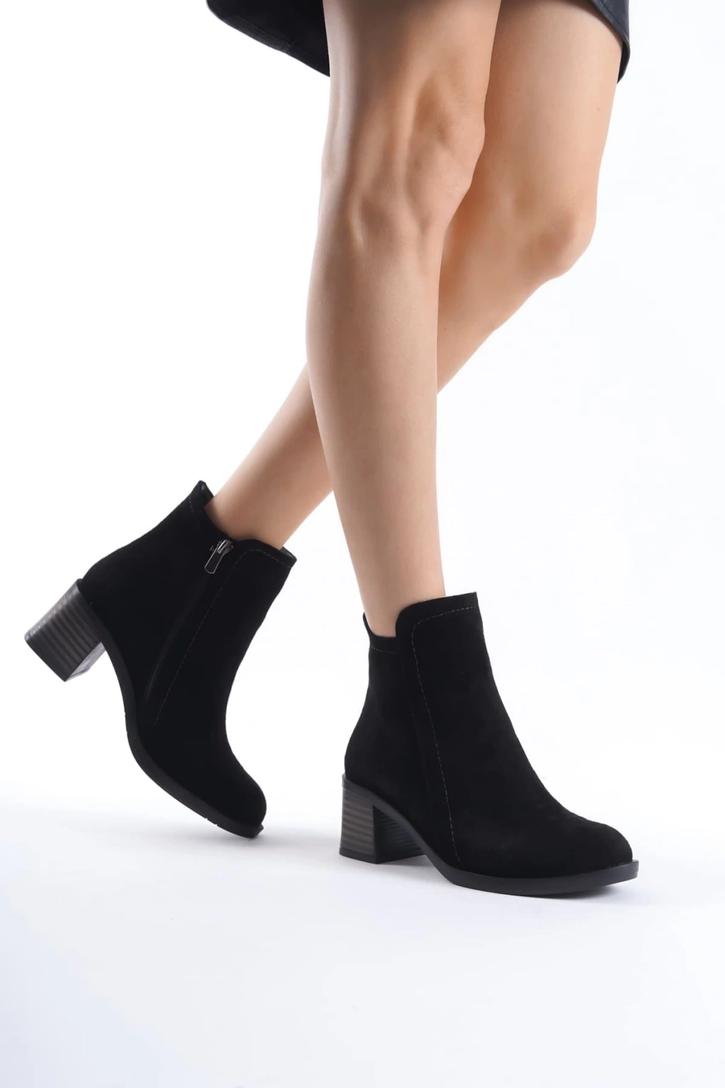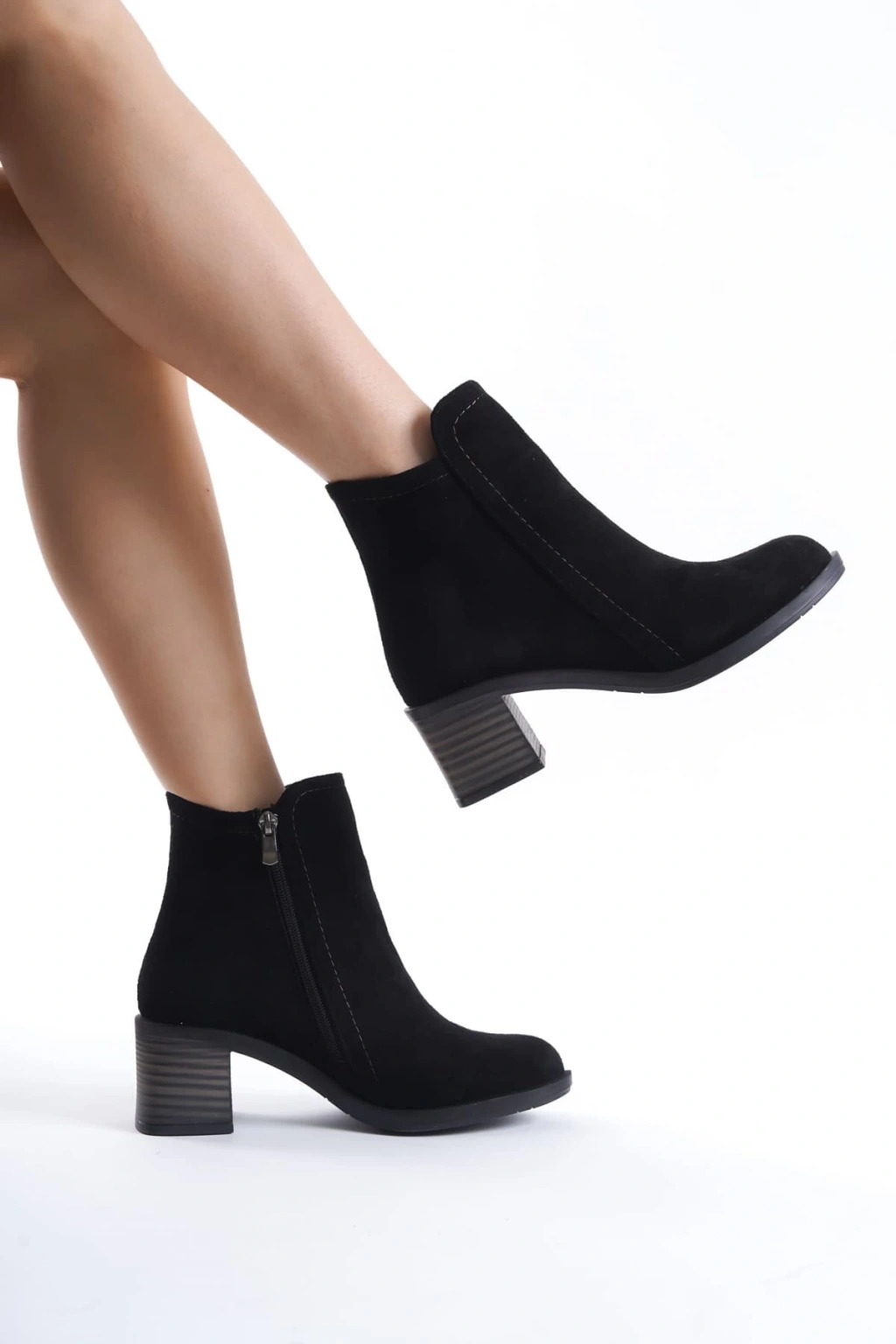 LARISSA Fermuarlı Ortopedik Taban Topuklu Süet Kadın Bot SST - Siyah