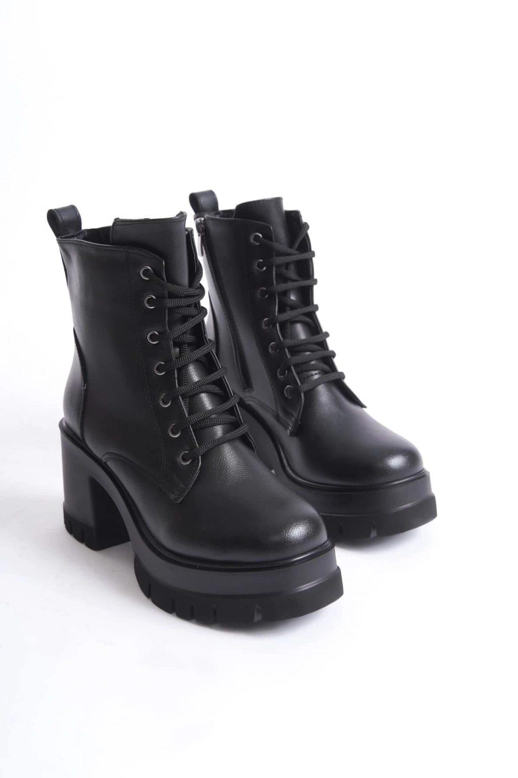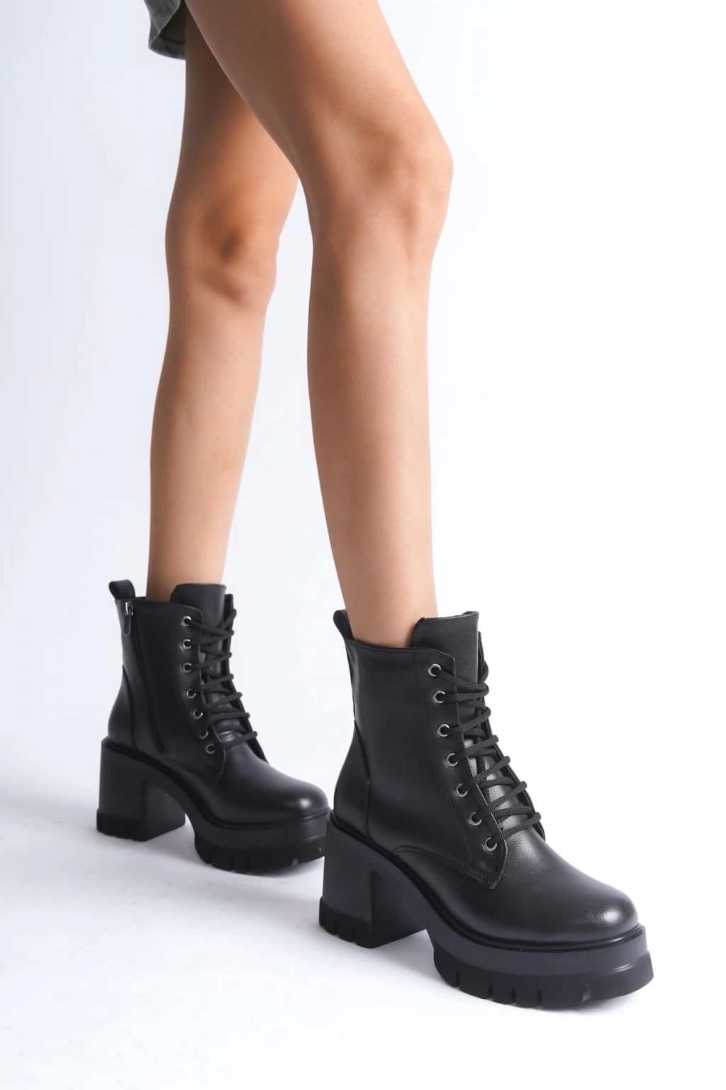 LAUREN Bağcıklı Fermuarlı Ortopedik Taban Topuklu Kadın Bot CST - Siyah