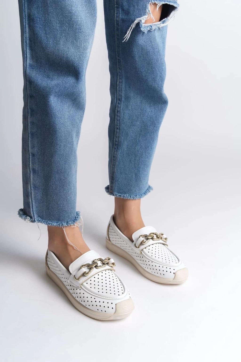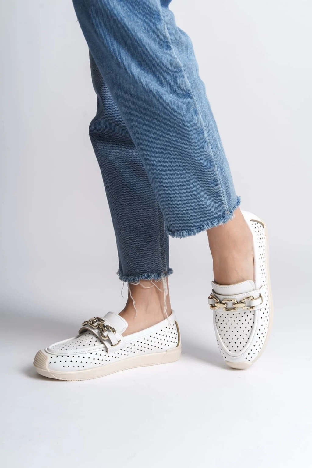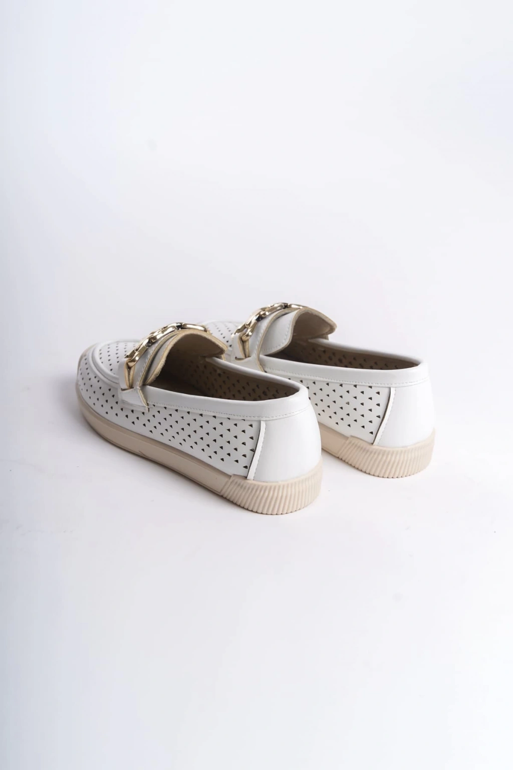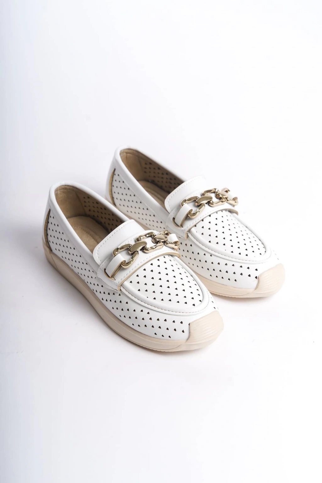 LAYLA Bağcıksız Ortopedik Rahat Taban Kalp Desenli Kadın Babet Ayakkabı CKT - Beyaz