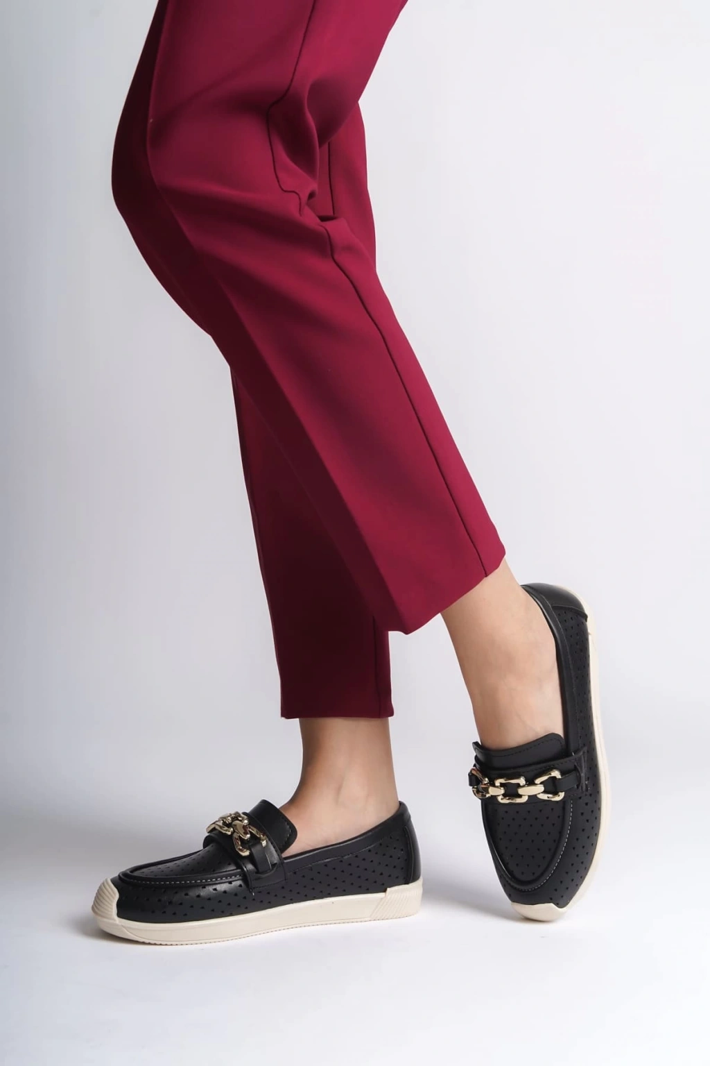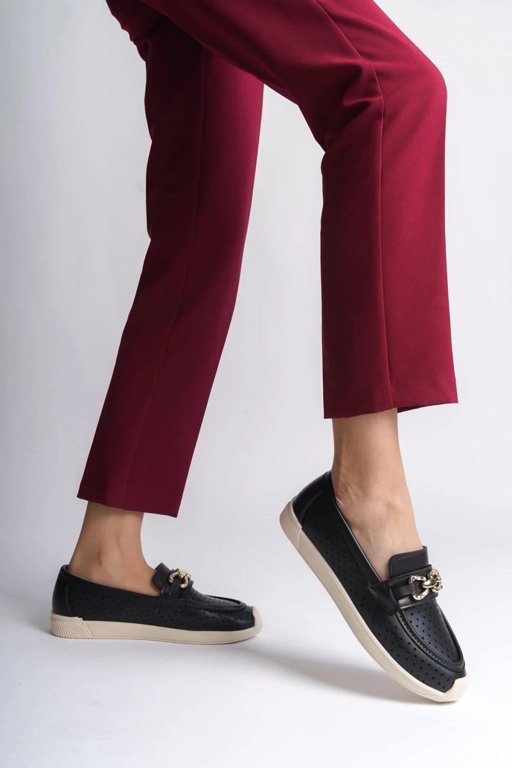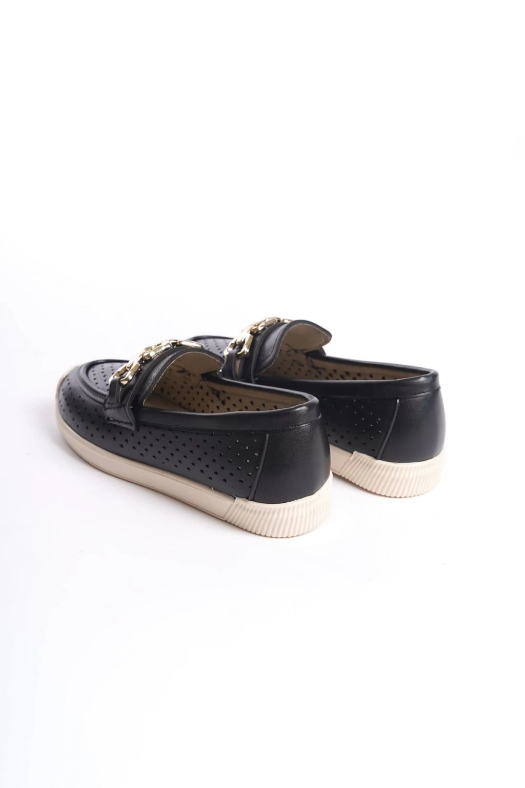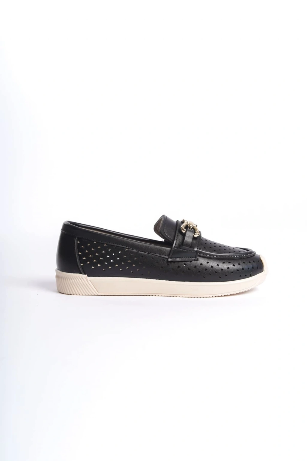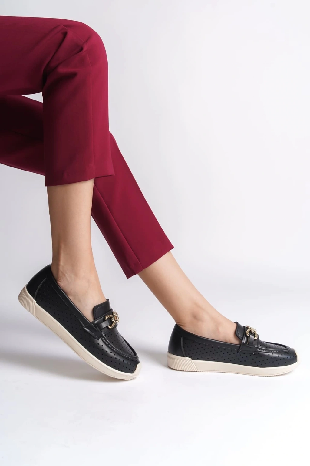 LAYLA Bağcıksız Ortopedik Rahat Taban Kalp Desenli Kadın Babet Ayakkabı CKT - Siyah