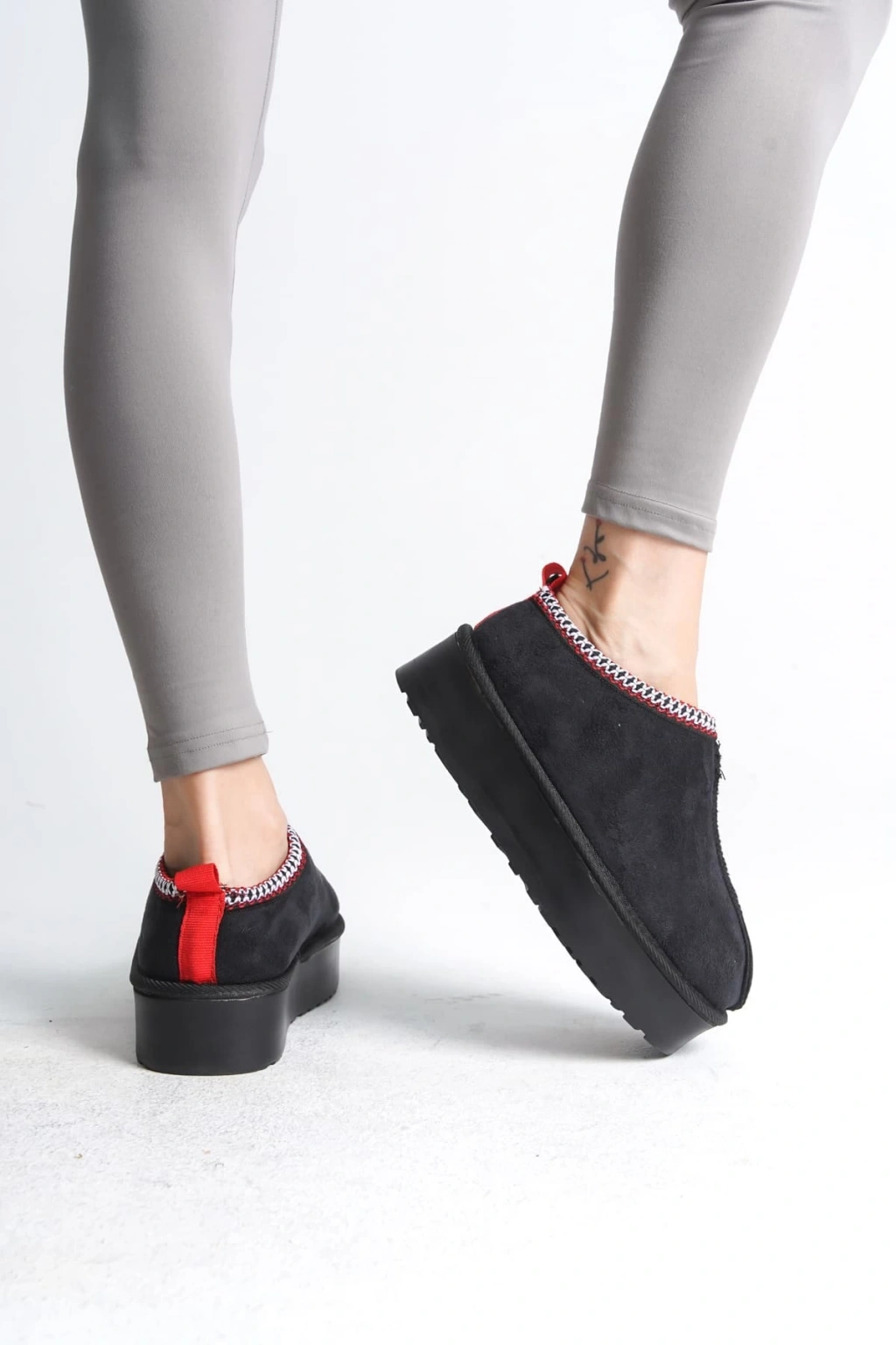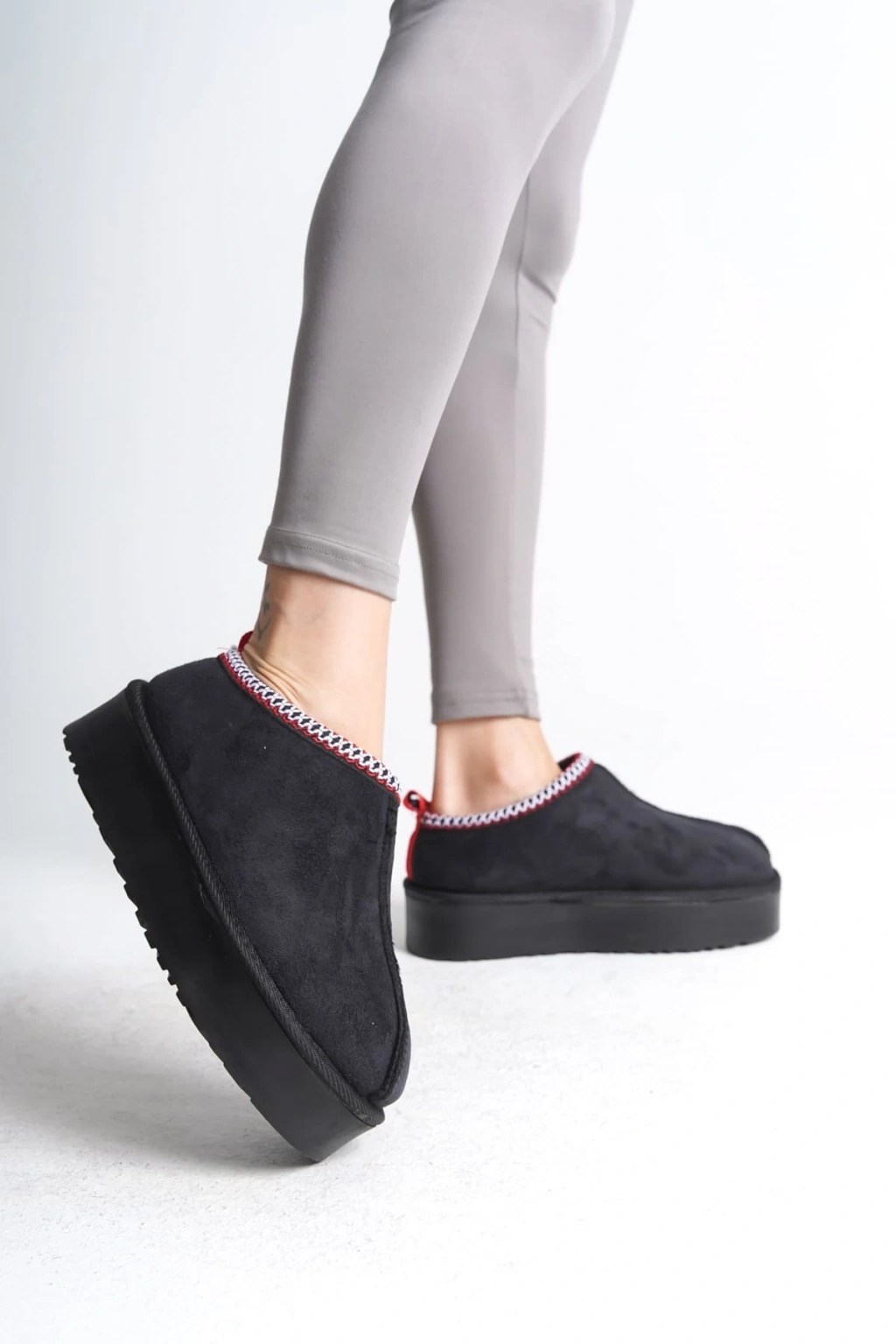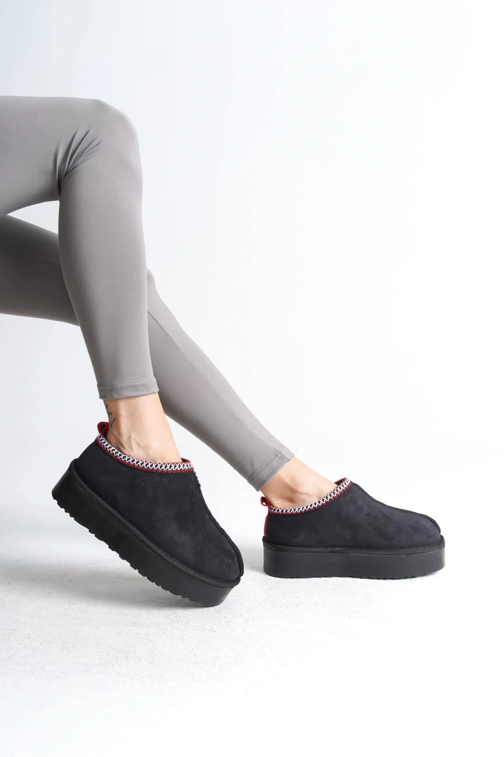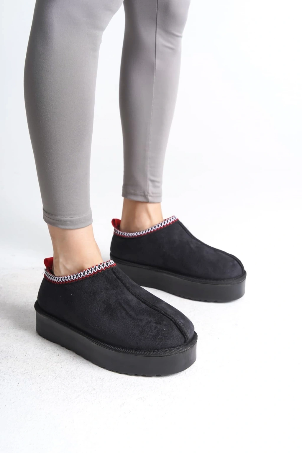 LEILA Bağcıksız Düz ve Kalın Taban İçi Kürklü Kısa Süet Kadın Bot SST - Siyah