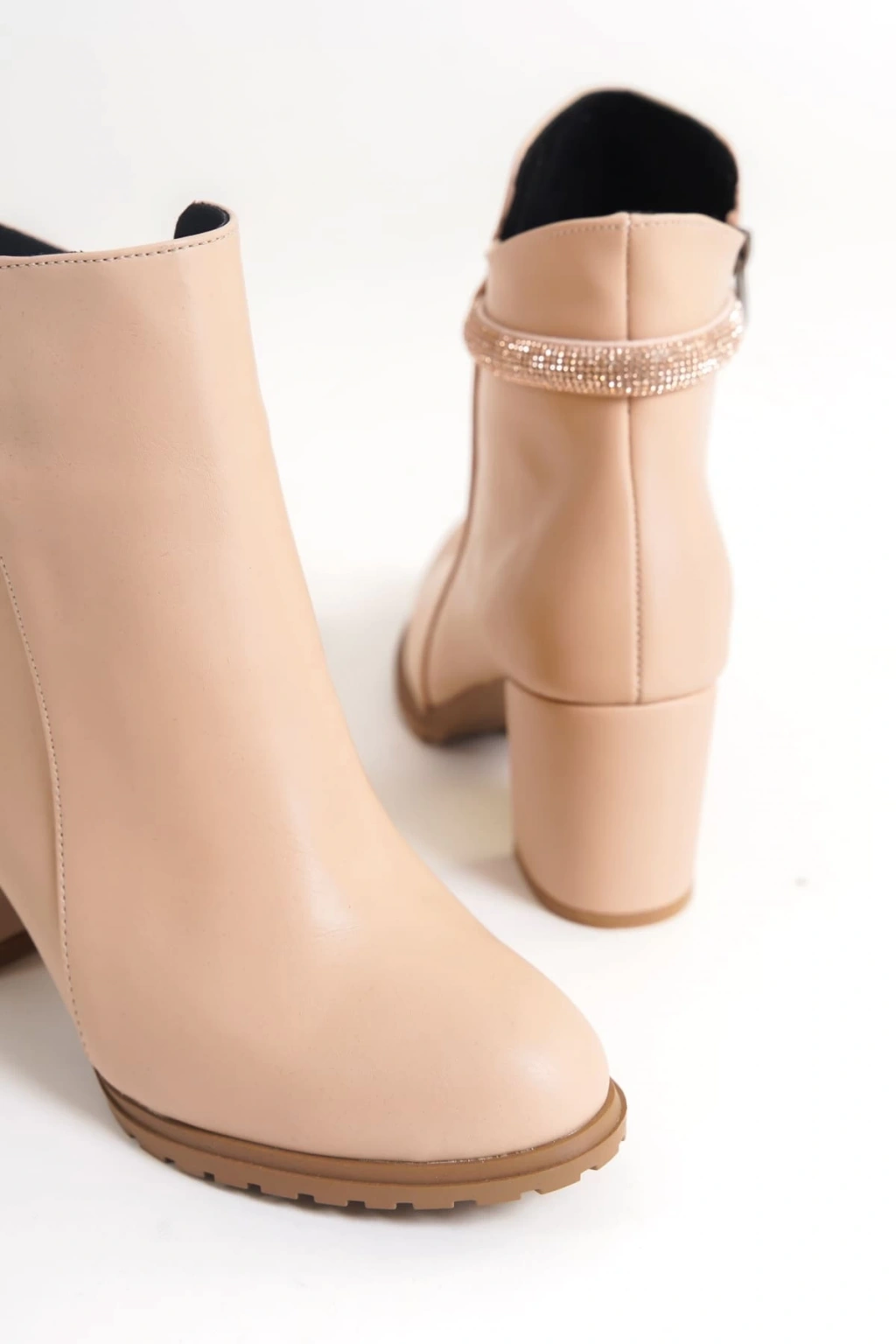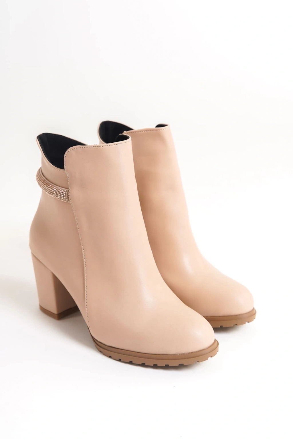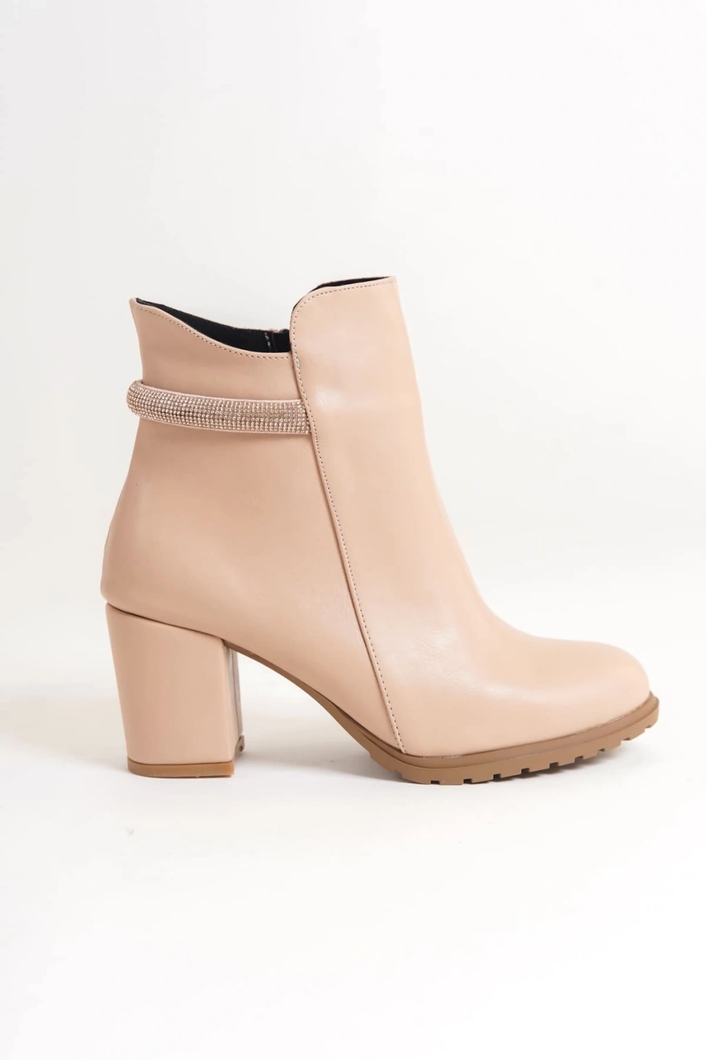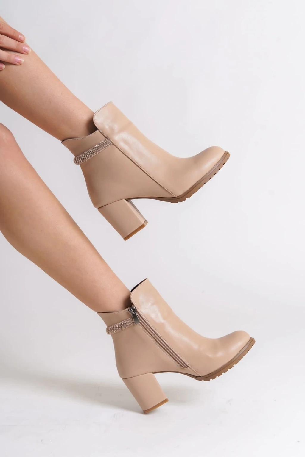 LIA Fermuarlı Ortopedik Taban Taşlı Topuklu Kadın Bot CTT - Ten