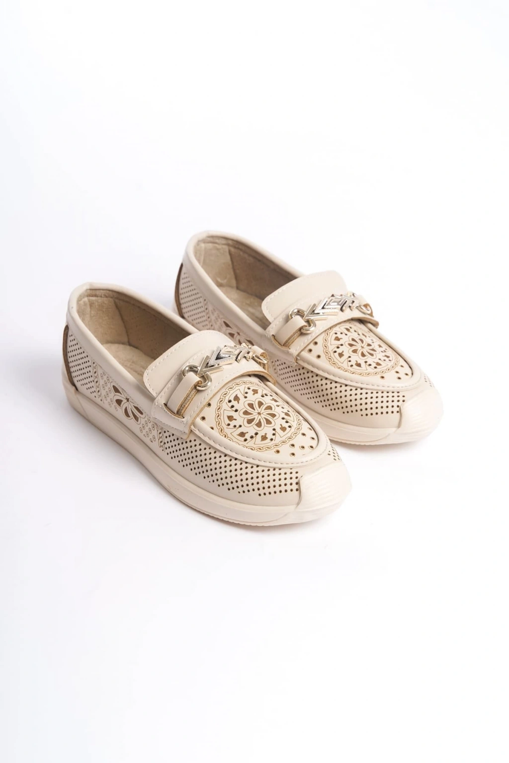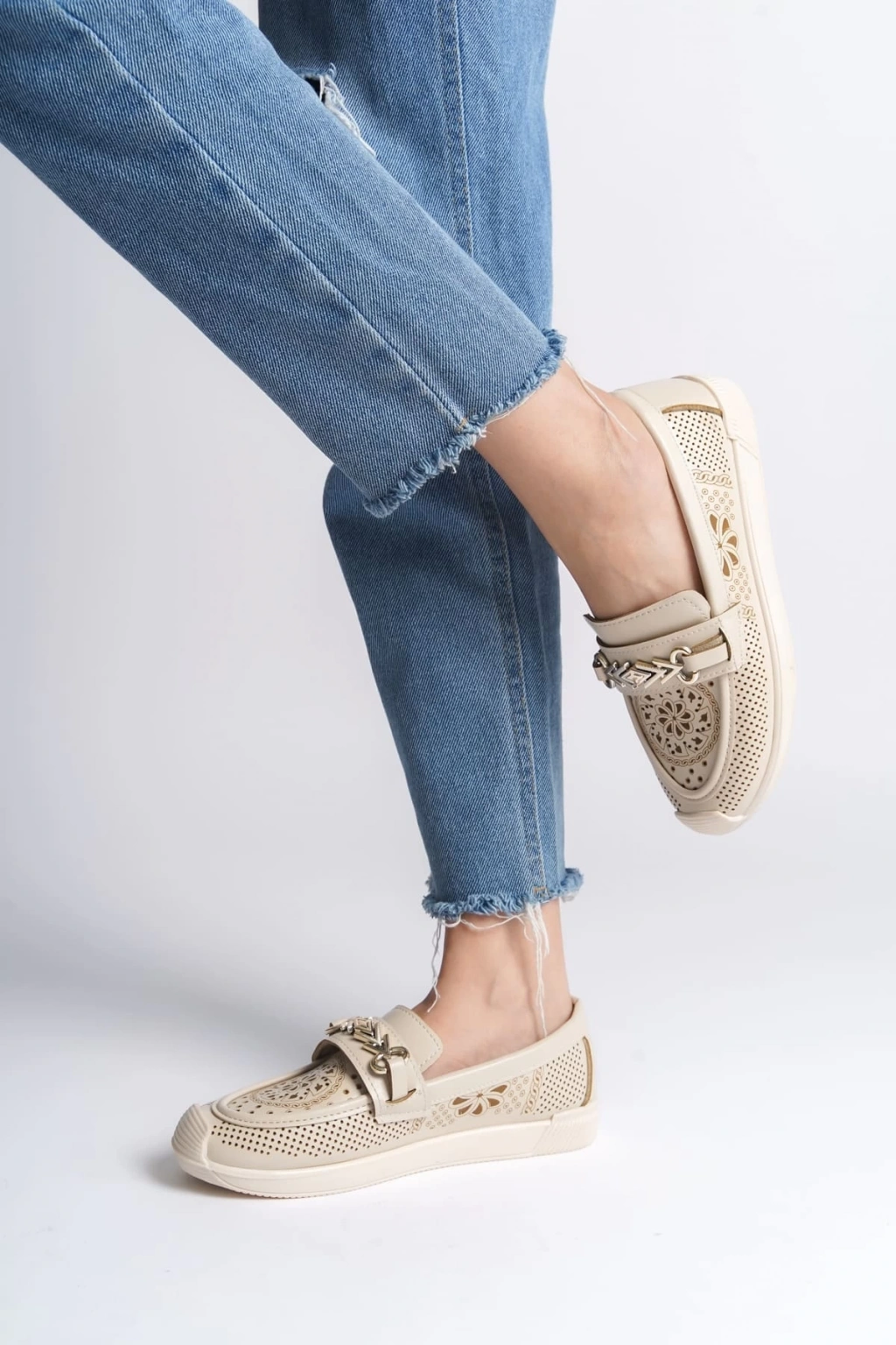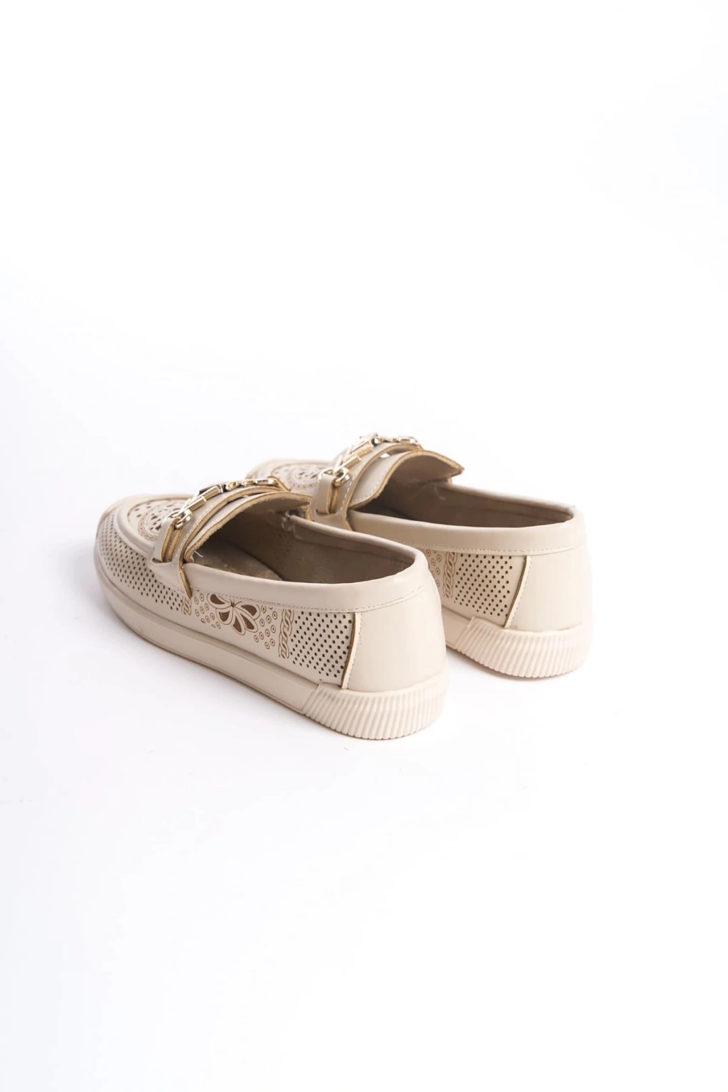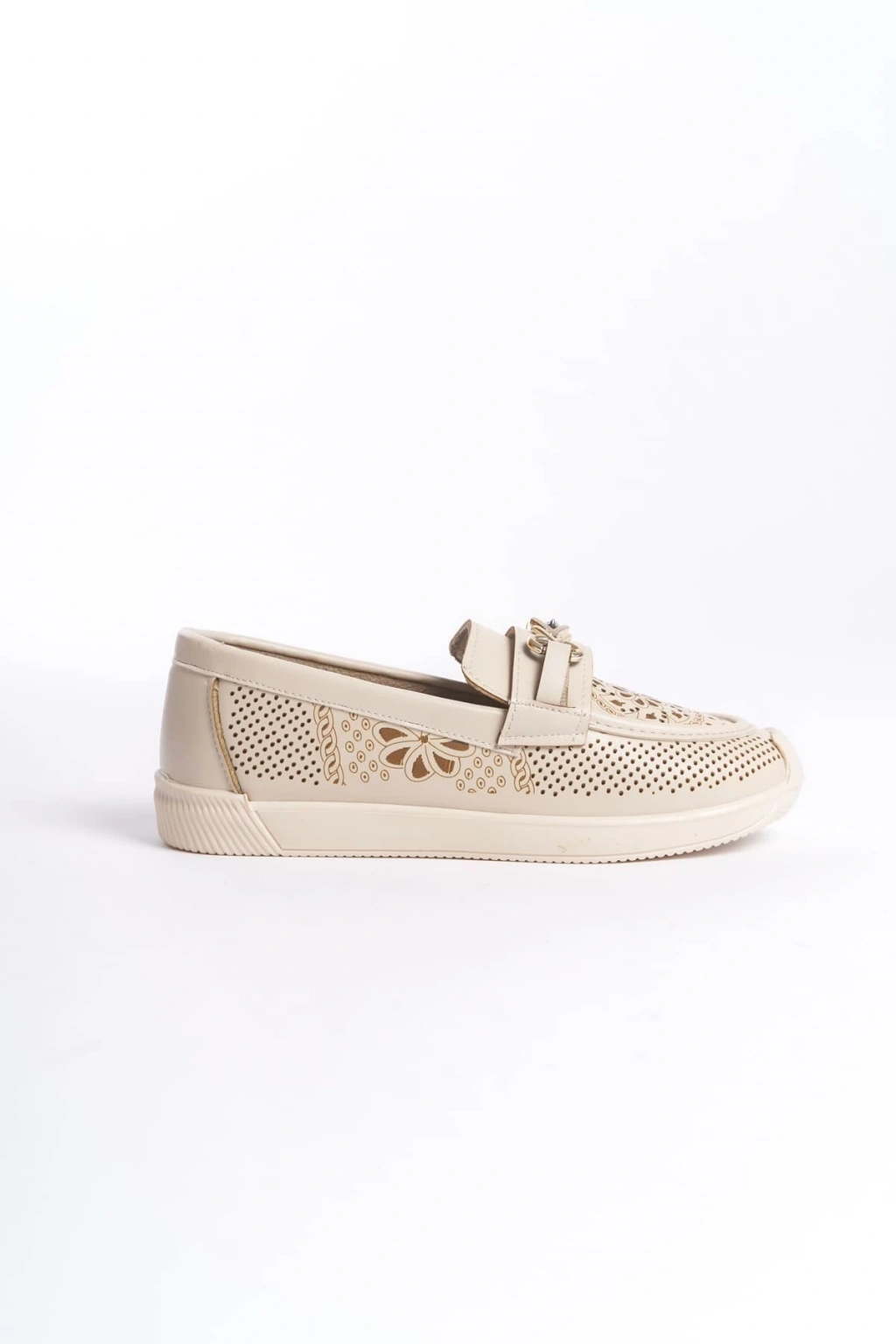 LILY Bağcıksız Ortopedik Rahat Taban Çiçek Desenli Kadın Babet Ayakkabı CKT - Krem