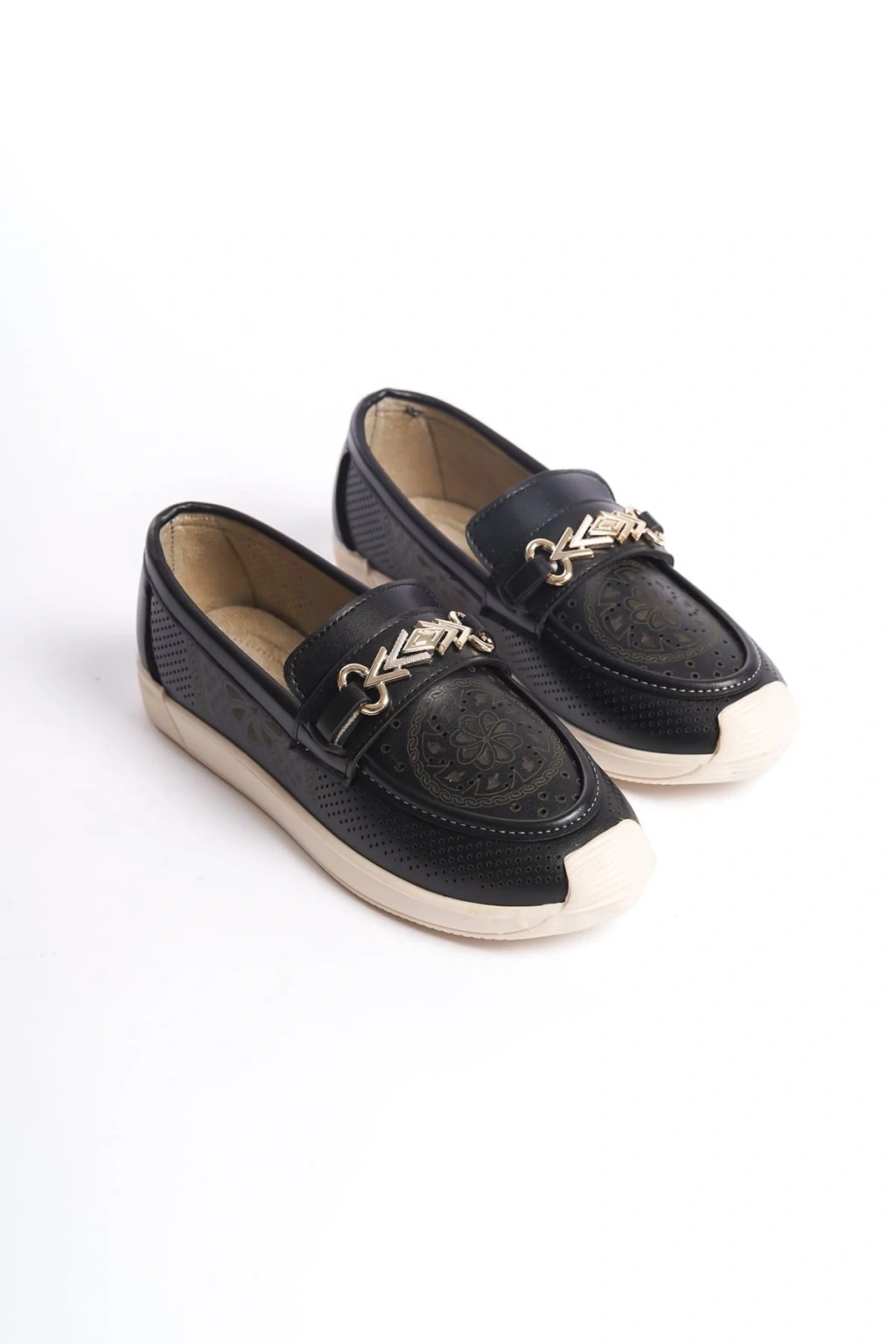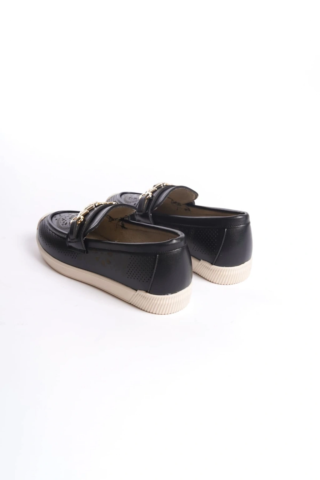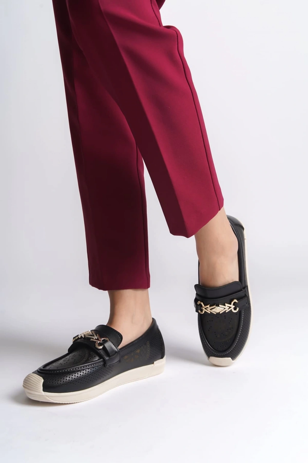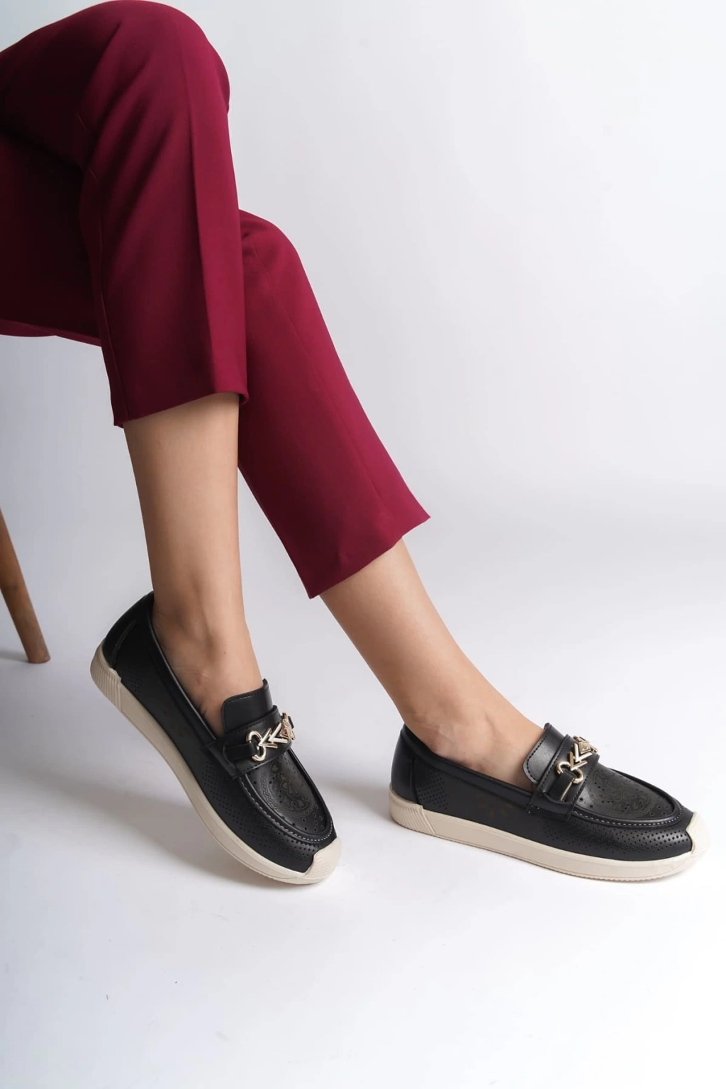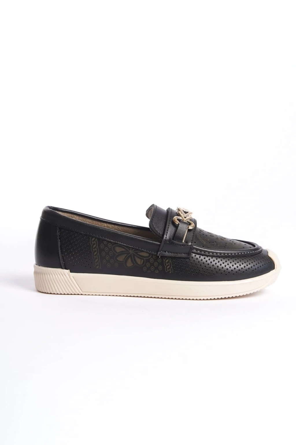 LILY Bağcıksız Ortopedik Rahat Taban Çiçek Desenli Kadın Babet Ayakkabı CKT - Siyah