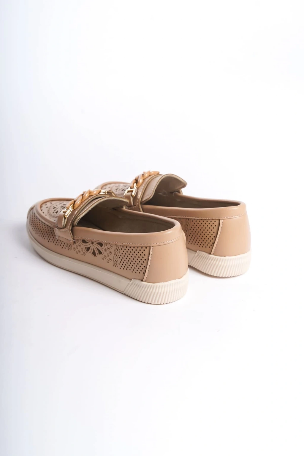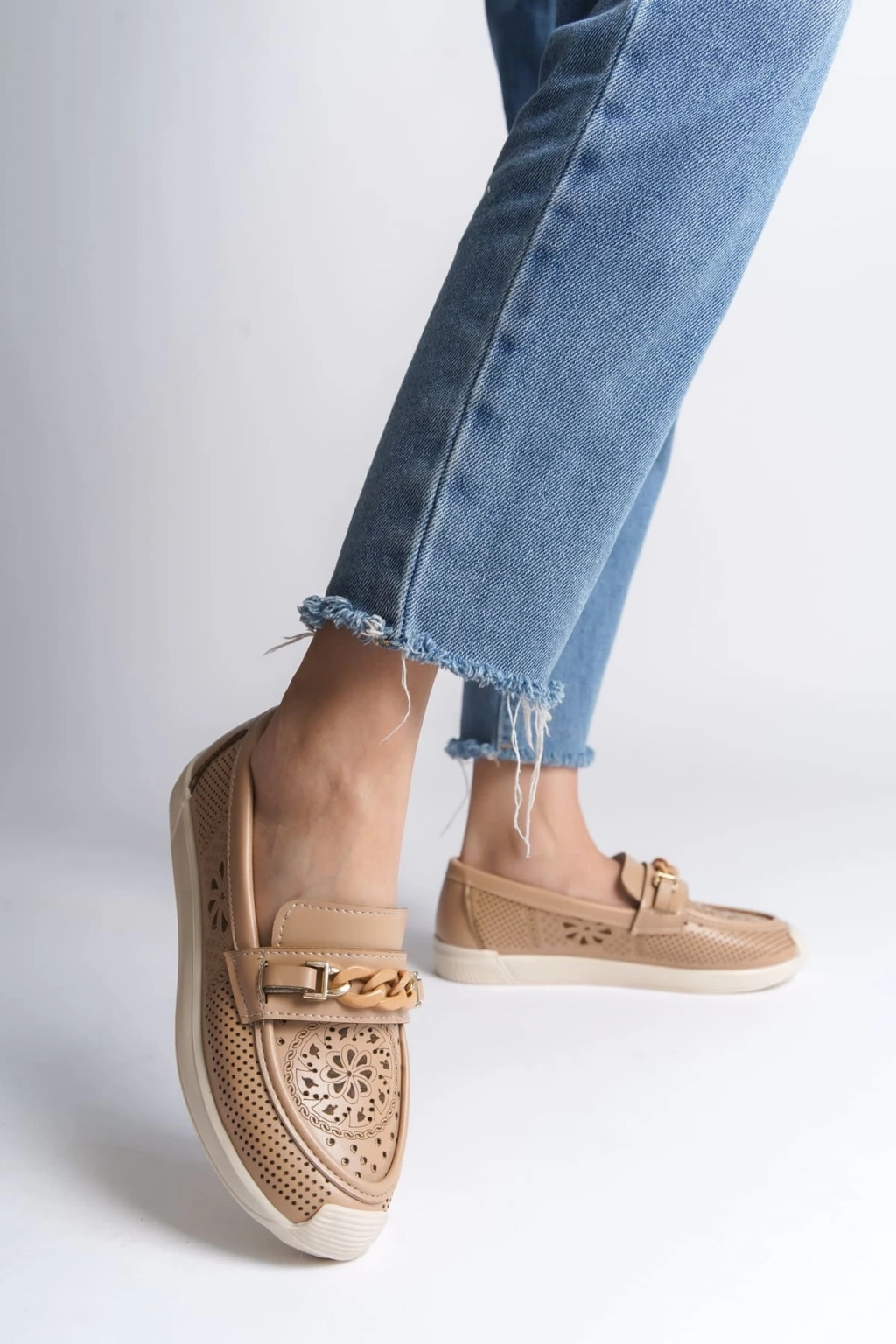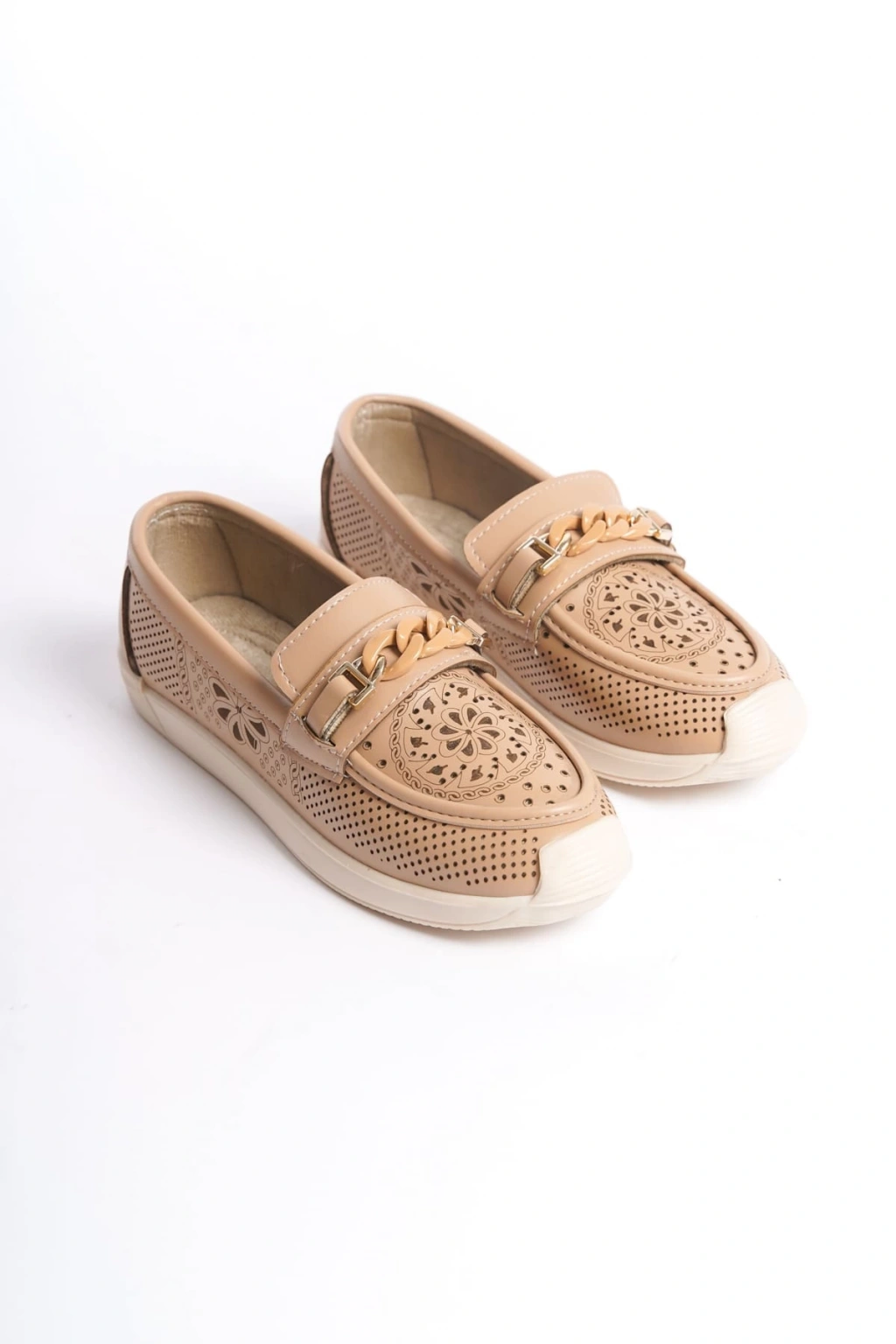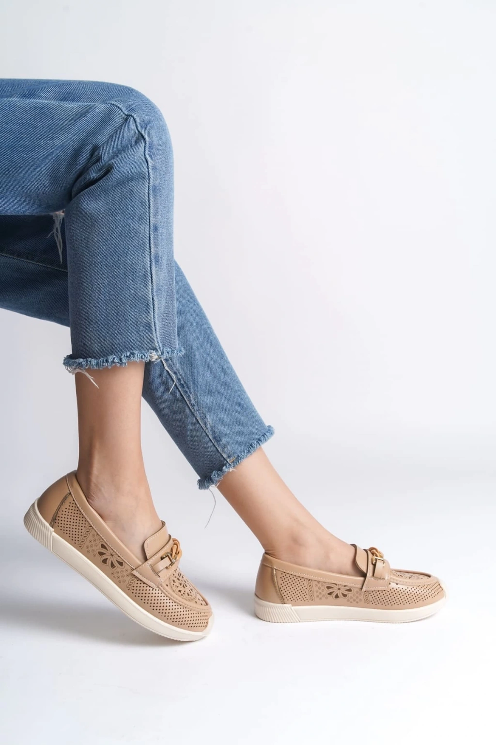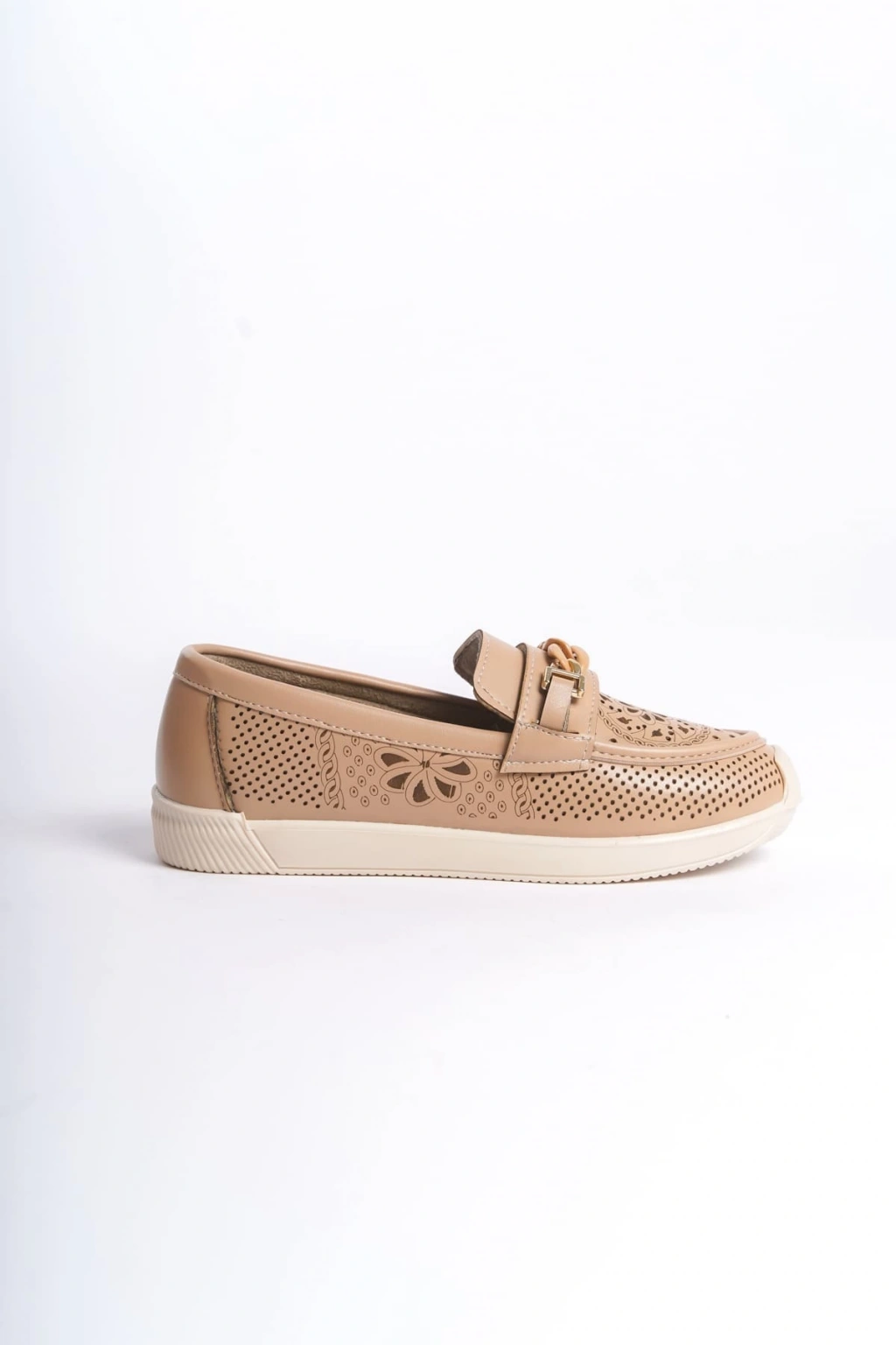 LIZY Bağcıksız Ortopedik Rahat Taban Çiçek Desenli Kadın Babet Ayakkabı CKT - Ten