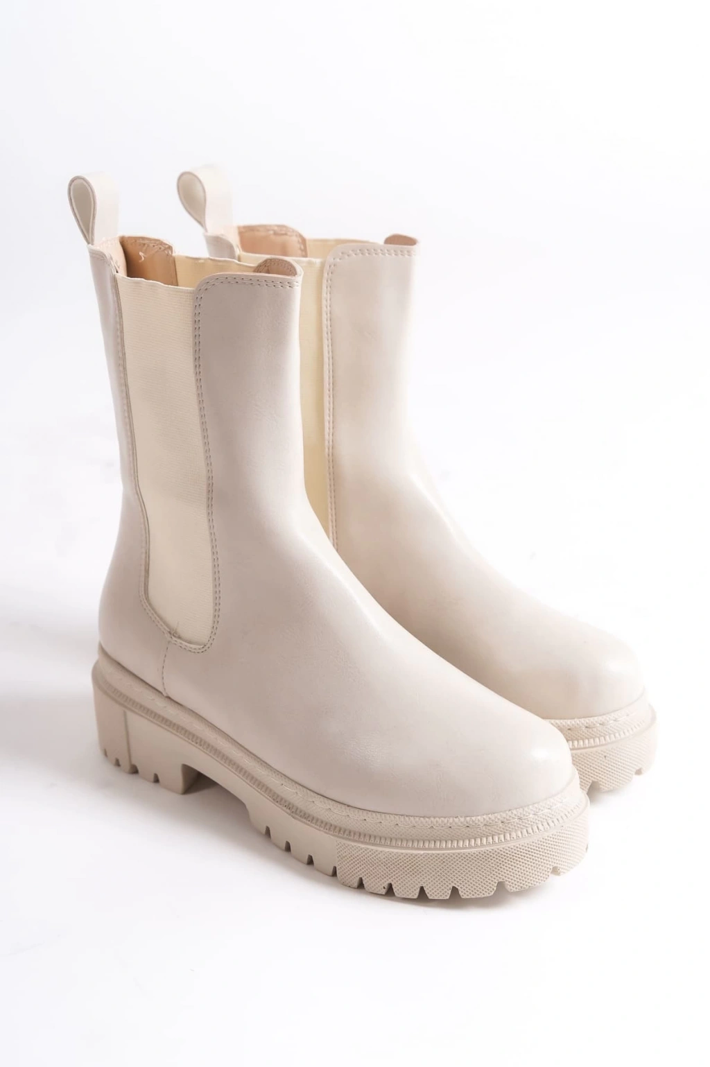 LORA Bağcıksız Lastikli Ortopedik Taban Kadın Bot CKT - Krem