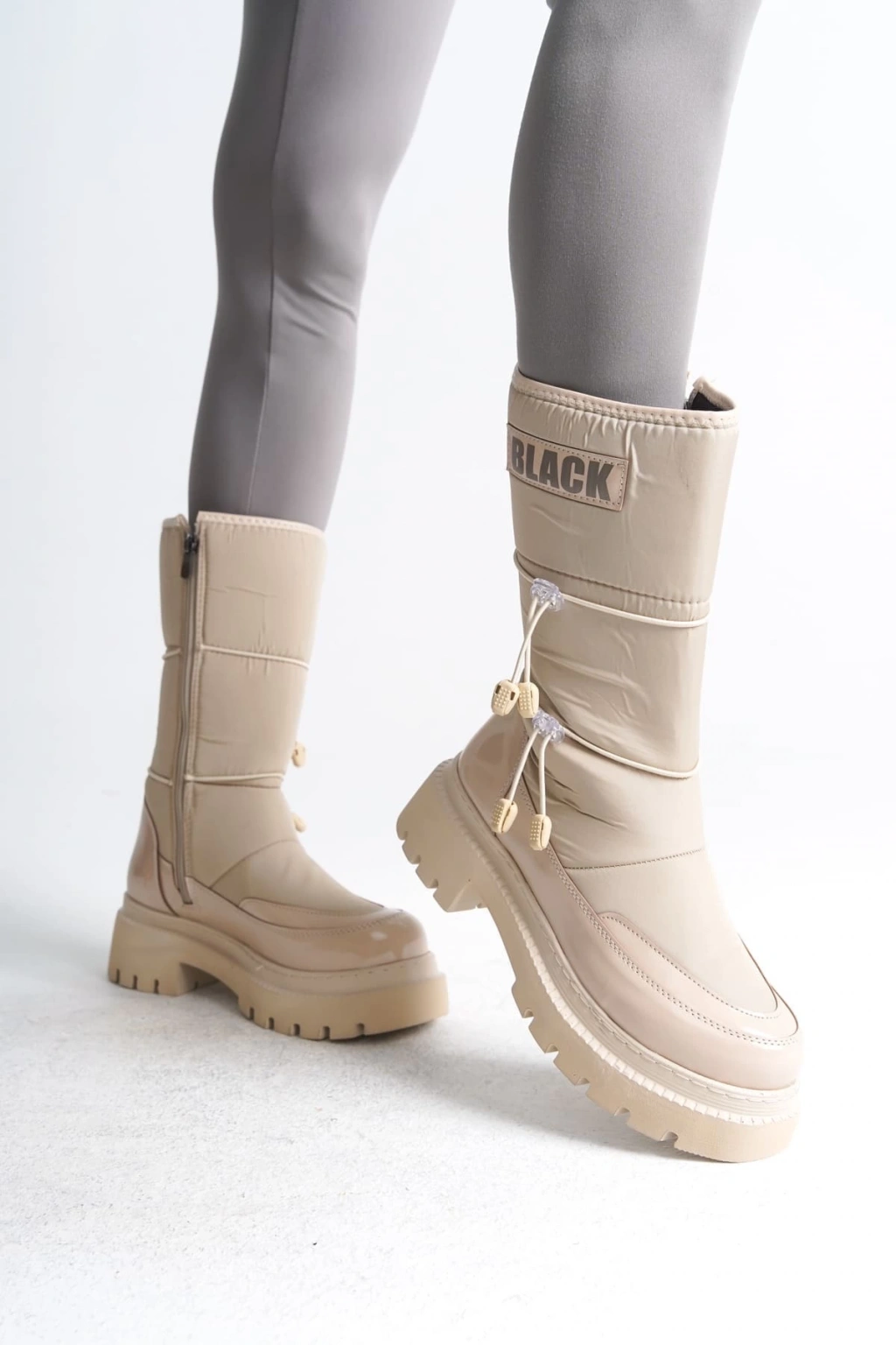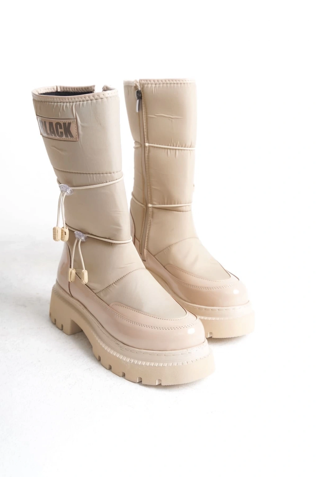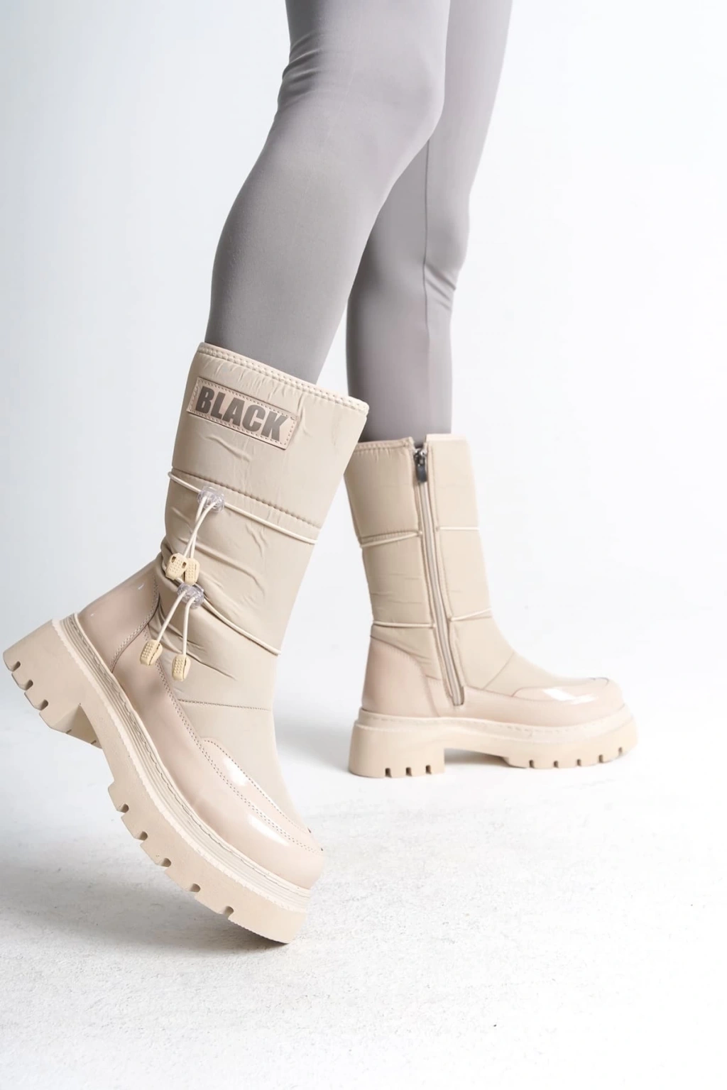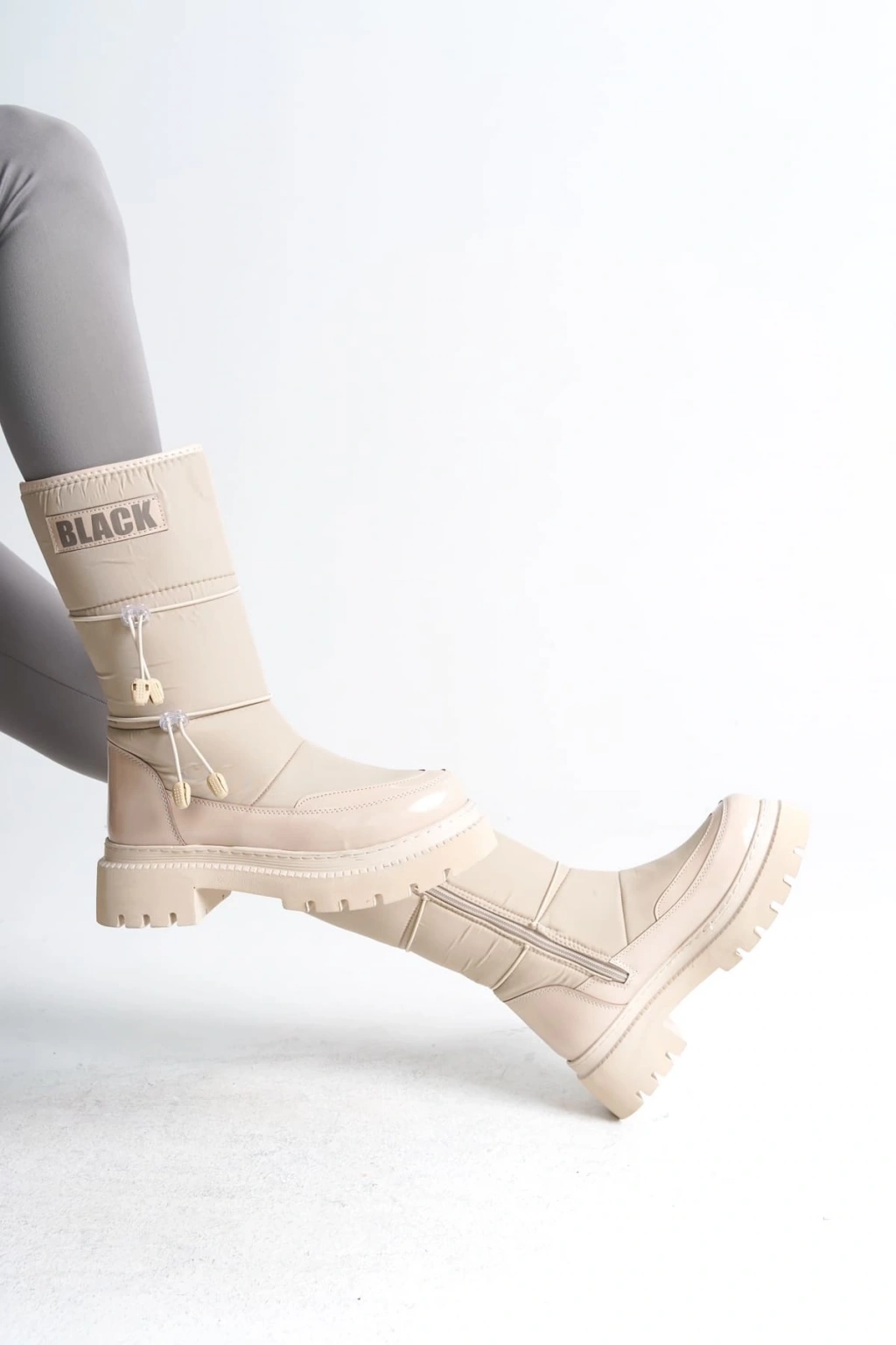 LUCY Lastikli Fermuarlı Paraşüt Kumaş Rugan Kadın Bot CKT - Krem