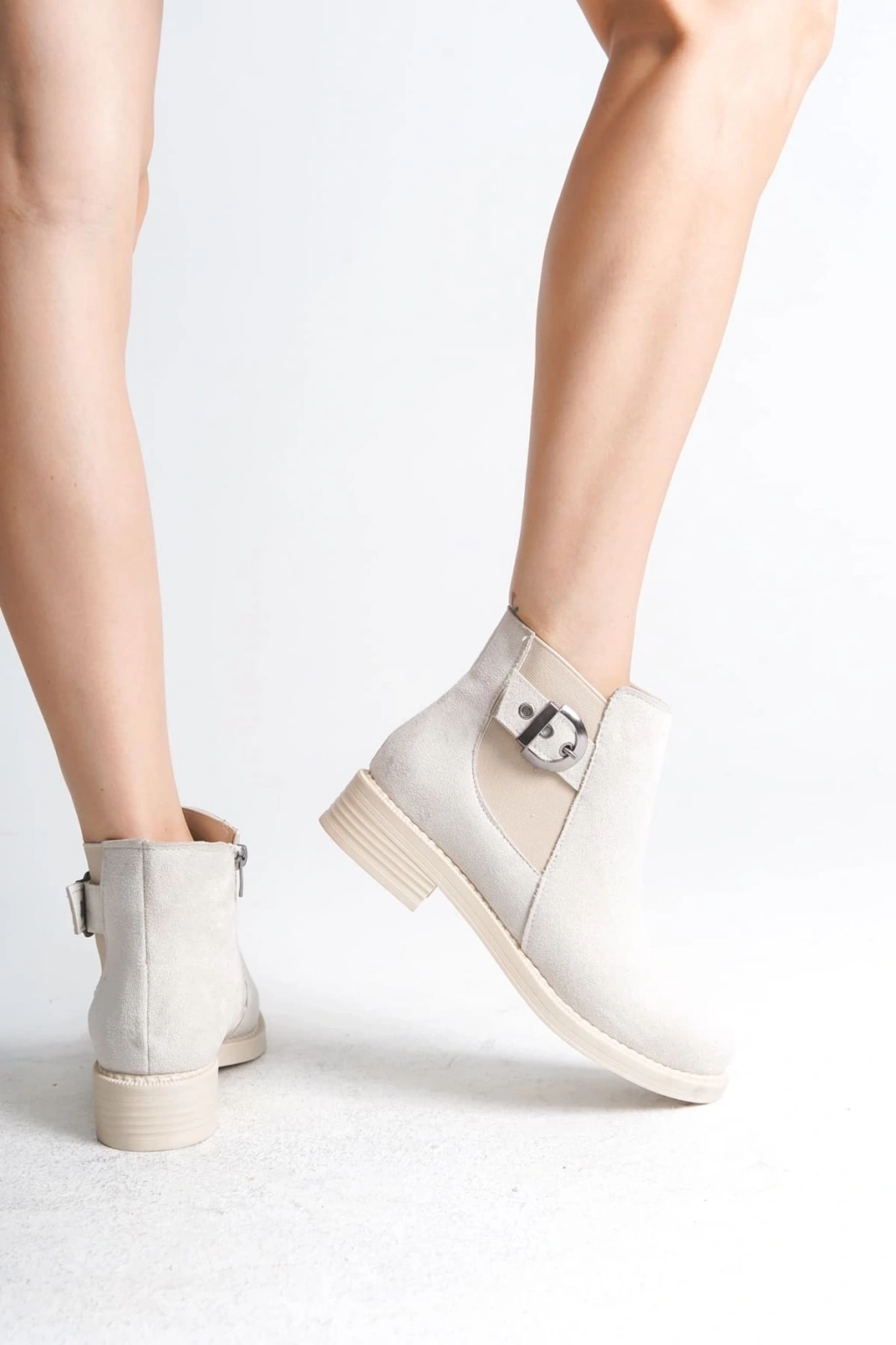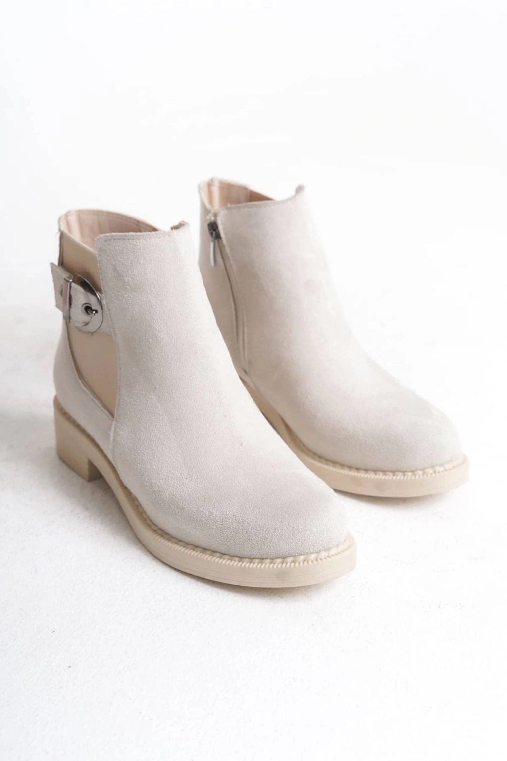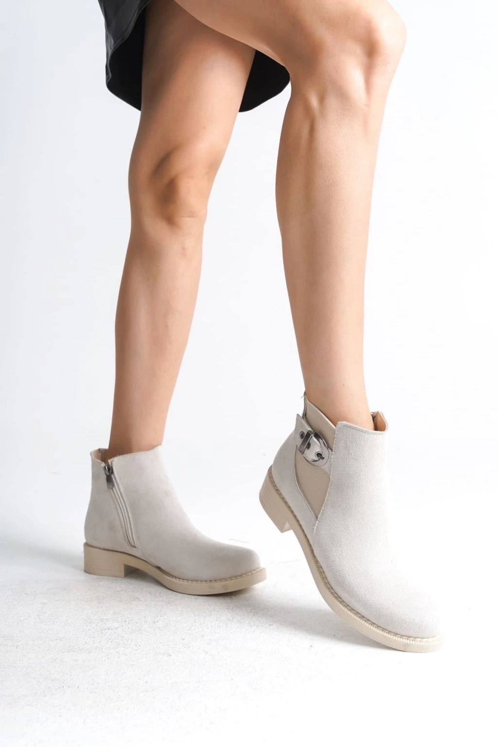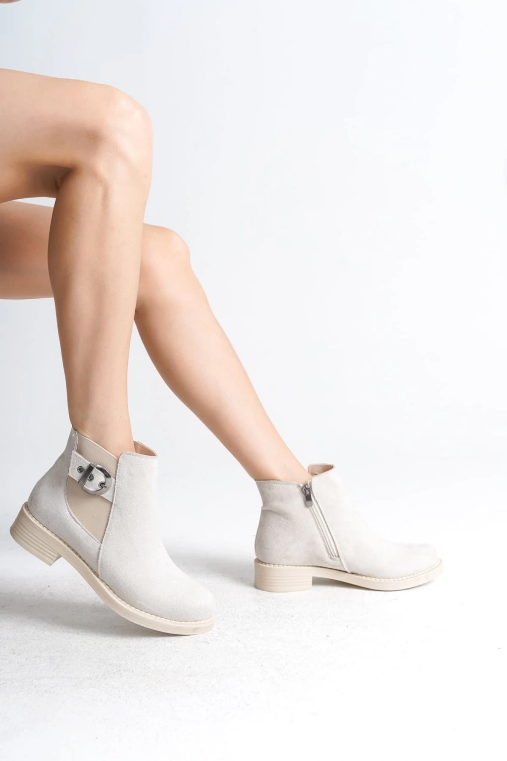 LUNA Fermuarlı Lastikli Ortopedik Taban Topuklu Süet Kadın Bot SKT - Krem