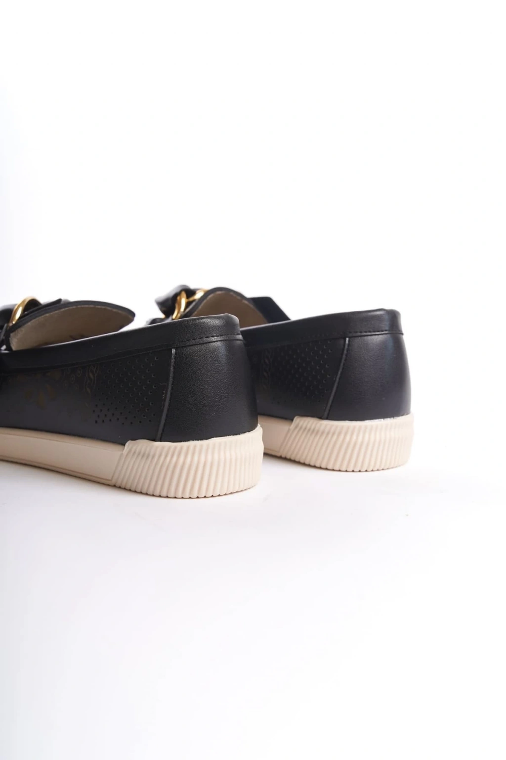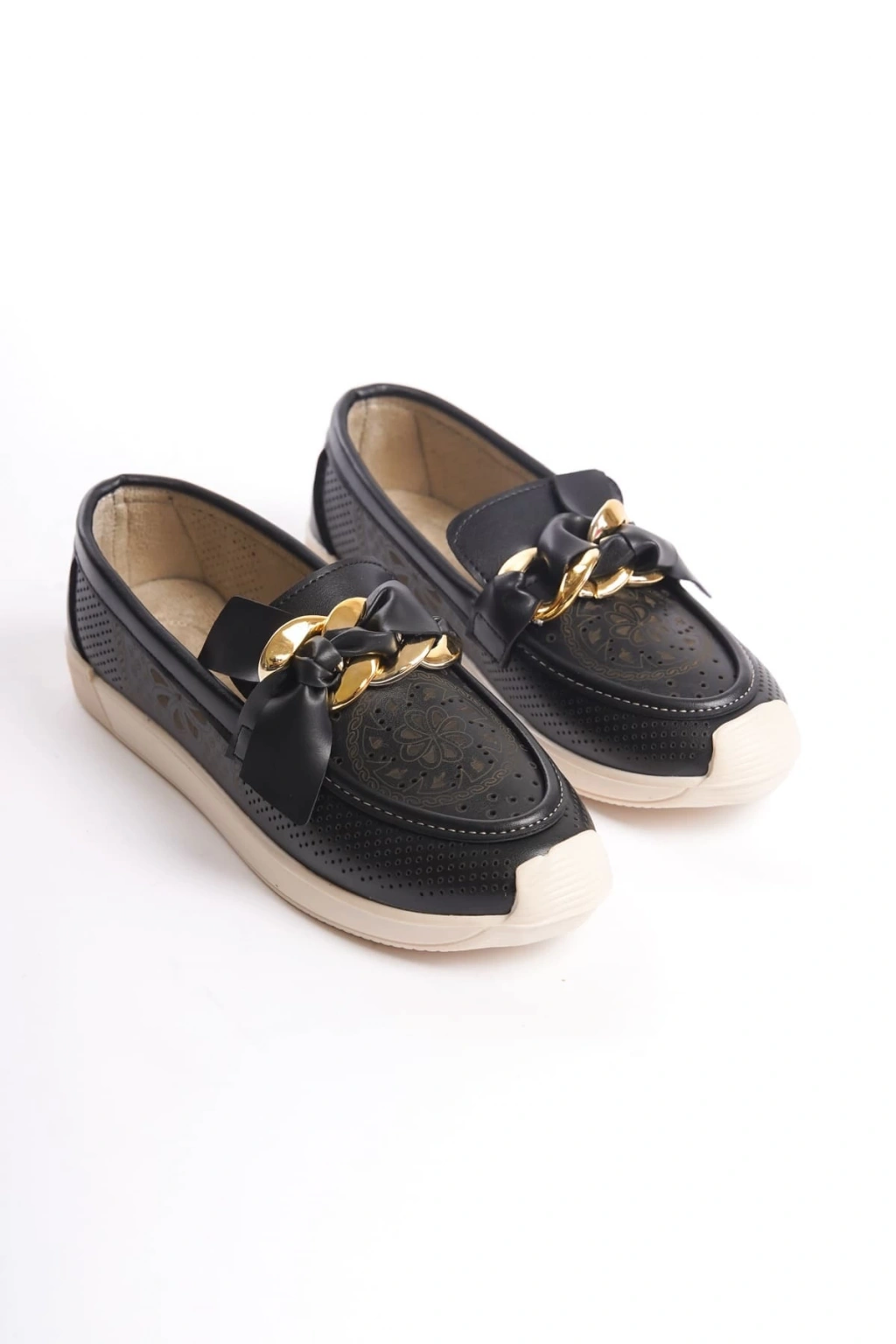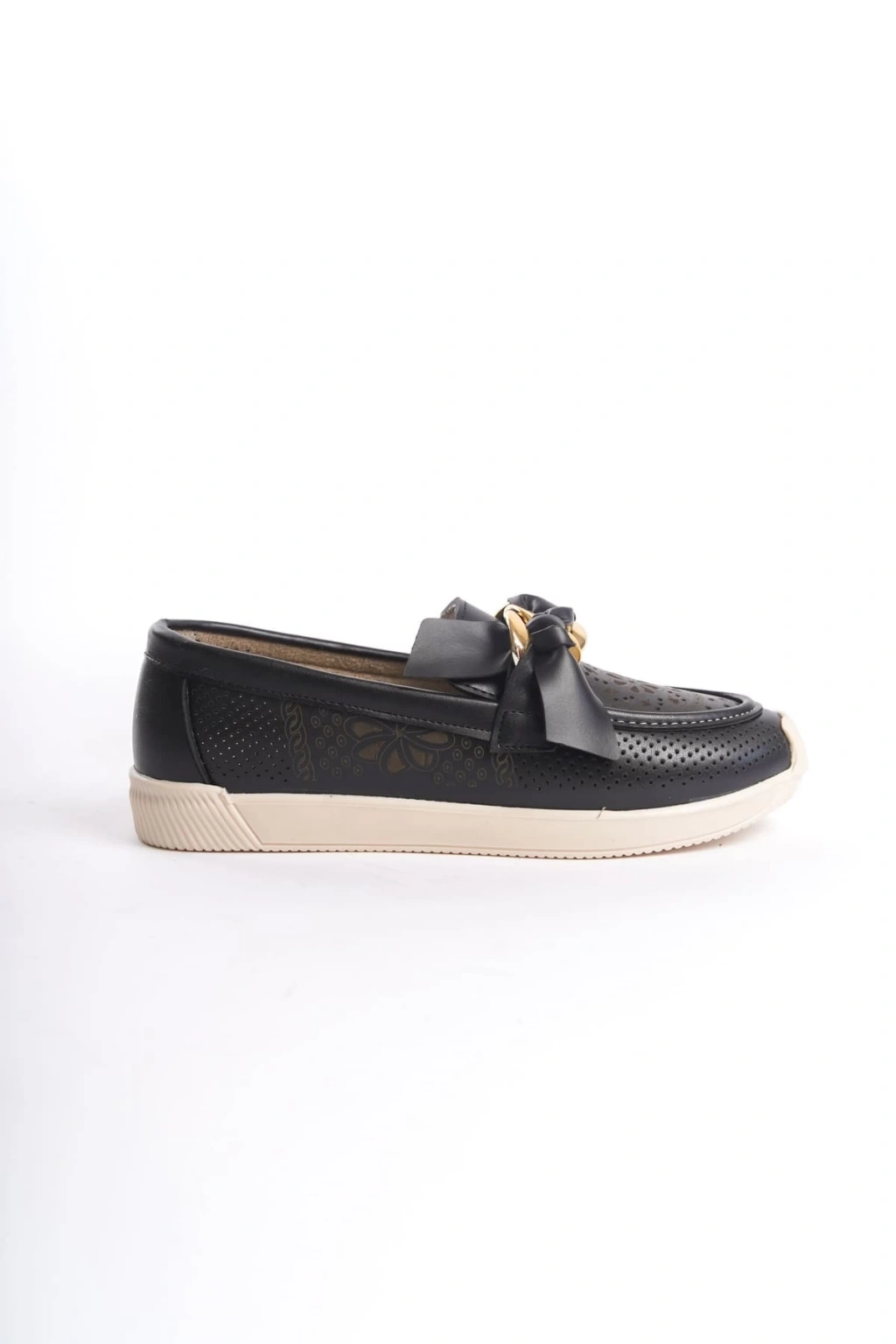 LYDIA Bağcıksız Ortopedik Rahat Taban Çiçek Desenli Kadın Babet Ayakkabı CKT - Siyah